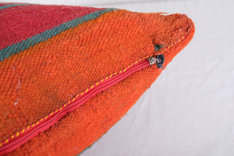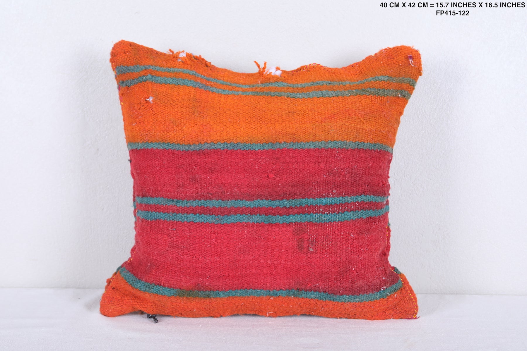 This vintage handmade moroccan kilim pillow is the perfect way to add a touch of flavor and style to your living space. Crafted with quality wool and vegetable dyes, the pillow measures 15.7 inches by 16.5 inches. Its bright colors and intricate designs will bring undeniable charm and character to your home.