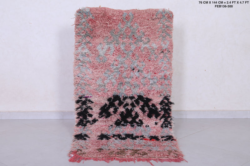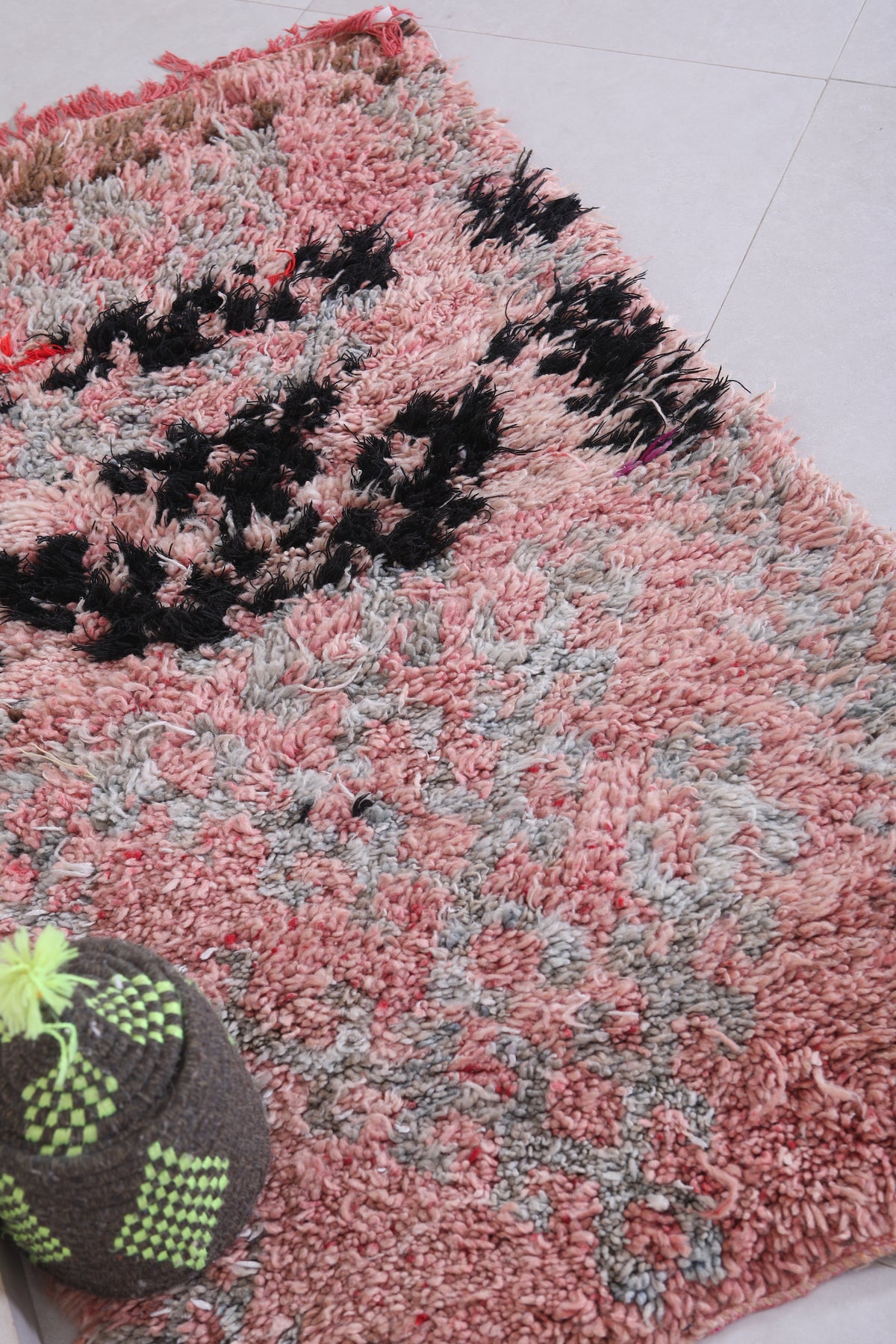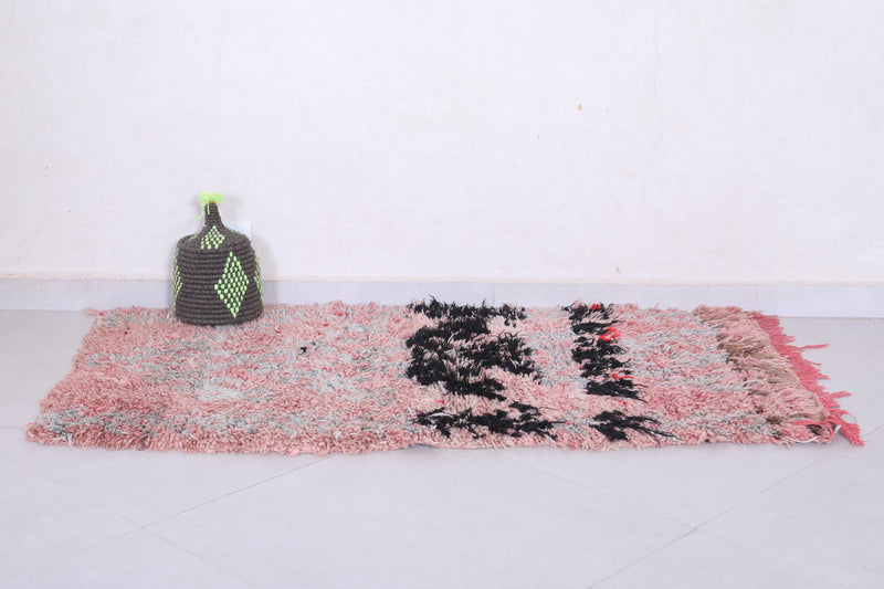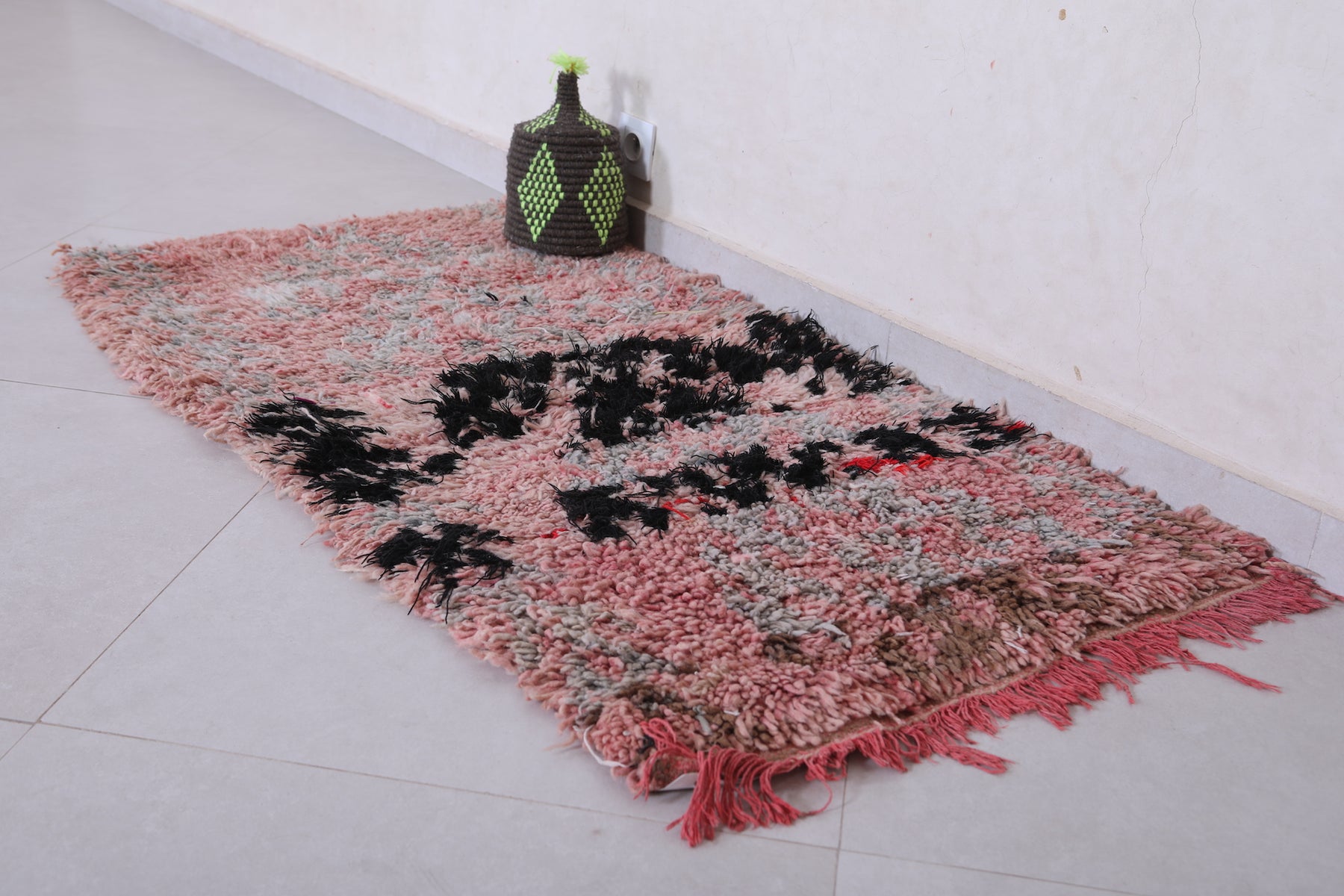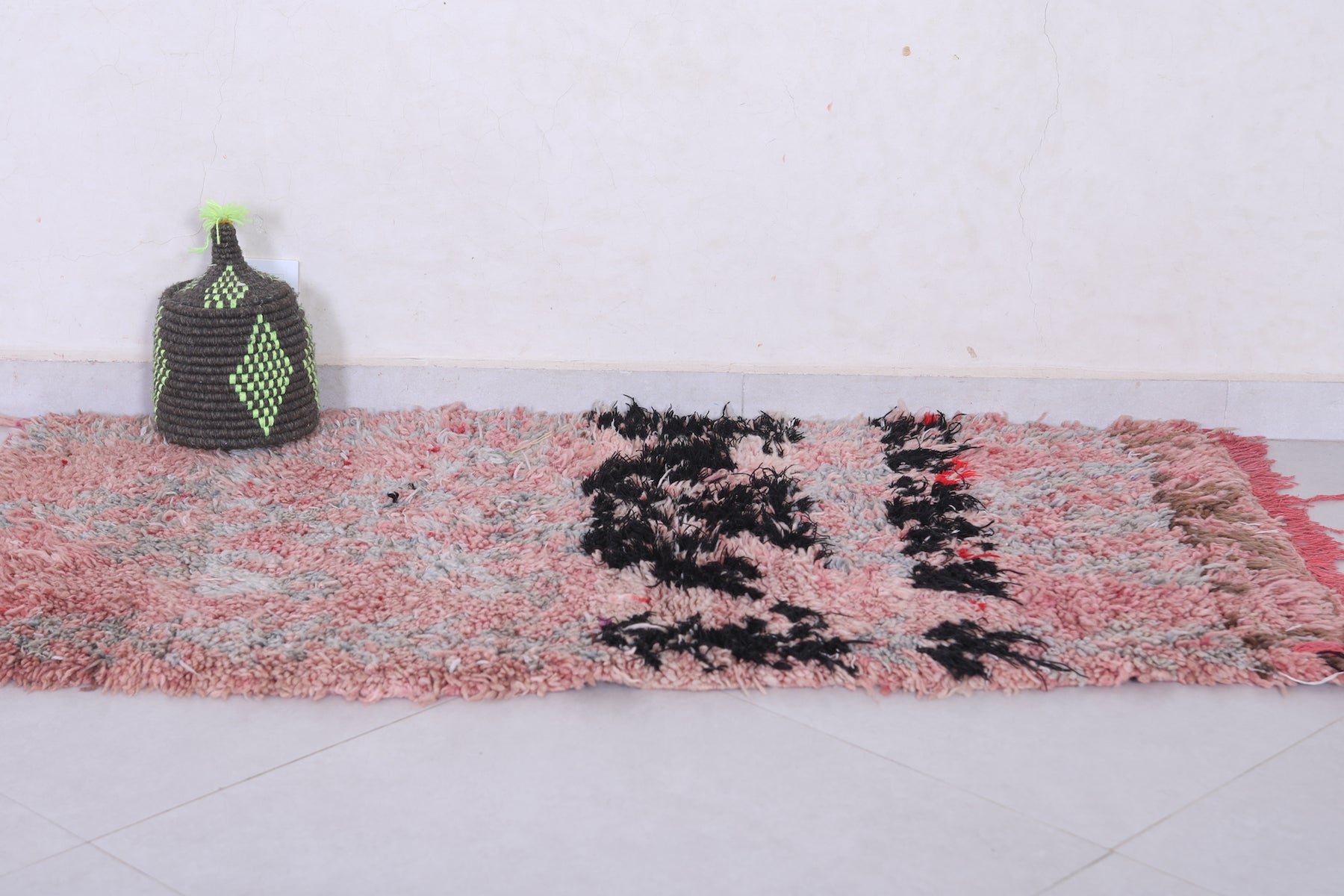 Moroccan Runner Rug – Pink & Black Abstract 2.4 x 4.7 FT