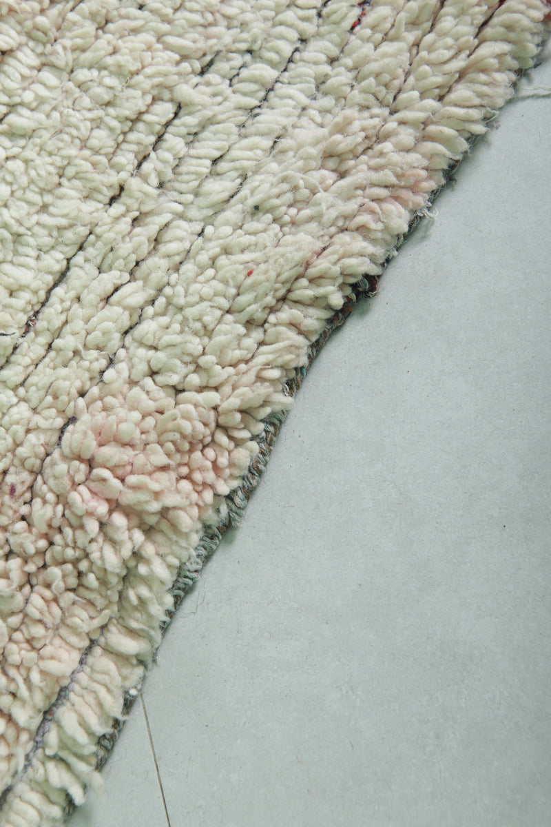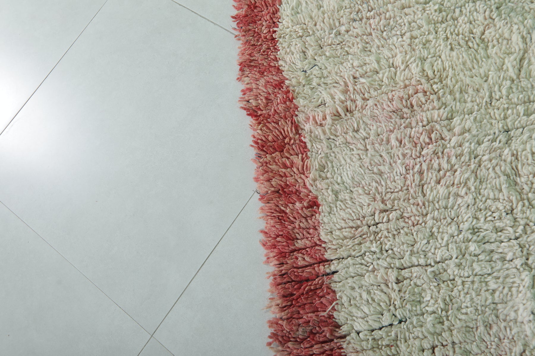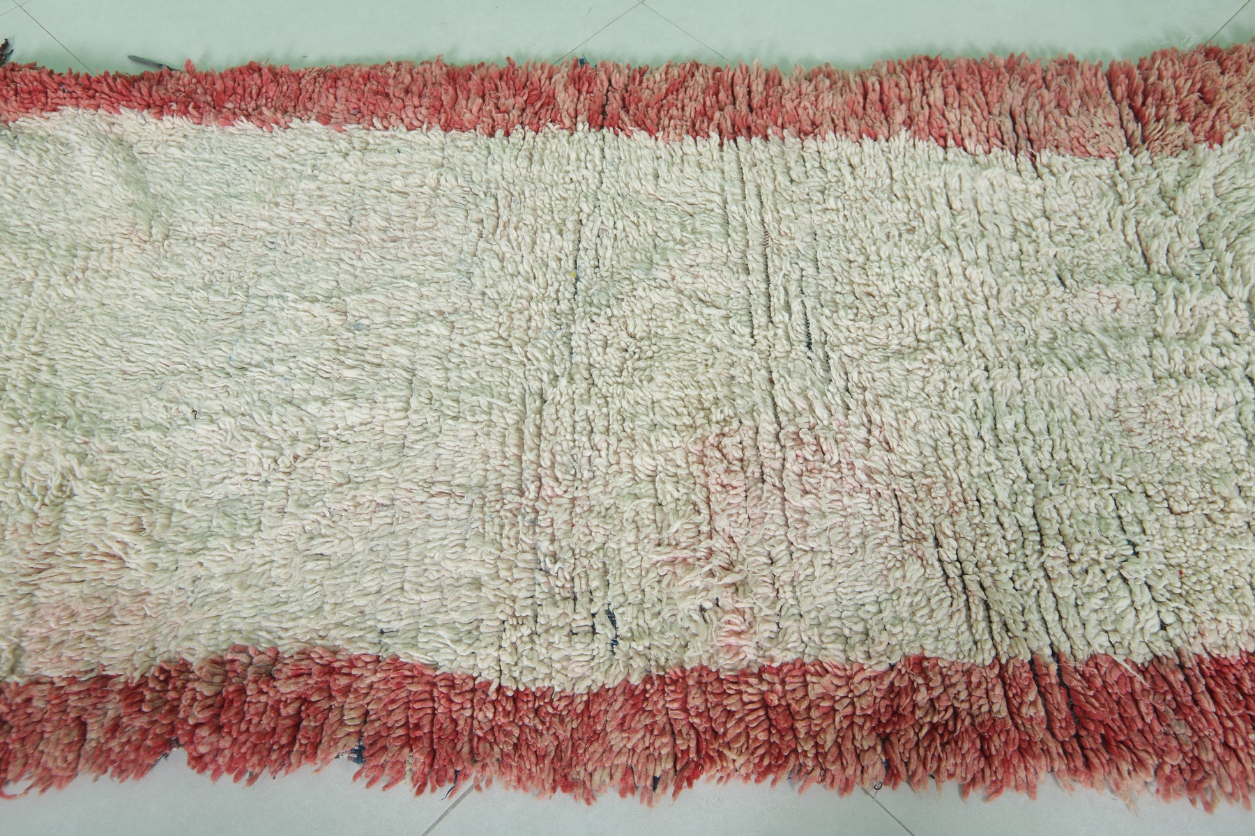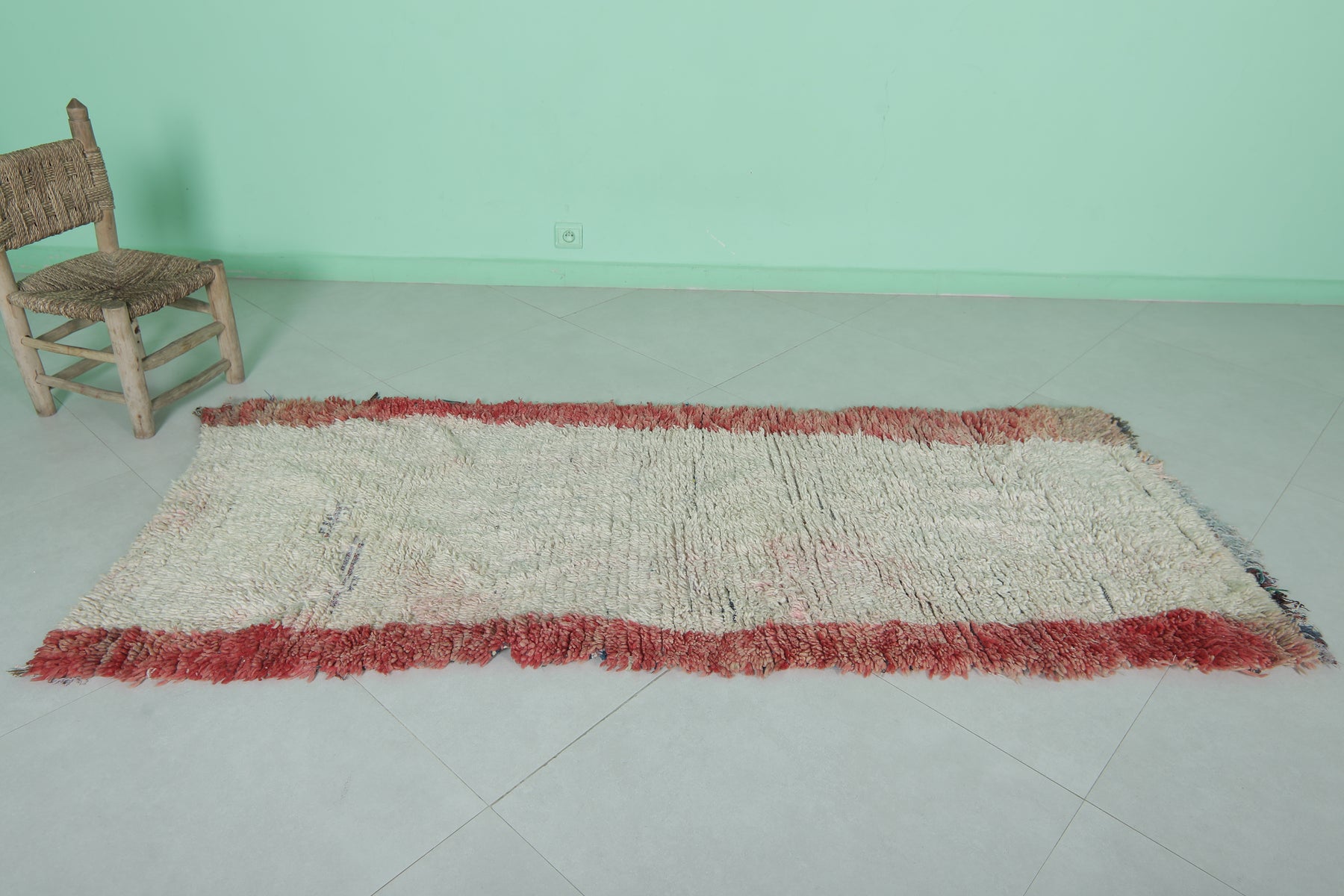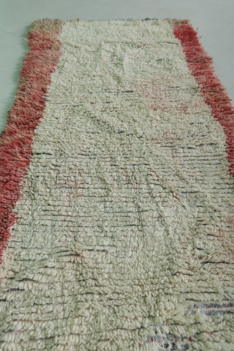Keep it classic with a twist using this Vintage Handmade Runner Rug (2.8 x 7 FT), featuring a minimalist ivory base framed by bold, fuzzy borders in coral red and charcoal.