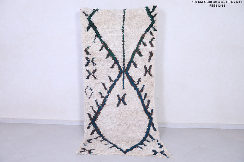 Handwoven Moroccan Runner Rug – Minimalist Berber Design 3.2 x 7.5 FT