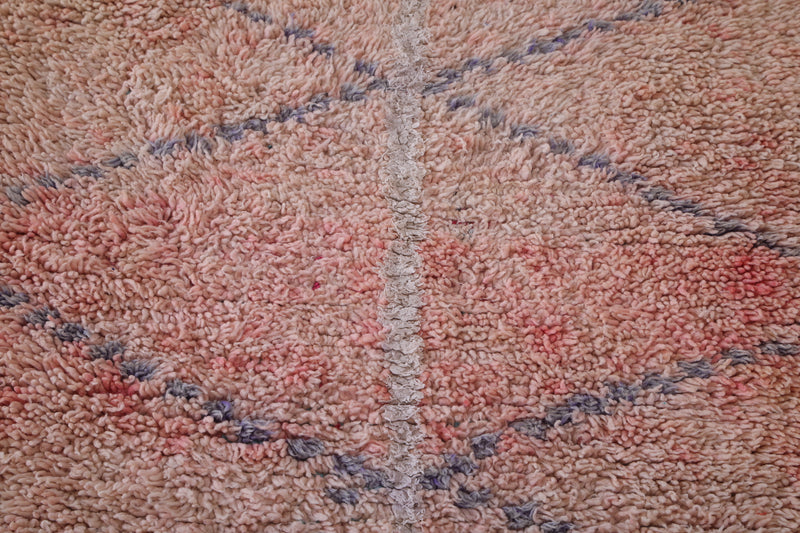 Bring subtle elegance to your space with this Vintage Handmade Runner Rug (3 x 6.9 FT), featuring a soft neutral base with faded geometric lines in warm pink and charcoal tones.