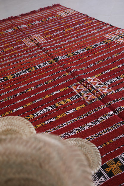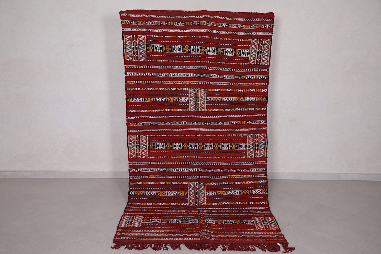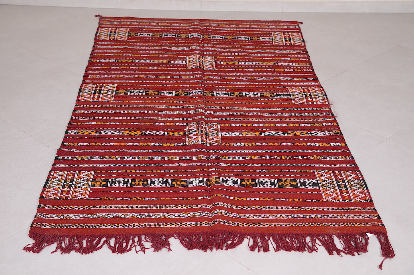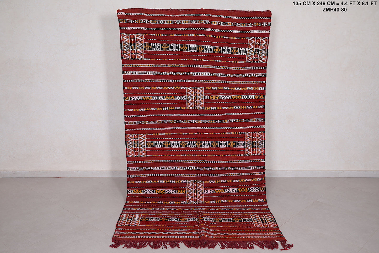 Vintage Handwoven Kilim Rug 4.4 FT x 8.1 FT – Unique Moroccan Design