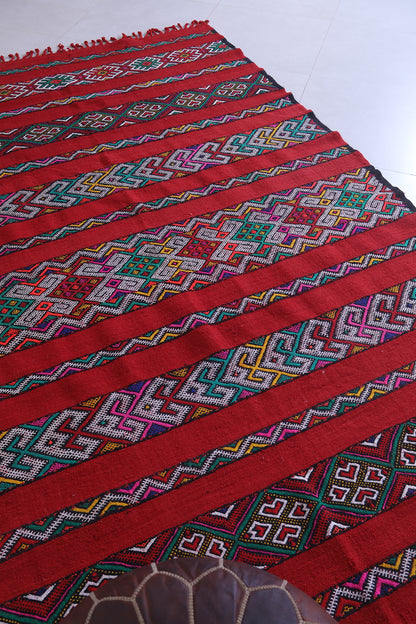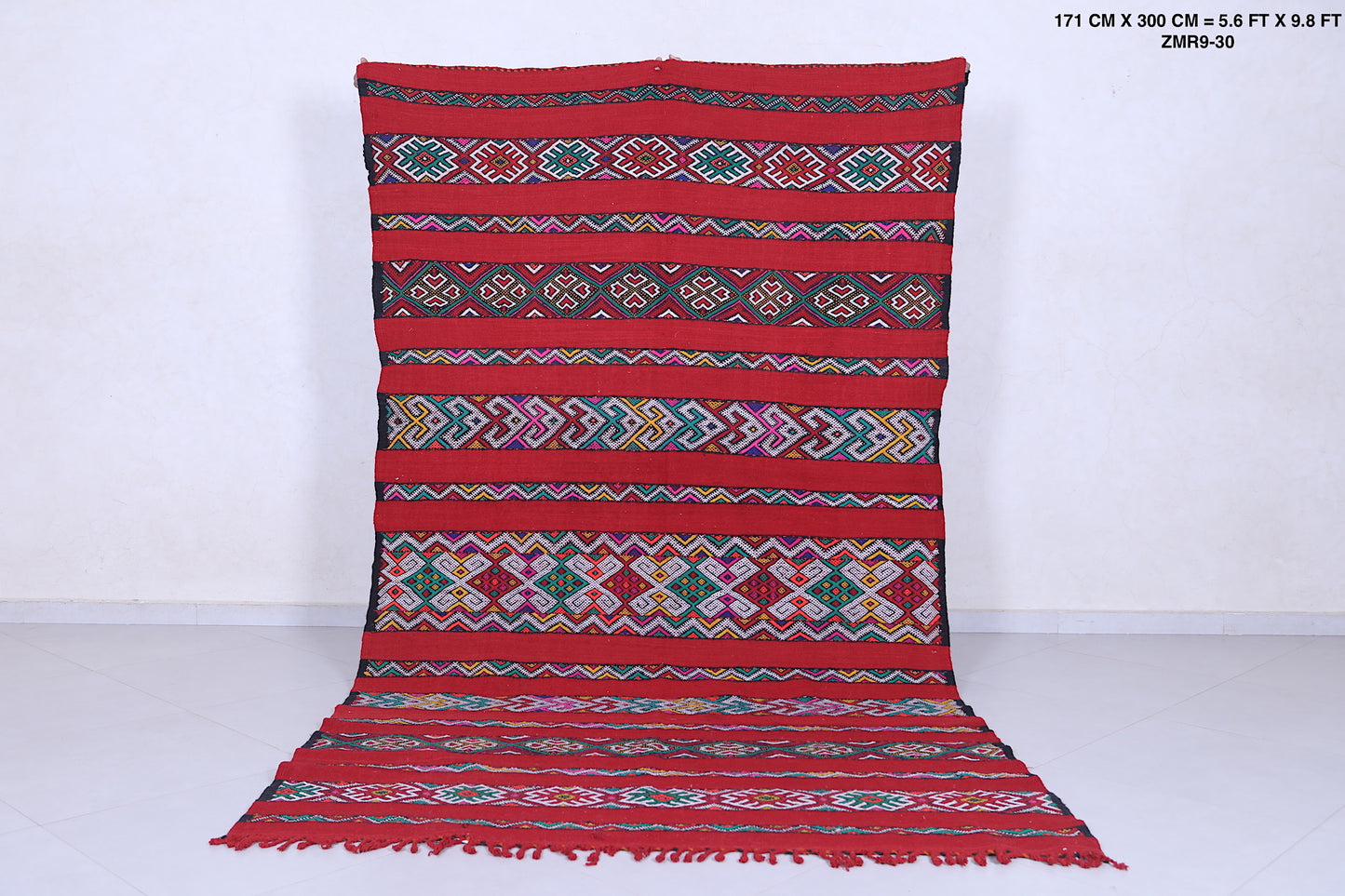 This 5.6 FT x 9.8 FT Vintage Moroccan Area Rug brings handwoven elegance and timeless character to your space. With bold geometric patterns and a rich red palette, it’s a statement piece rooted in cultural tradition.