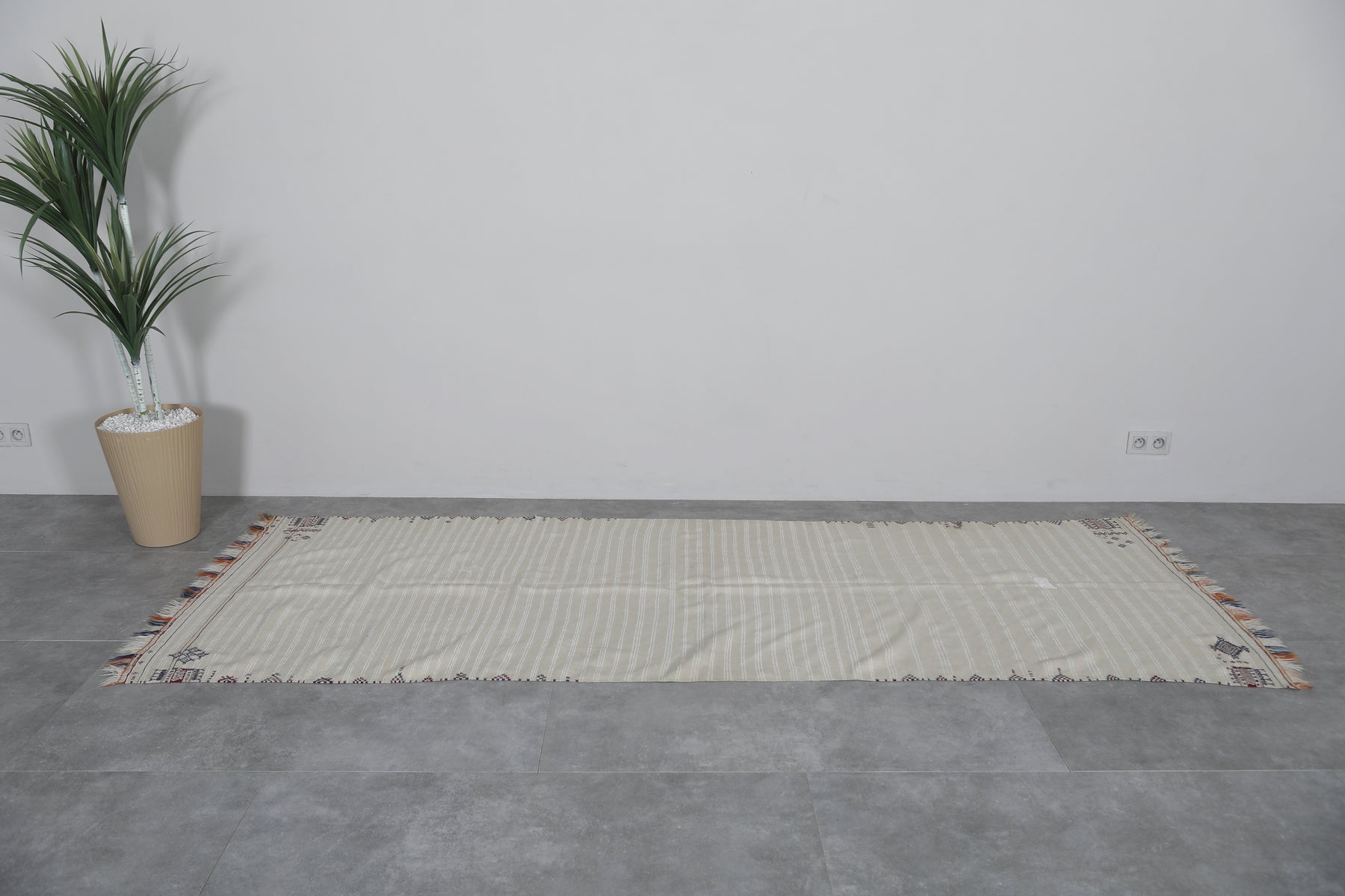 Vintage Handwoven Moroccan Fabric - 3.6 FT X 10.1 FT - Traditional Design