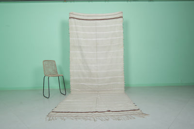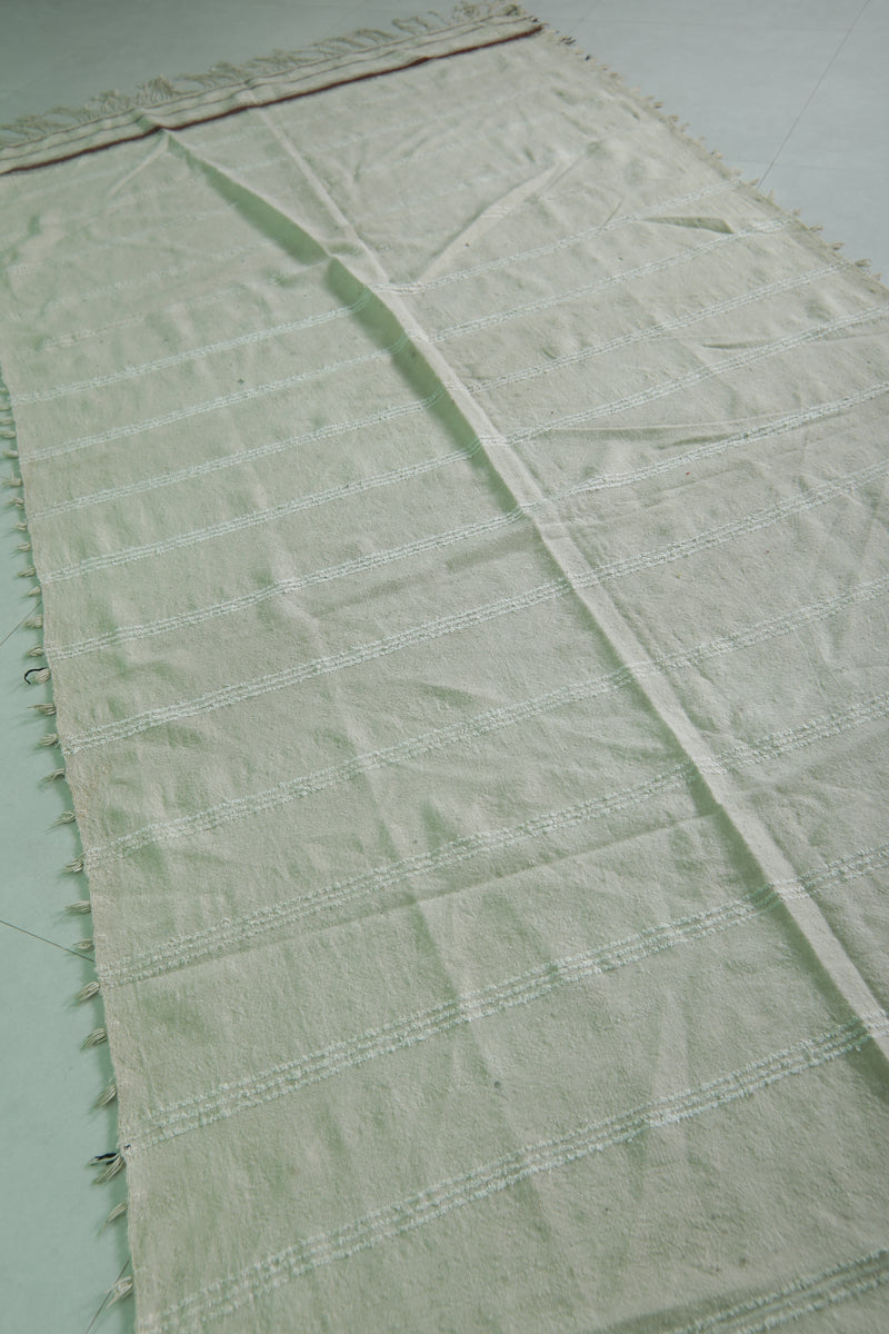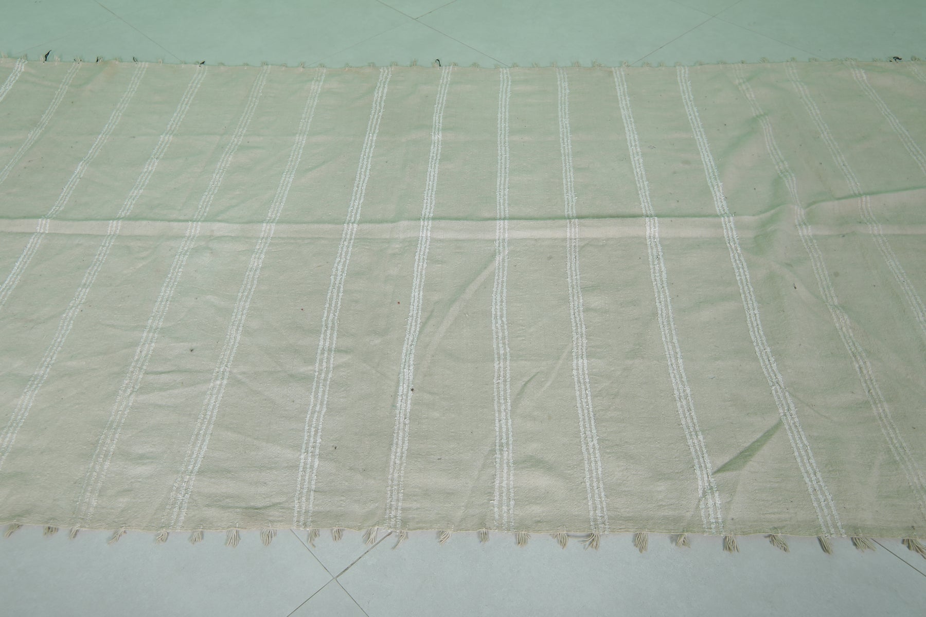 This 4.3 x 11.2 feet Vintage Moroccan Berber Handwoven Kilim Rug showcases subtle striped patterns and traditional Berber aesthetics, blending timeless charm with understated elegance. Handwoven from premium natural fibers, it offers durability, lightweight flexibility, and a refined touch, making it ideal as a runner or a centerpiece in any space.