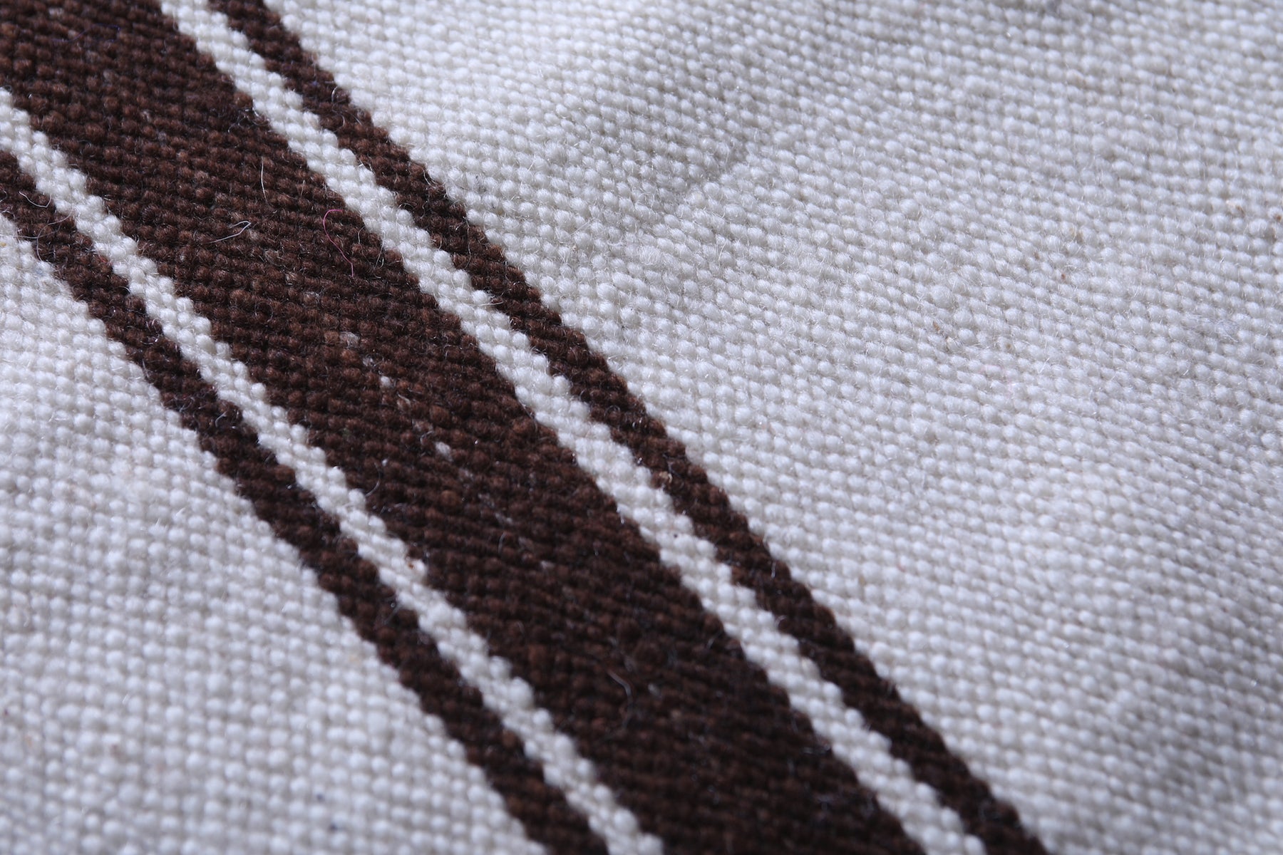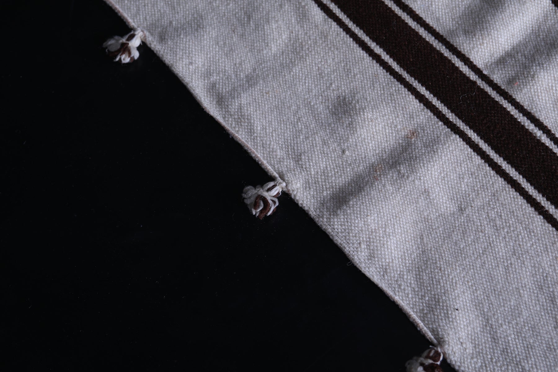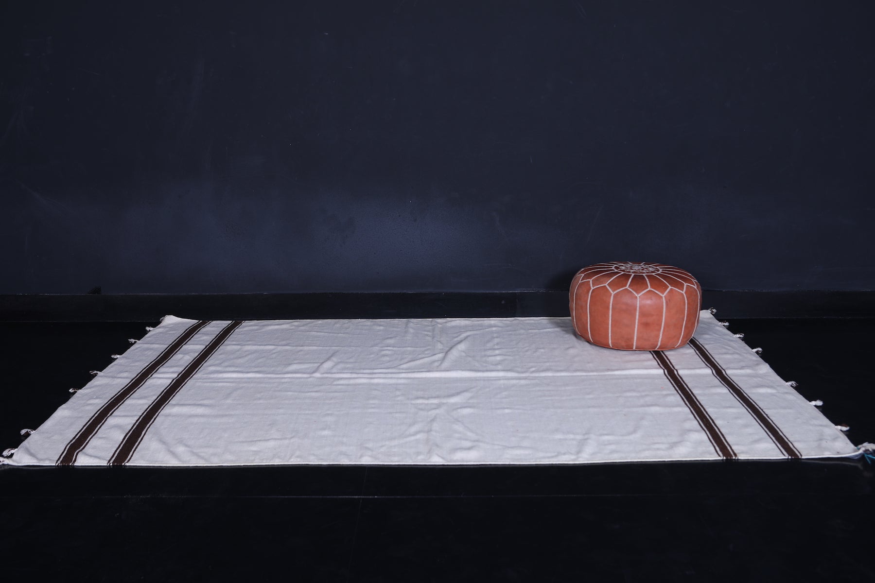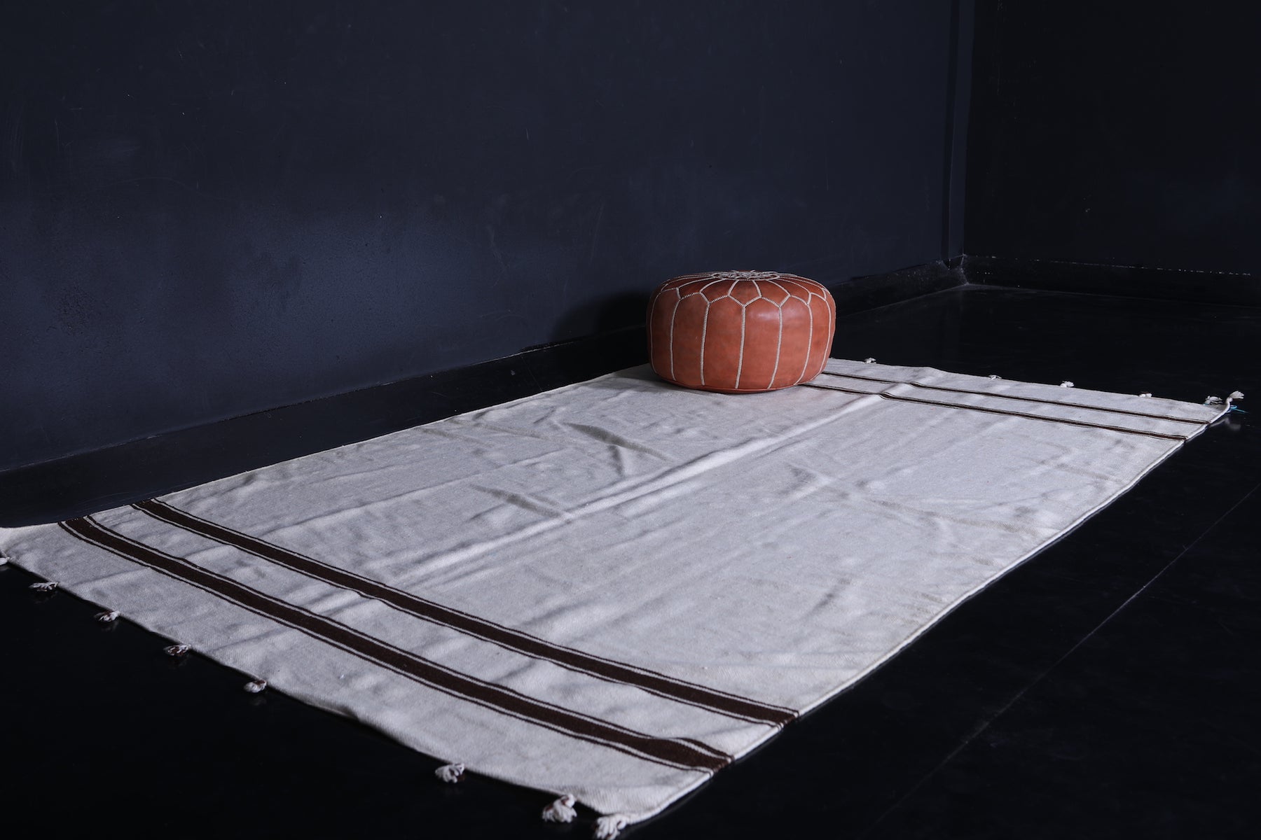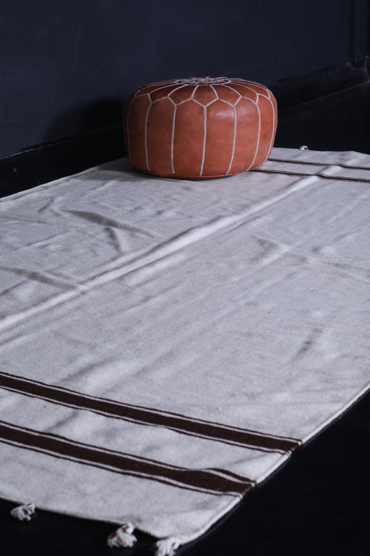 This 5.7 x 9 feet Vintage Moroccan Berber Handwoven Kilim features a creamy white base with subtle dark stripe accents, embodying timeless Moroccan craftsmanship. Handwoven with care, this kilim adds warmth and charm to living rooms, bedrooms, or contemporary interiors.