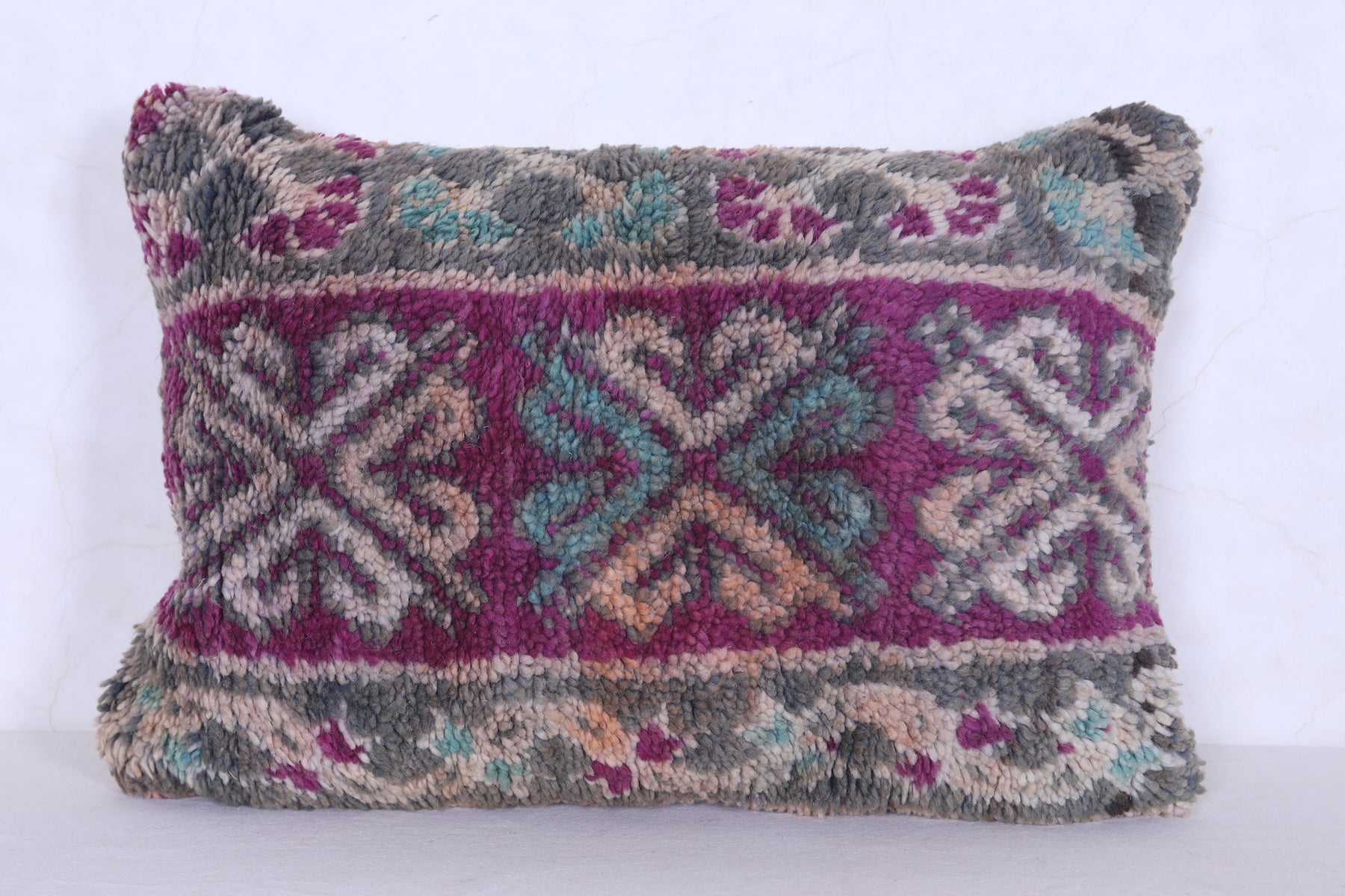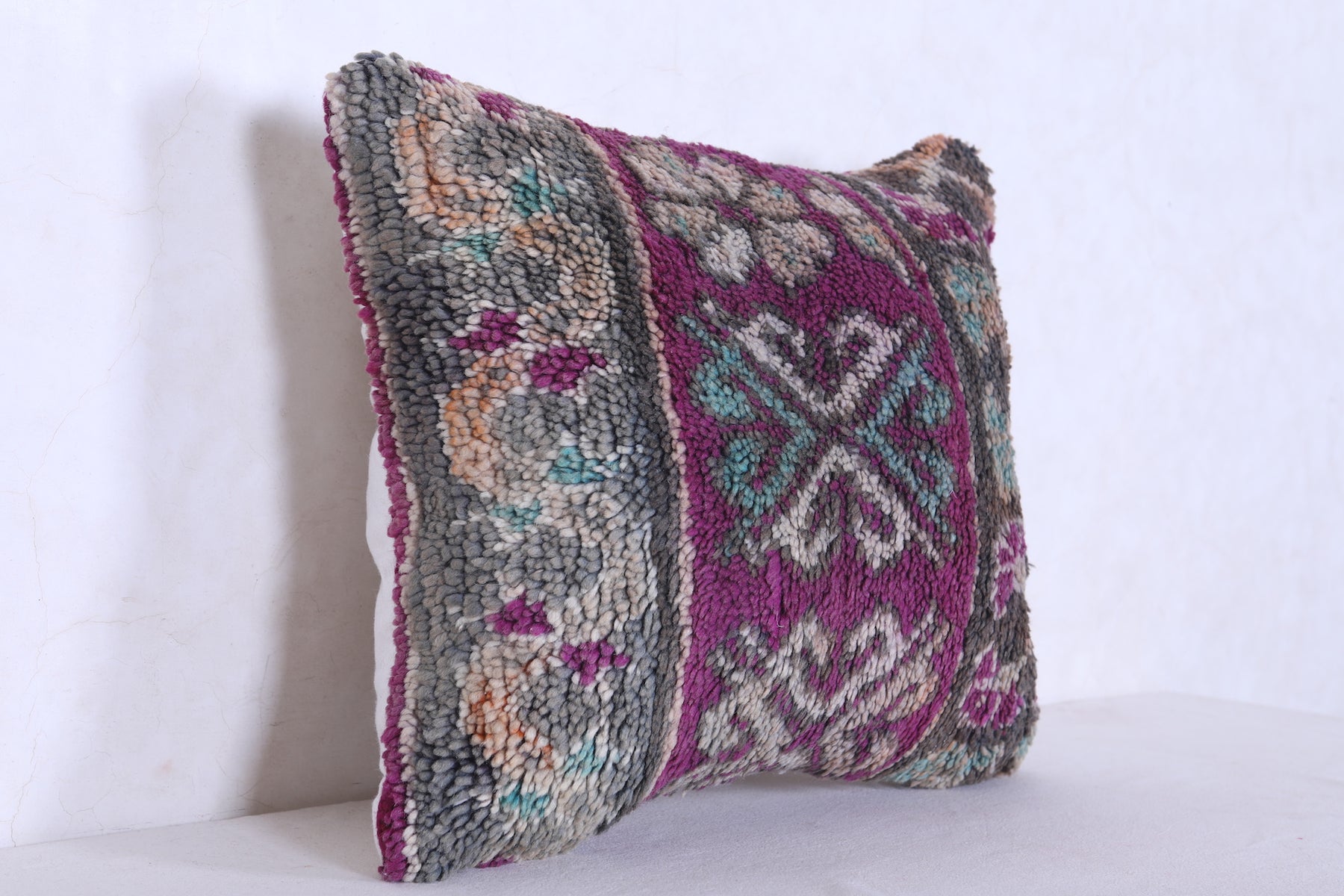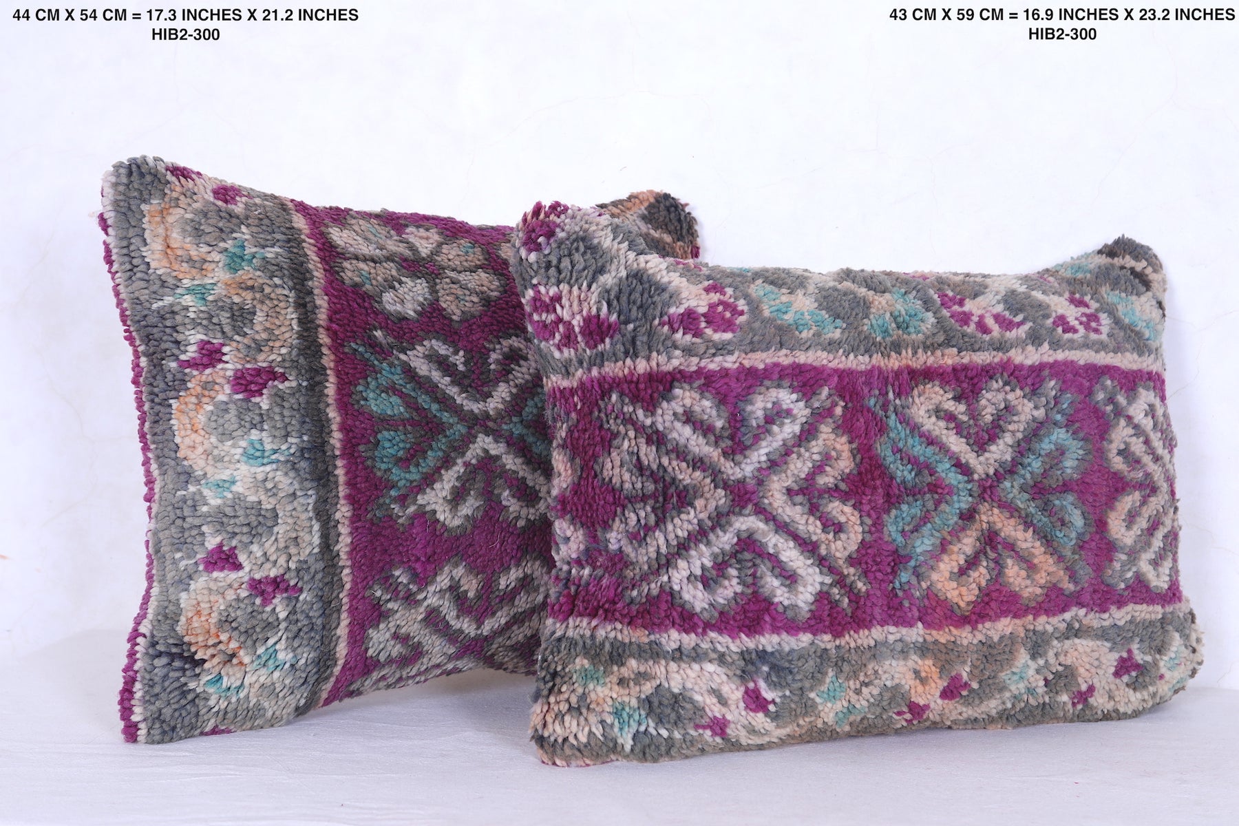 These Vintage Moroccan Berber Rug Pillows are crafted with timeless beauty. They measure 17.3 inches x 21.2 inches and feature a unique traditional design that will bring a touch of culture to any living room. They are an excellent way to add a pop of color and culture to your home.