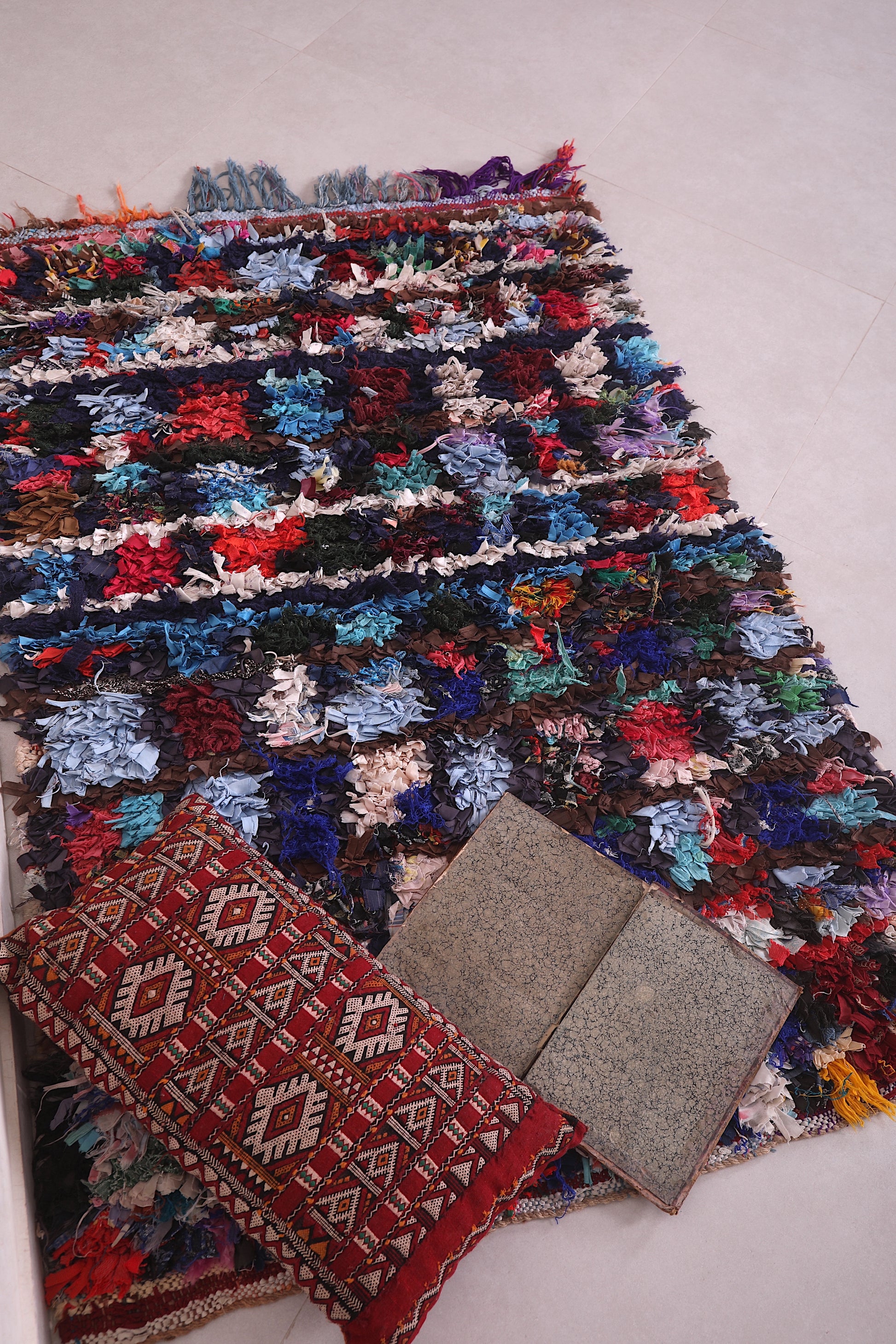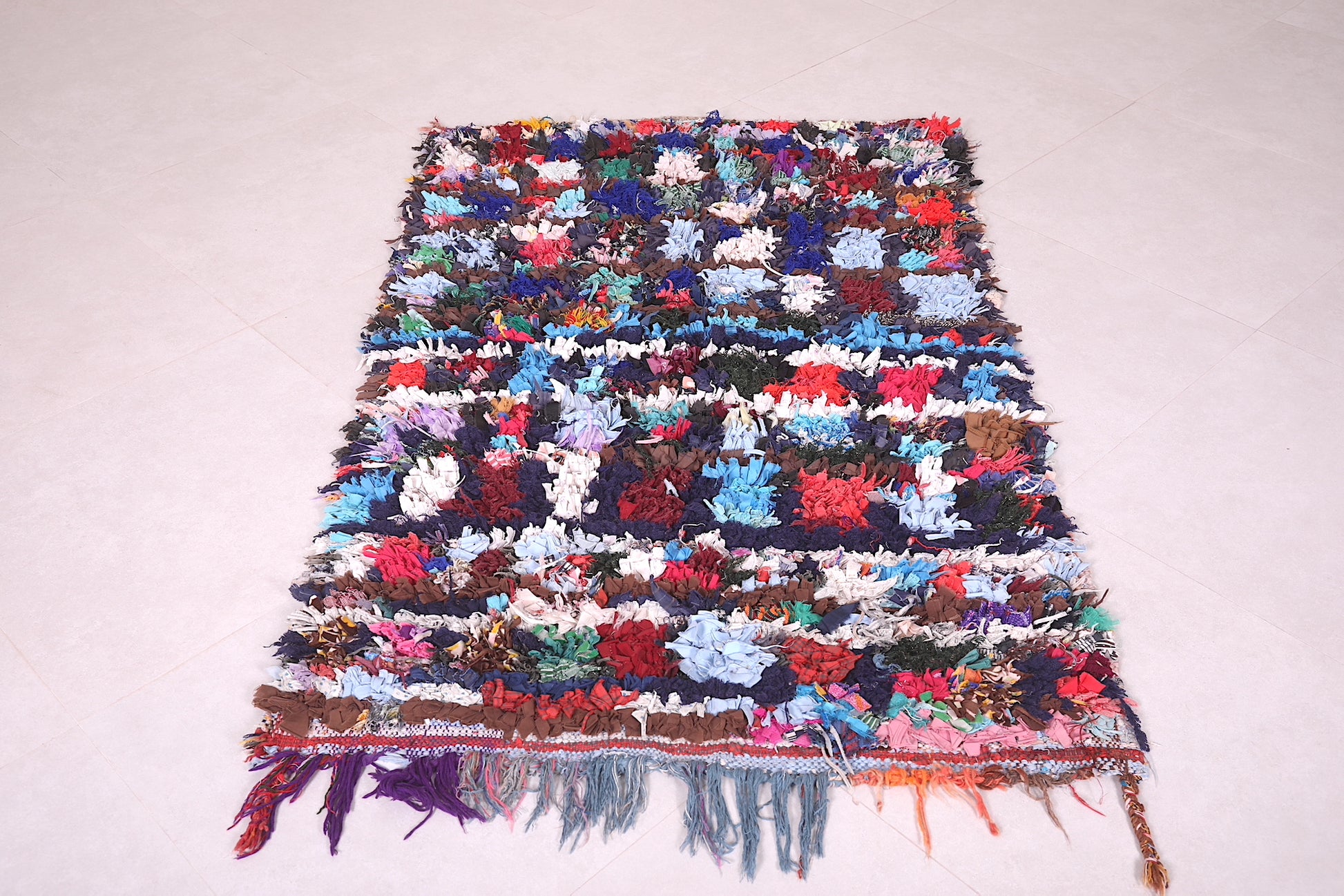 Vintage Moroccan Boucherouite Rug 3.8 x 5.3 Feet - Handmade Patchwork Decor