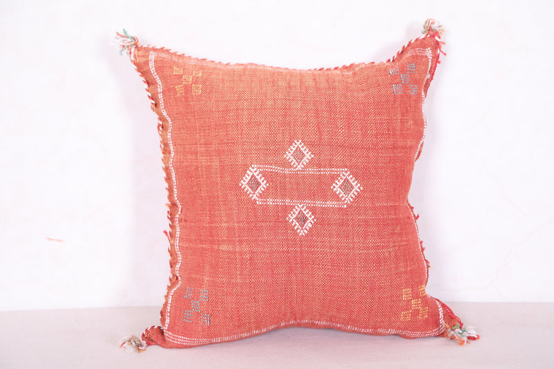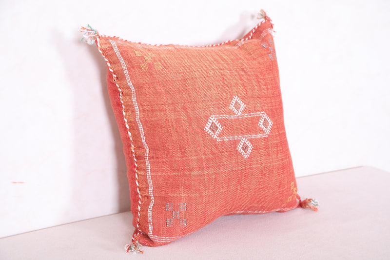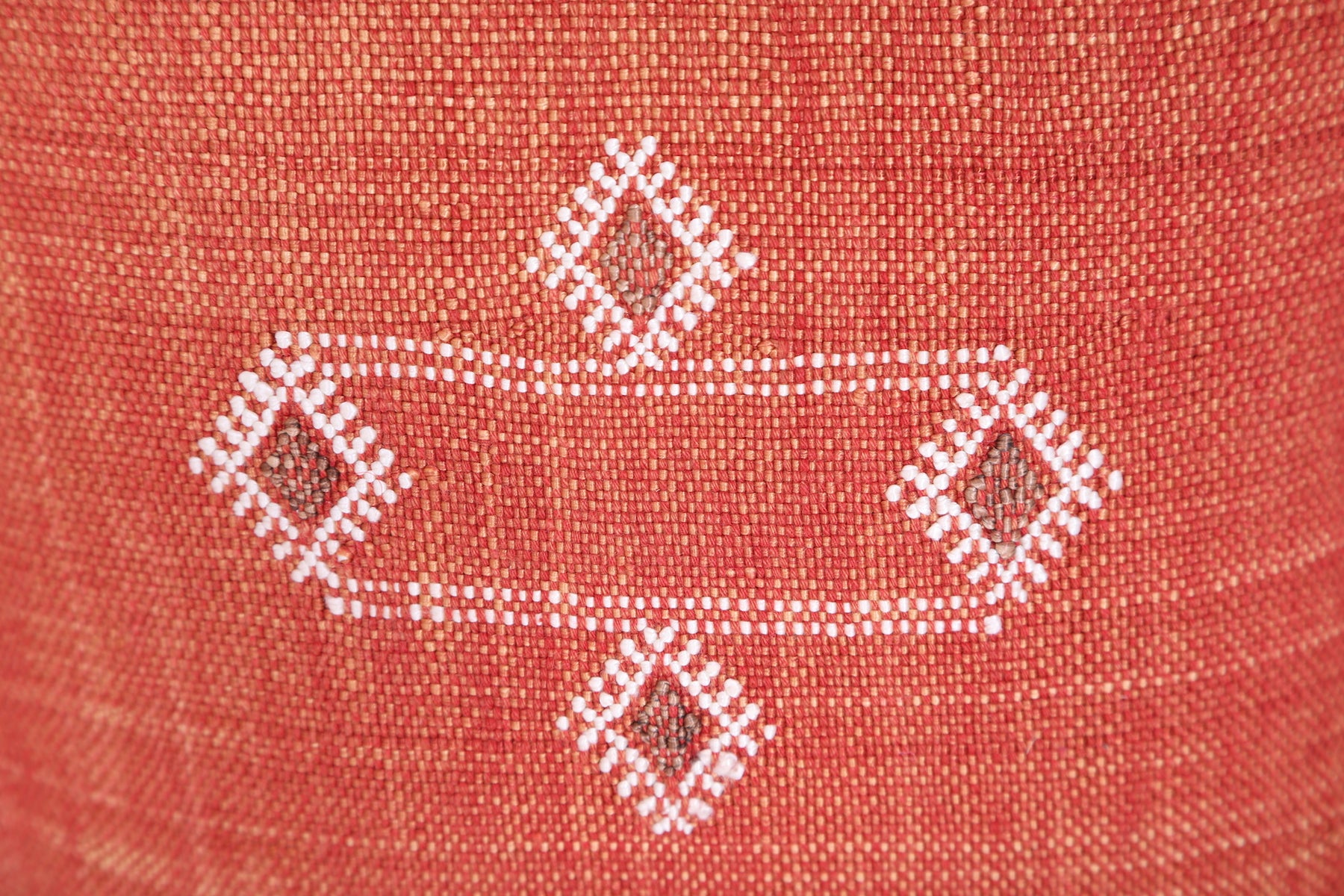 Add warmth and artisanal charm to your space with this Moroccan Berber Pillow, sized at 17.3 x 17.7 inches (44 CM x 45 CM). Handcrafted by Berber artisans, this pillow features a soft coral hue accented with delicate white embroidered symbols, blending traditional craftsmanship with understated elegance. Perfect for adding a cozy, cultural touch to sofas, beds, or chairs.