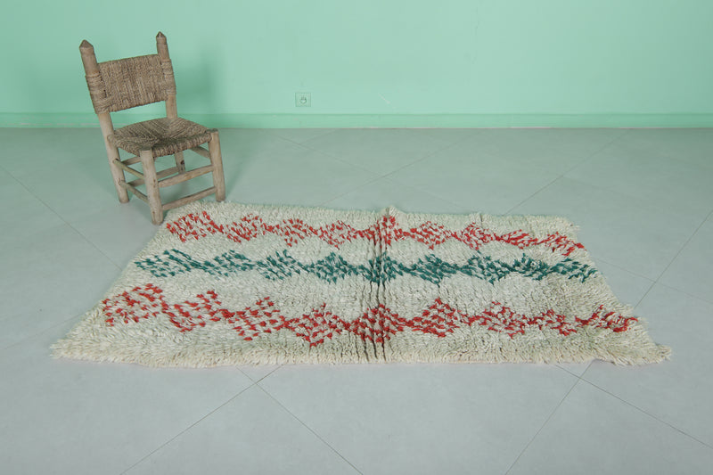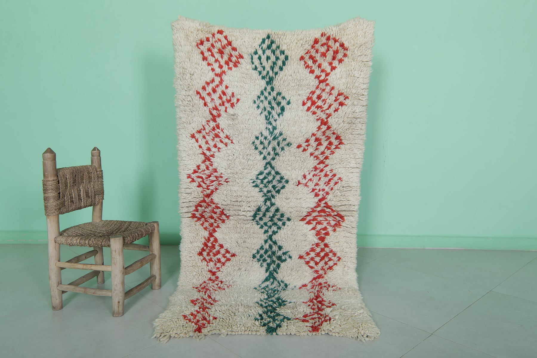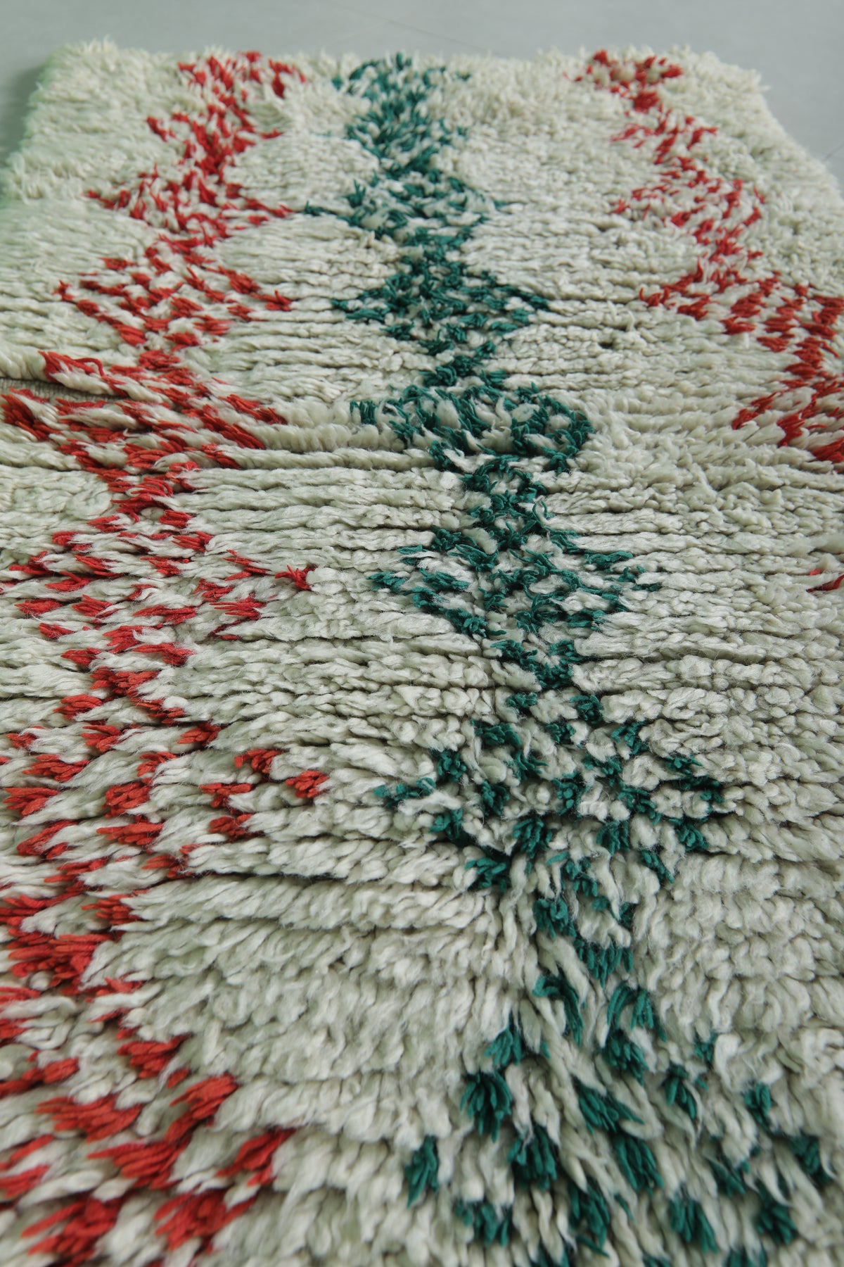 Bring the charm of Moroccan tradition into your home with this Vintage Moroccan Hallway Rug (2.6 x 5.3 FT), featuring a central chain of bold red and teal diamond motifs on a soft ivory base.