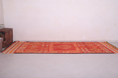 Add warmth and heritage to your home with this Vintage Moroccan Hallway Rug, sized at 4.3 x 11.3 feet. Handwoven by Berber artisans in Morocco, this stunning wool runner features intricate geometric patterns in a rich red-orange palette. Its extended size and detailed craftsmanship make it a standout piece for hallways, living spaces, or grand entryways.