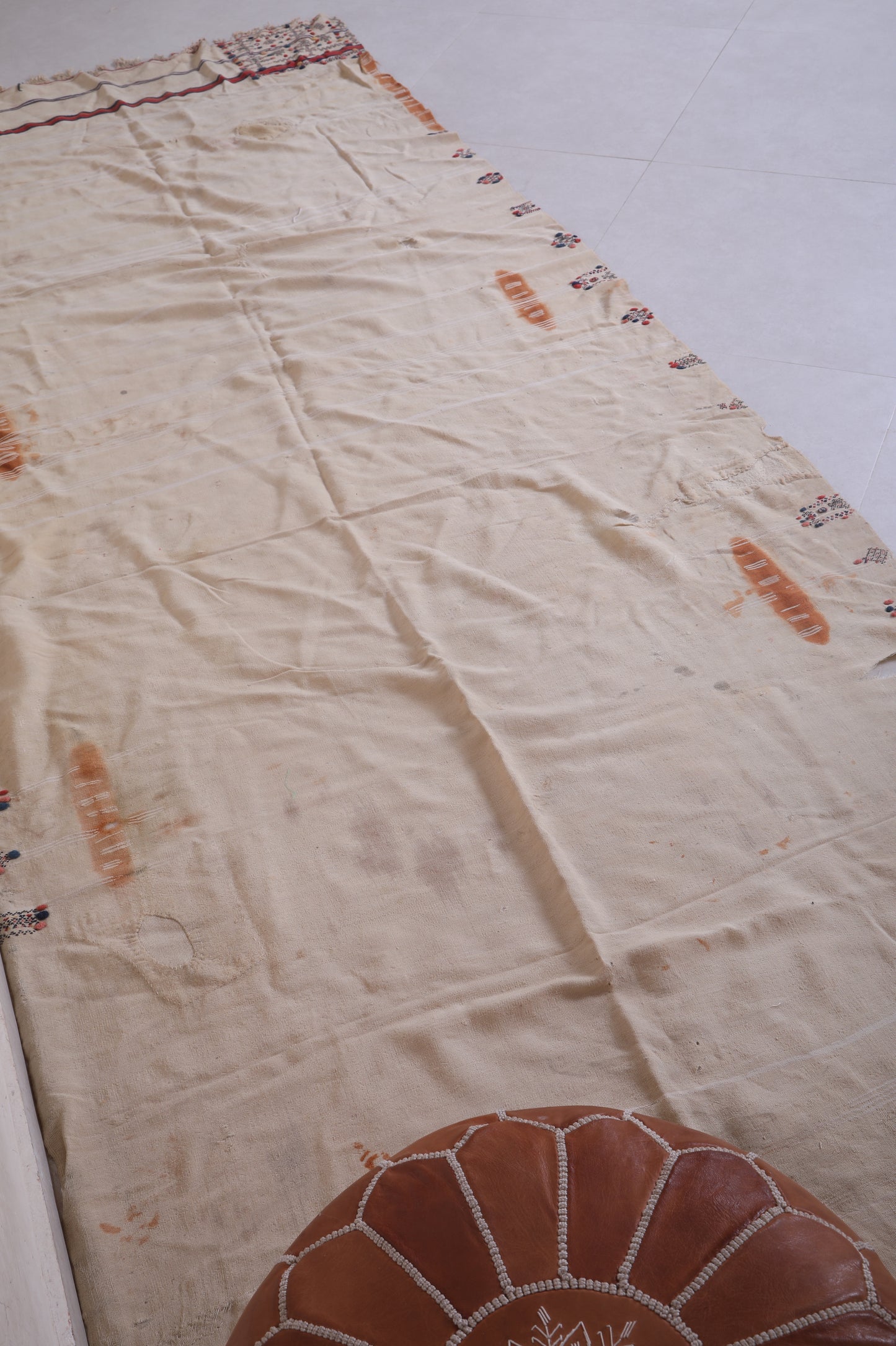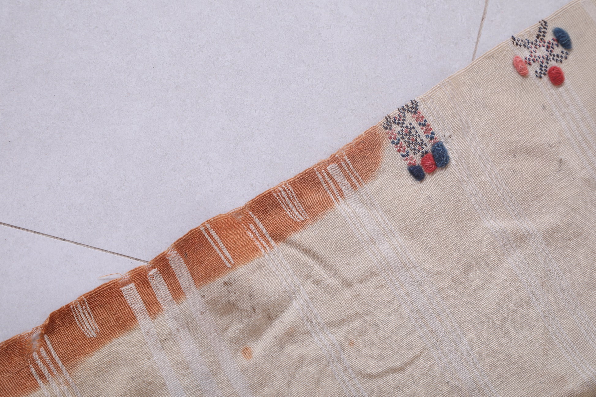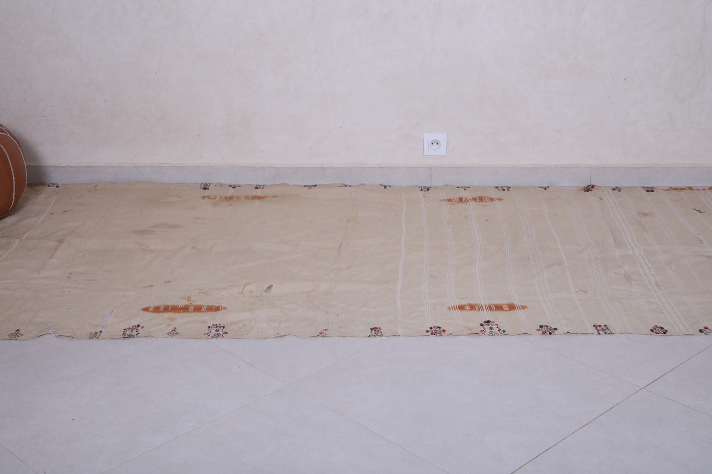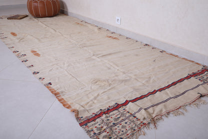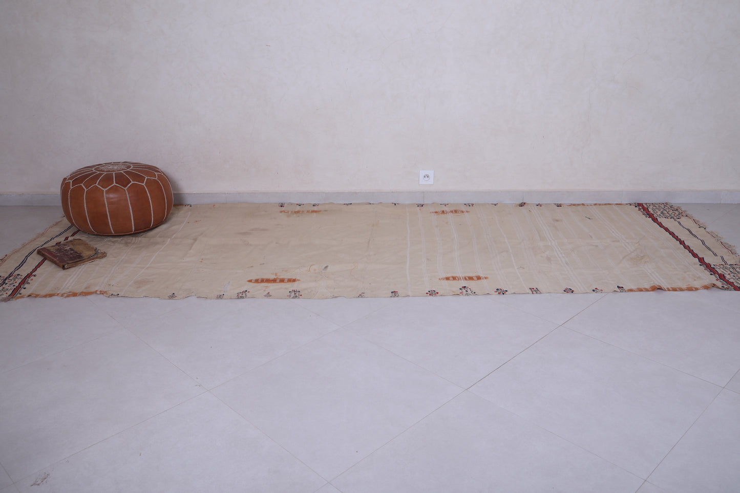 This 4.1 x 11.9 feet Vintage Moroccan Handwoven Kilim showcases a classic natural design with subtle embroidered details, blending sophistication with cultural richness. Handcrafted by expert artisans, this rug brings both beauty and durability, making it ideal for large rooms, hallways, or as a statement piece.