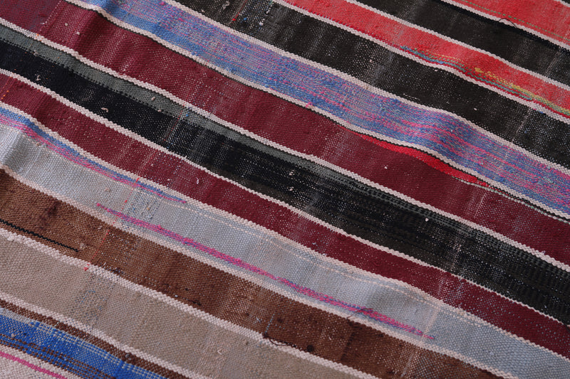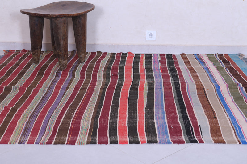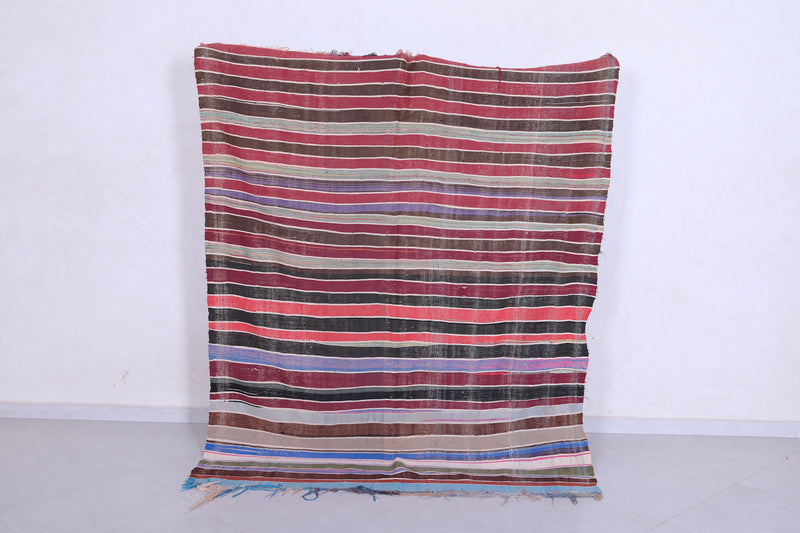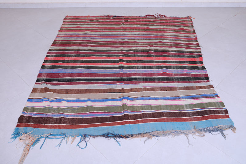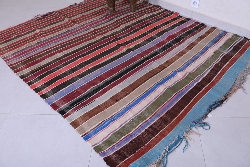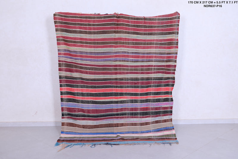 Vintage Moroccan Handwoven Kilim - 5.5 x 7.1 ft - Striped Bohemian Design