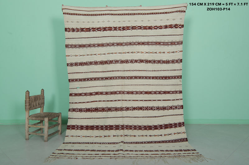 Vintage Moroccan Handwoven Kilim - 5 FT X 7.1 FT - Traditional Design