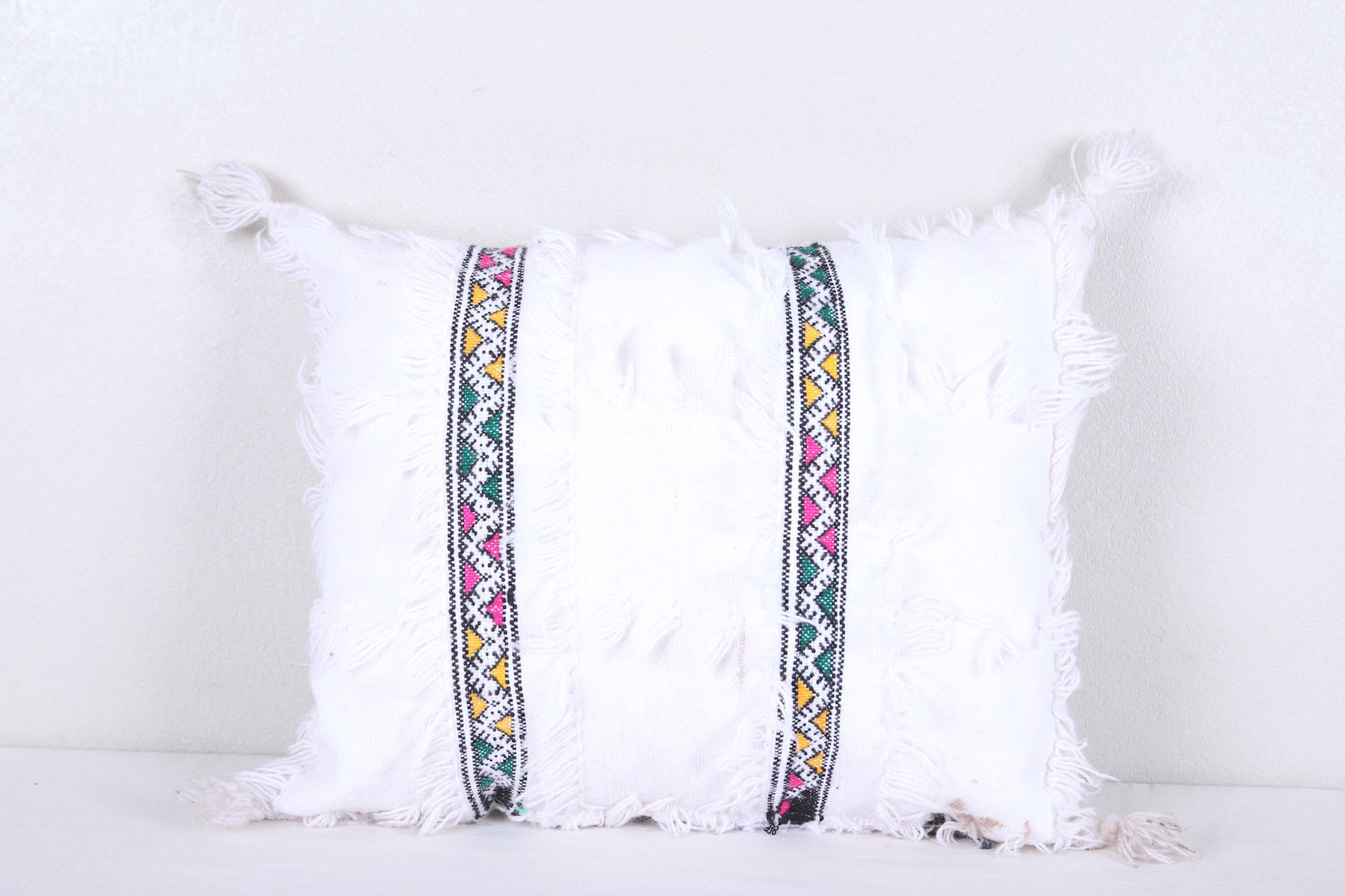 This vintage moroccan handwoven kilim pillow is perfect for adding a traditional, distinct look to any room. Its unique weaving pattern is sure to draw the eye, while its 16.1" x 19.6" size adds the perfect touch of style. Whether for decoration or comfort, this pillow is a great addition to any home.