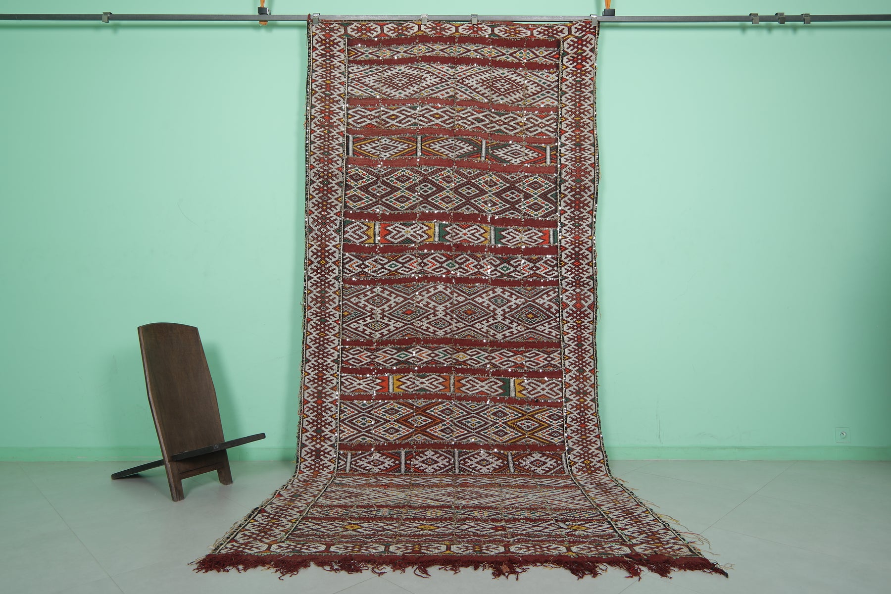 Vintage Moroccan Kilim - 5.5 FT X 12.2 FT - Authentic Handwoven Rug