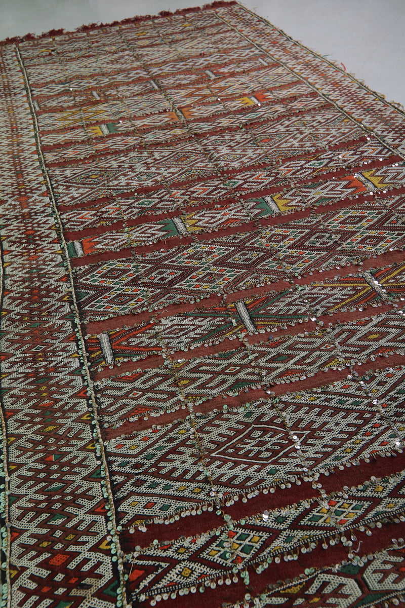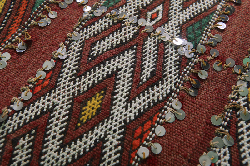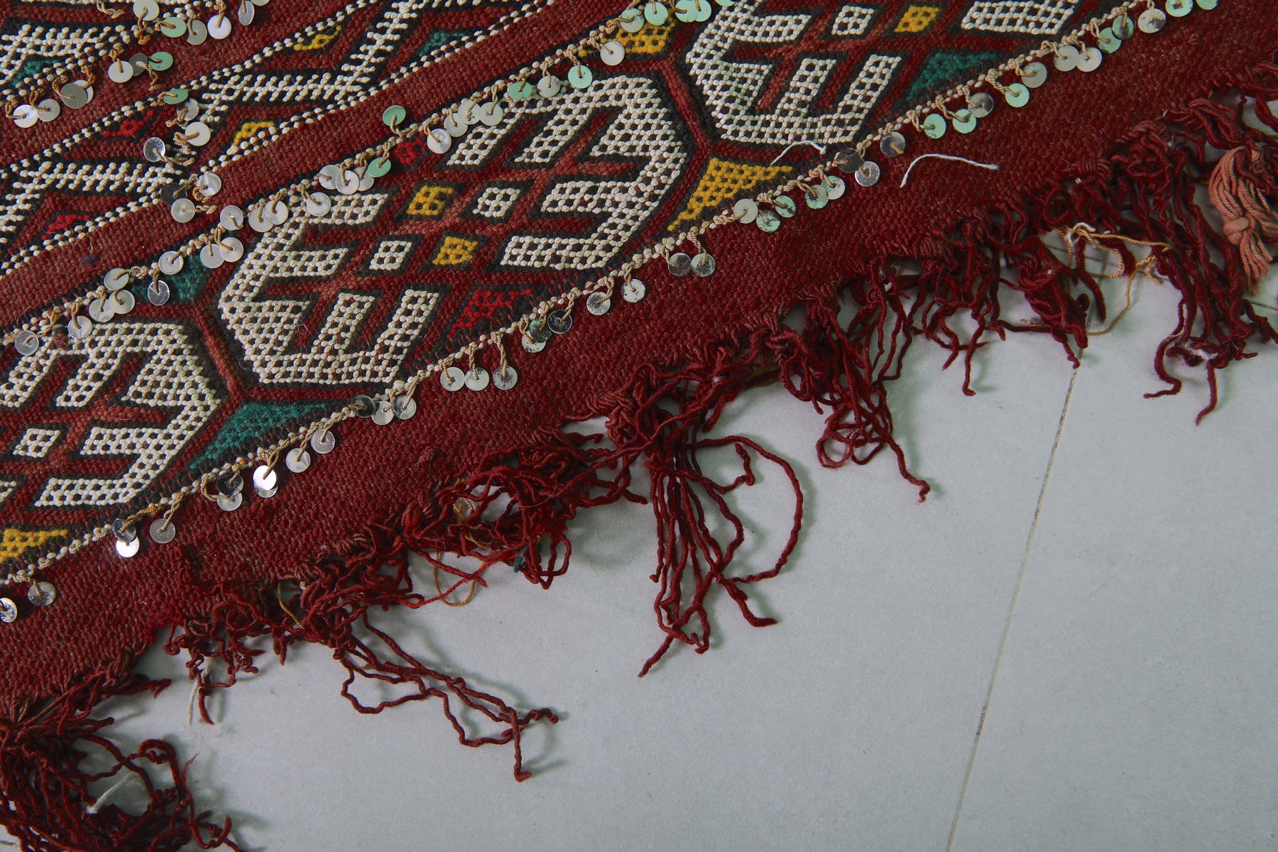 The Dimensions of this Vintage Moroccan kilim does not include tassels.