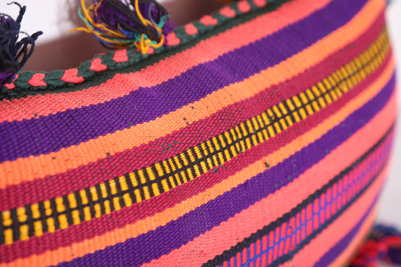 Add a vibrant pop of color and global charm to your home with this Striped Moroccan Pillow, sized at 11.8 x 20.4 inches (30 CM x 52 CM). Handcrafted by skilled artisans, this pillow features bold multicolor stripes, intricate woven detailing, and playful fringe edges—bringing authentic Moroccan craftsmanship to your décor. Ideal for adding texture and personality to sofas, benches, or beds.