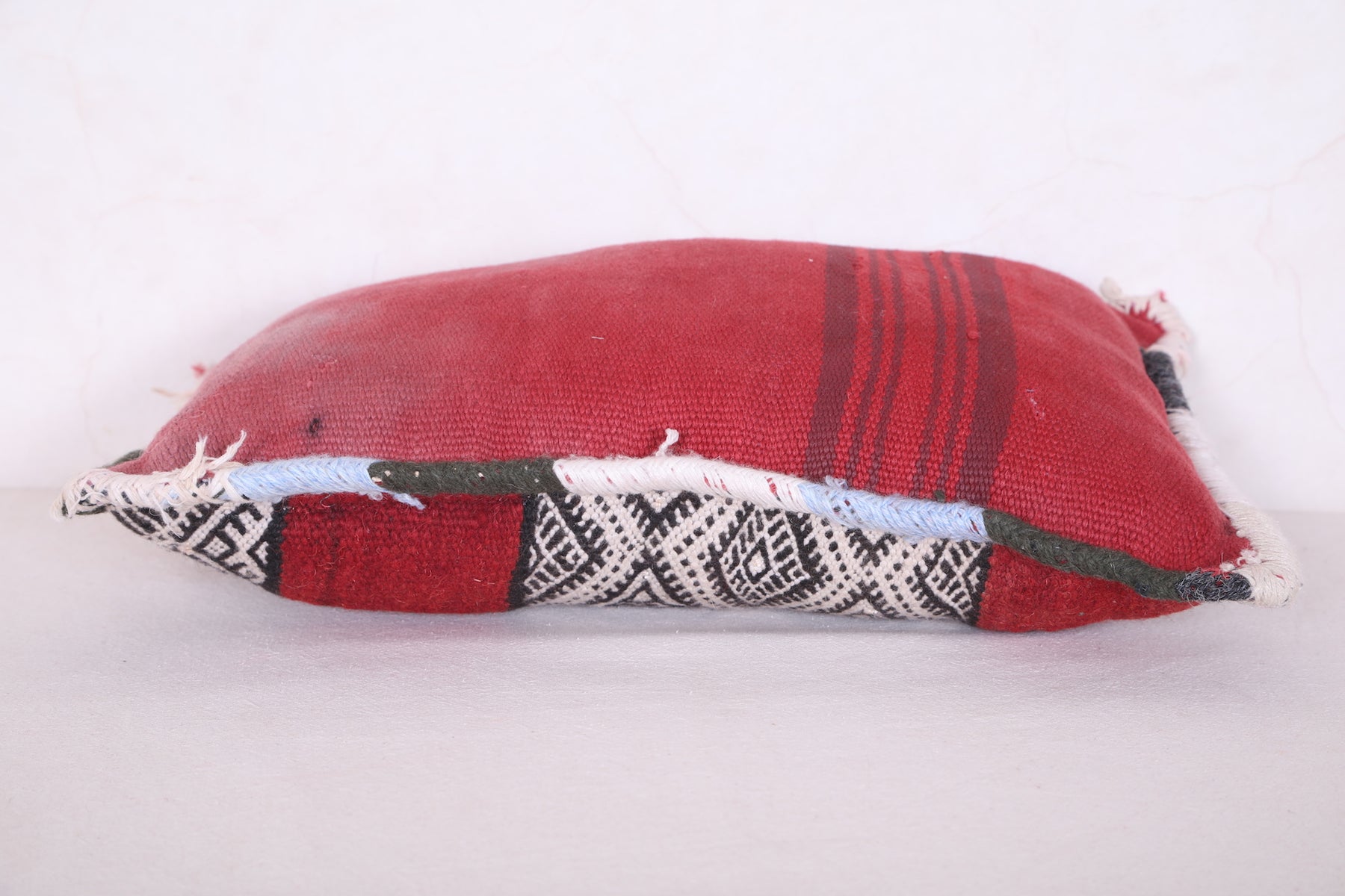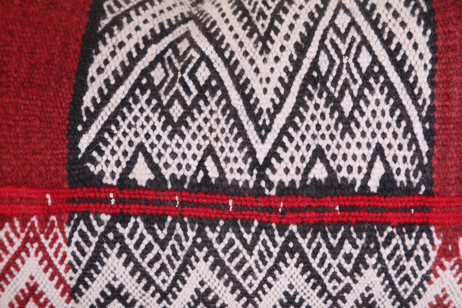 Add global charm to your space with this handcrafted striped Moroccan pillow, measuring 12.9 x 20.4 inches (33 CM x 52 CM). Featuring bold red accents paired with intricate black and white geometric patterns, this pillow effortlessly blends traditional craftsmanship with modern style.