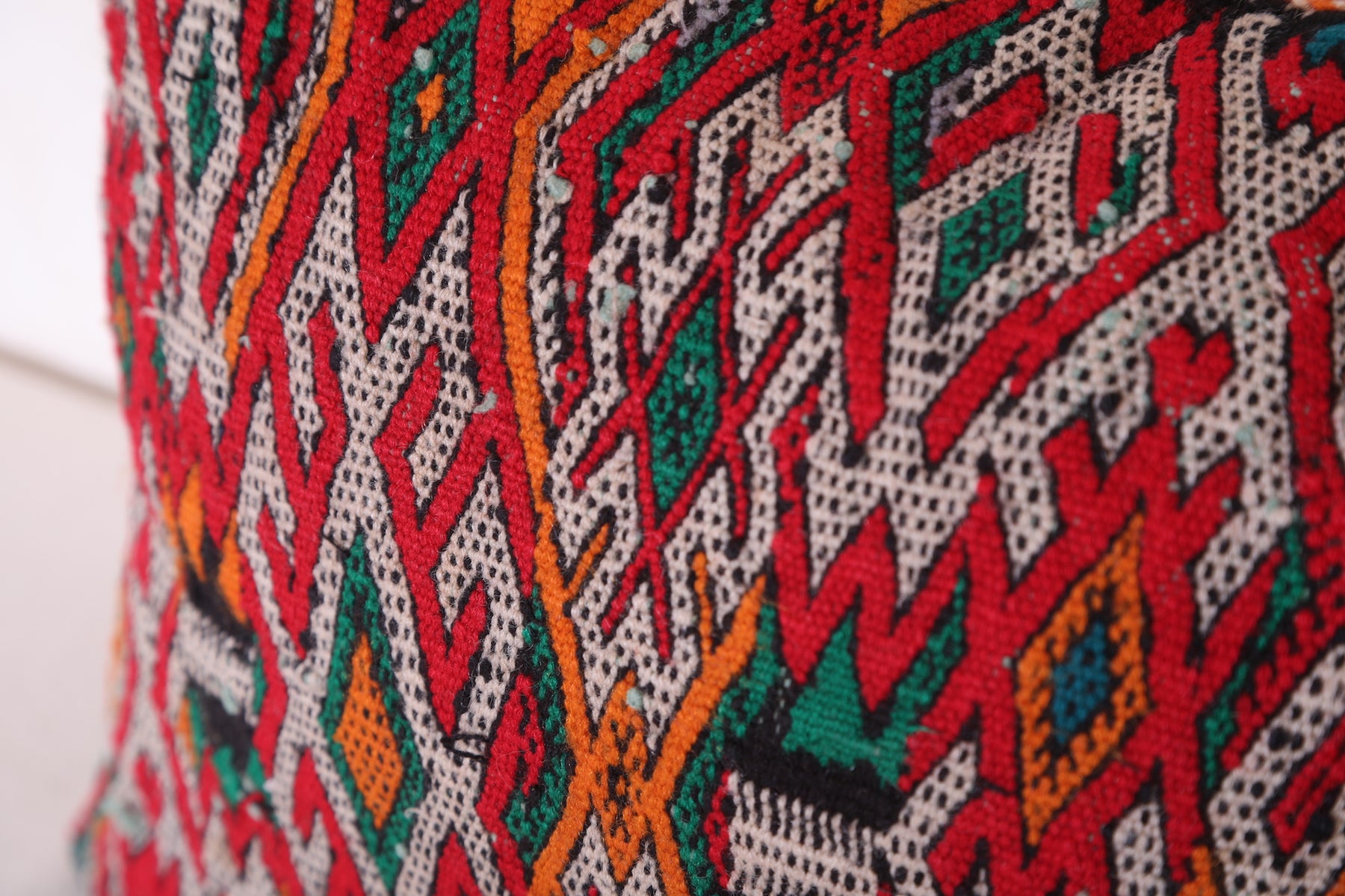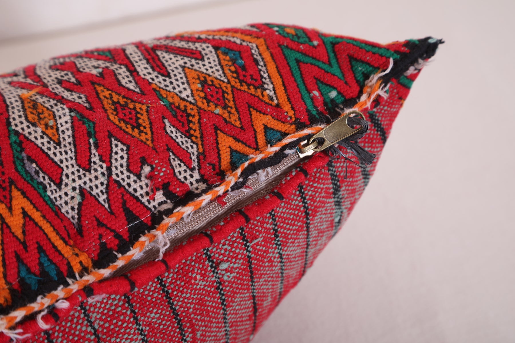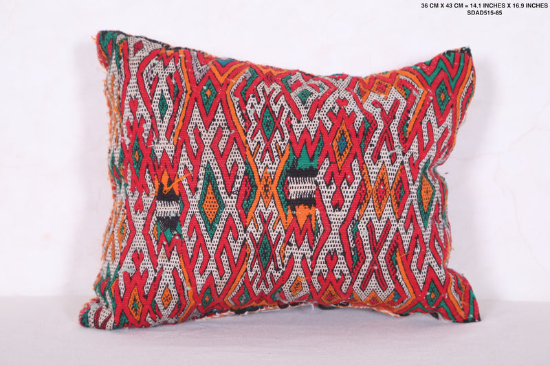 Add vibrant color and authentic Moroccan artistry to your space with this handwoven Moroccan Pillow, sized at 14.1 x 16.9 inches (36 CM x 43 CM). Featuring bold geometric patterns in striking red, green, and ivory tones, this pillow brings a global-inspired charm to your home. Perfect for sofas, chairs, or beds, it effortlessly combines comfort with cultural flair.