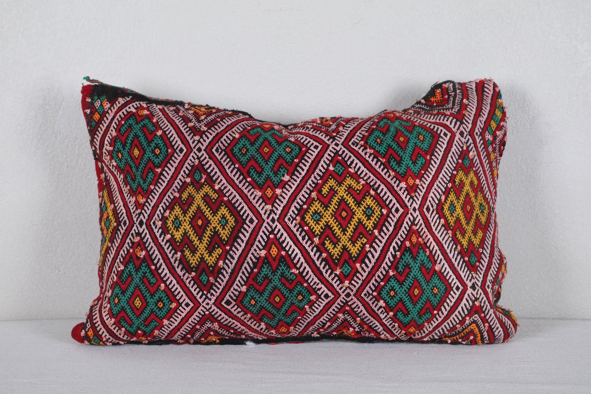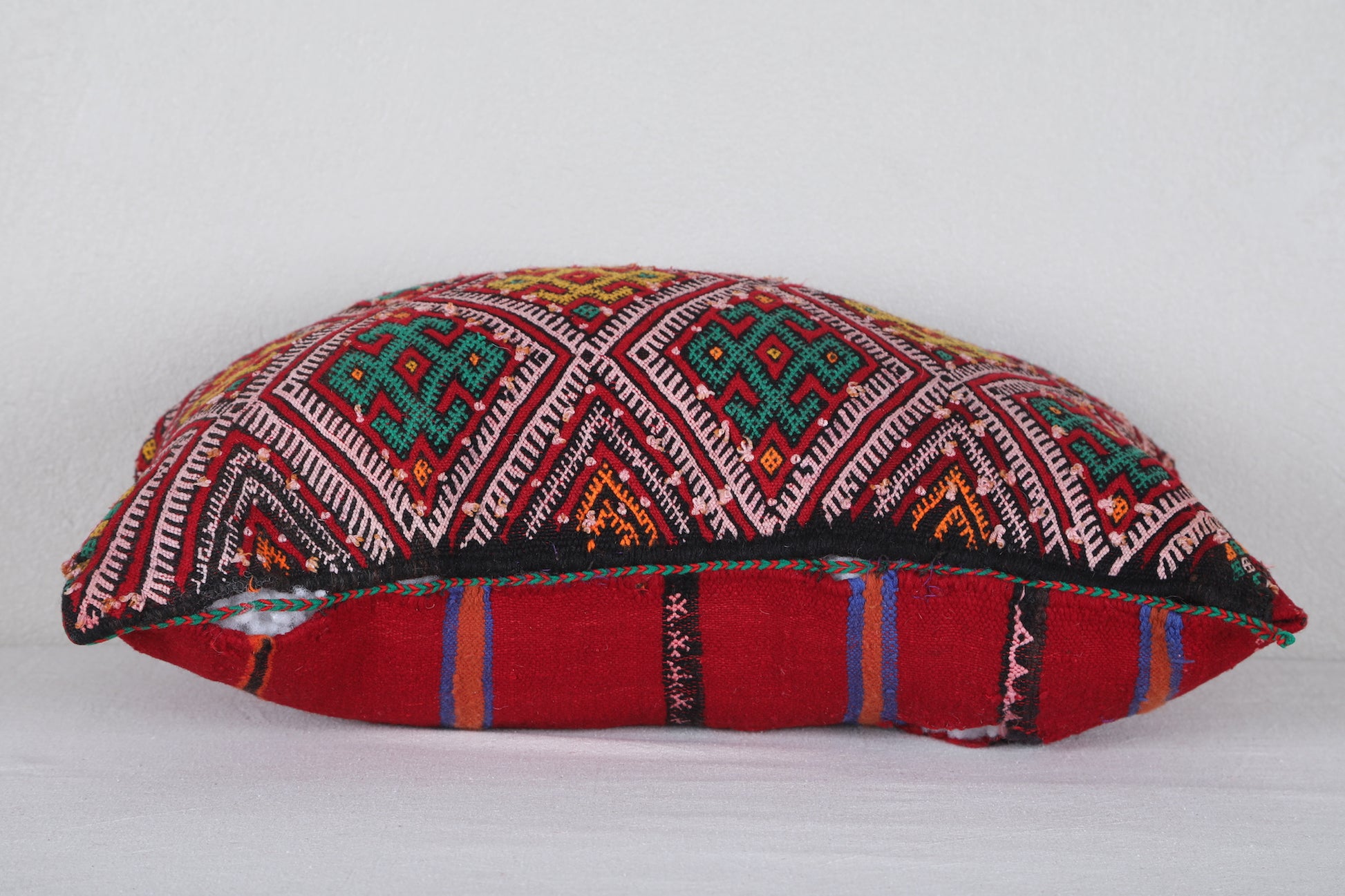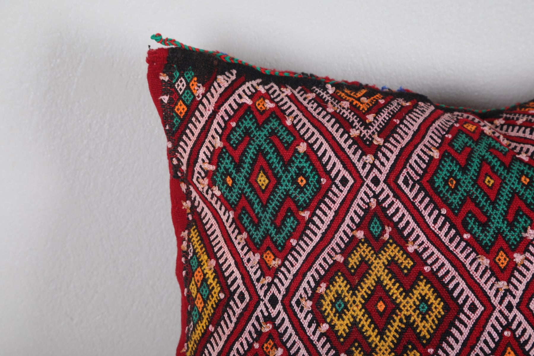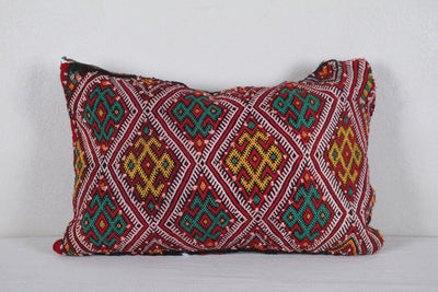 Add vibrant color and authentic Moroccan artistry to your home with this handwoven Moroccan Pillow, sized at 14.9 x 22.4 inches (38 CM x 57 CM). Featuring intricate geometric patterns in bold red, green, and yellow hues, this pillow brings traditional Berber craftsmanship into modern living spaces. Perfect for accenting your sofa, bed, or reading nook, it adds a global-inspired touch to any décor.