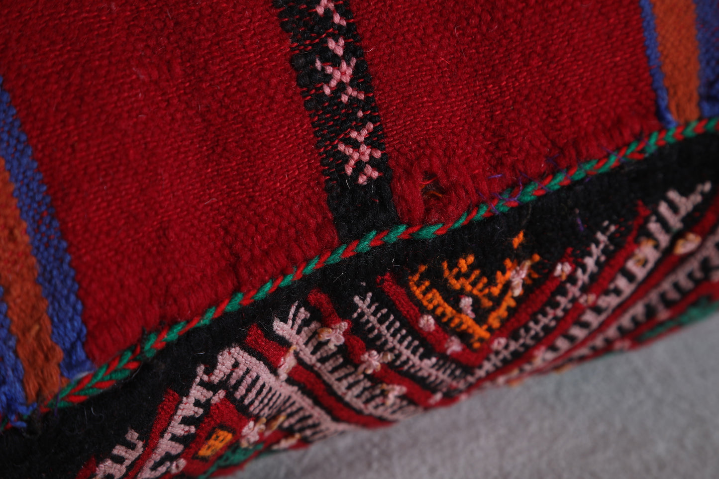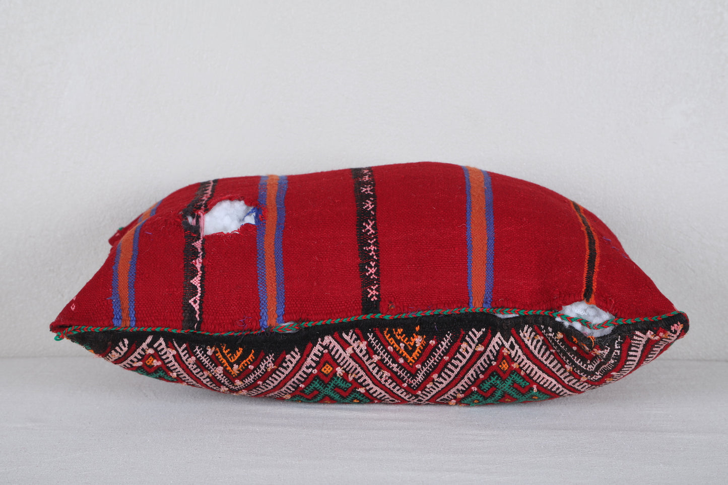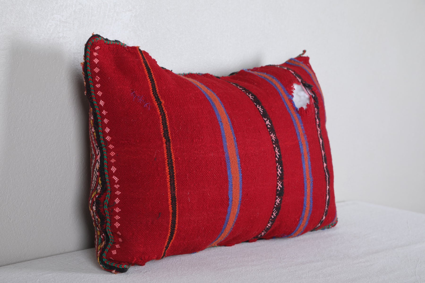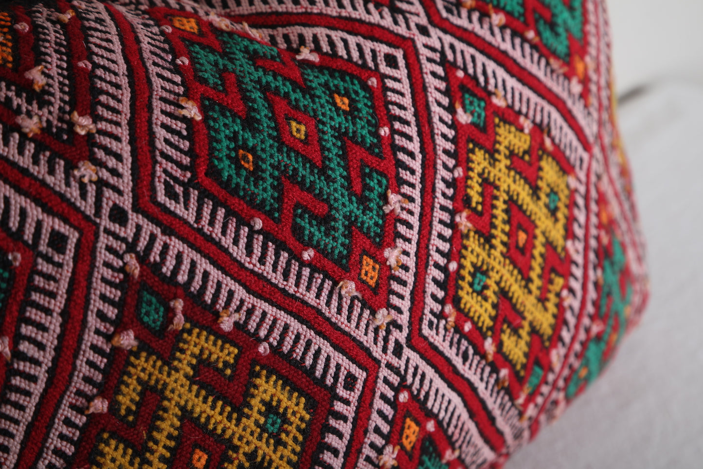 Add vibrant color and authentic Moroccan artistry to your home with this handwoven Moroccan Pillow, sized at 14.9 x 22.4 inches (38 CM x 57 CM). Featuring intricate geometric patterns in bold red, green, and yellow hues, this pillow brings traditional Berber craftsmanship into modern living spaces. Perfect for accenting your sofa, bed, or reading nook, it adds a global-inspired touch to any décor.