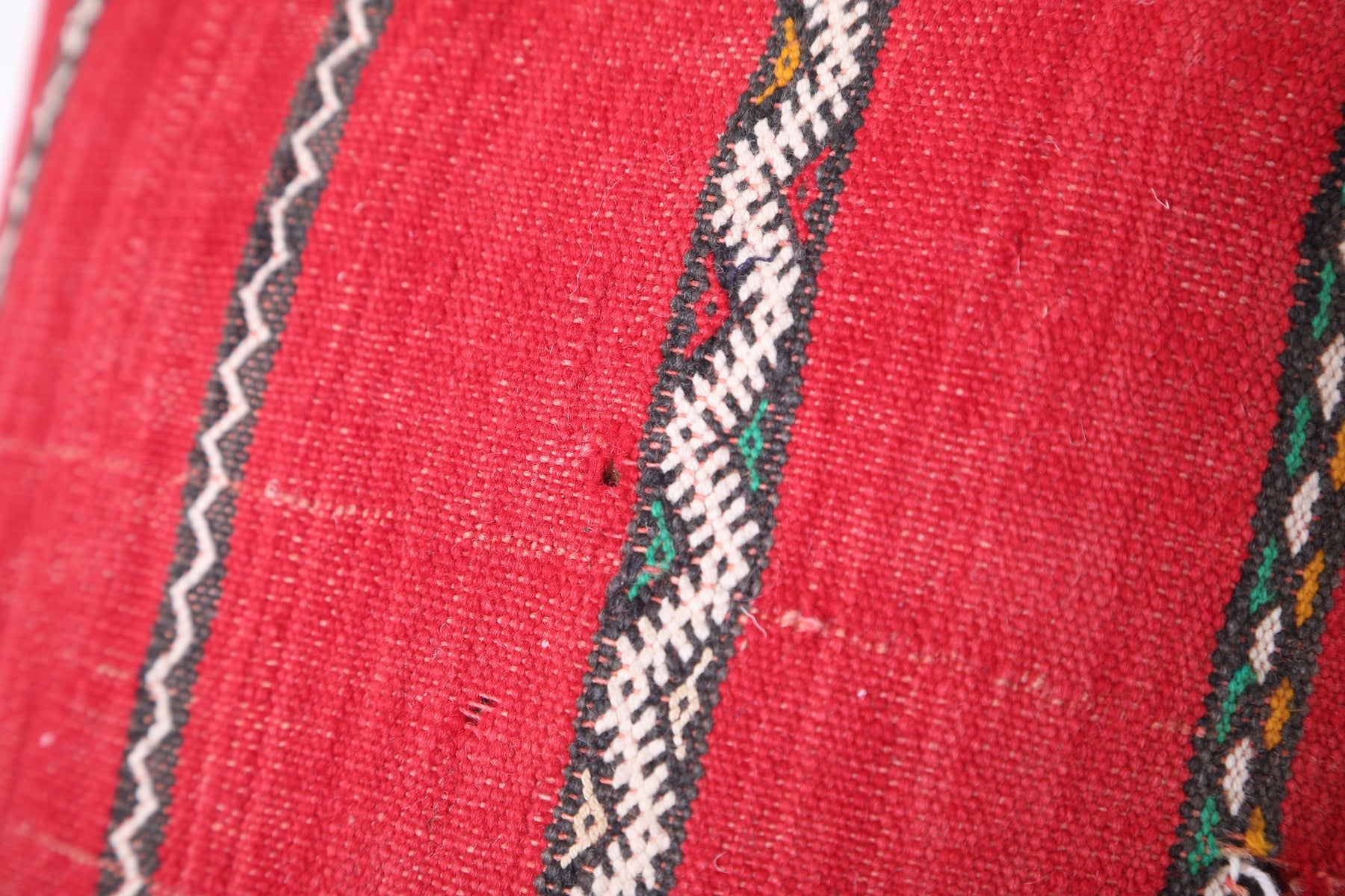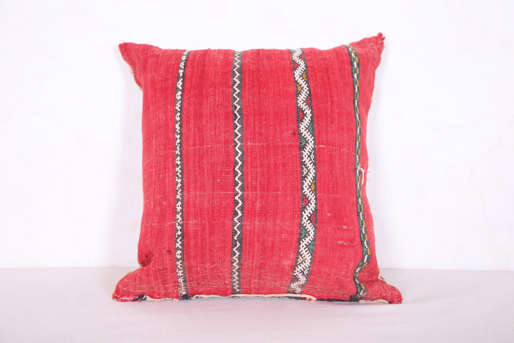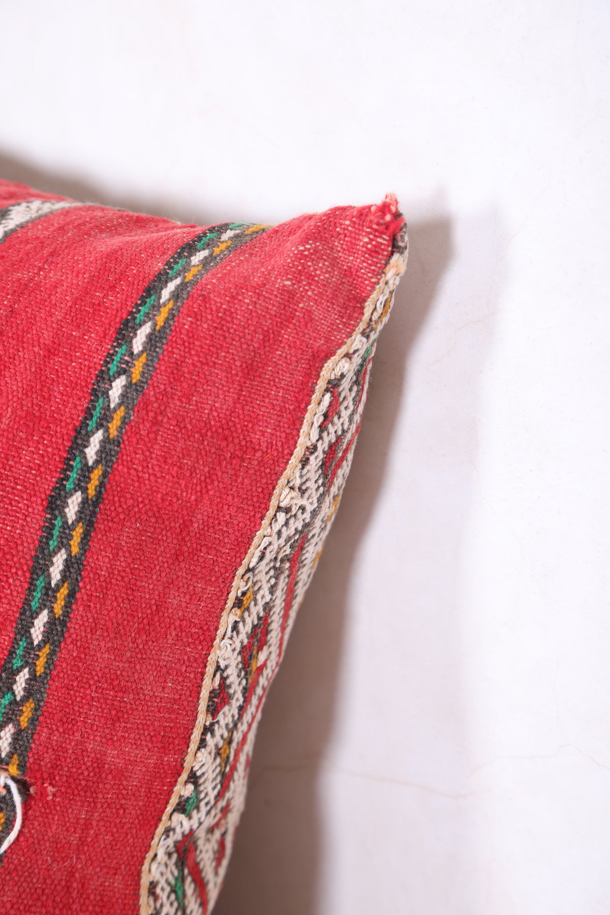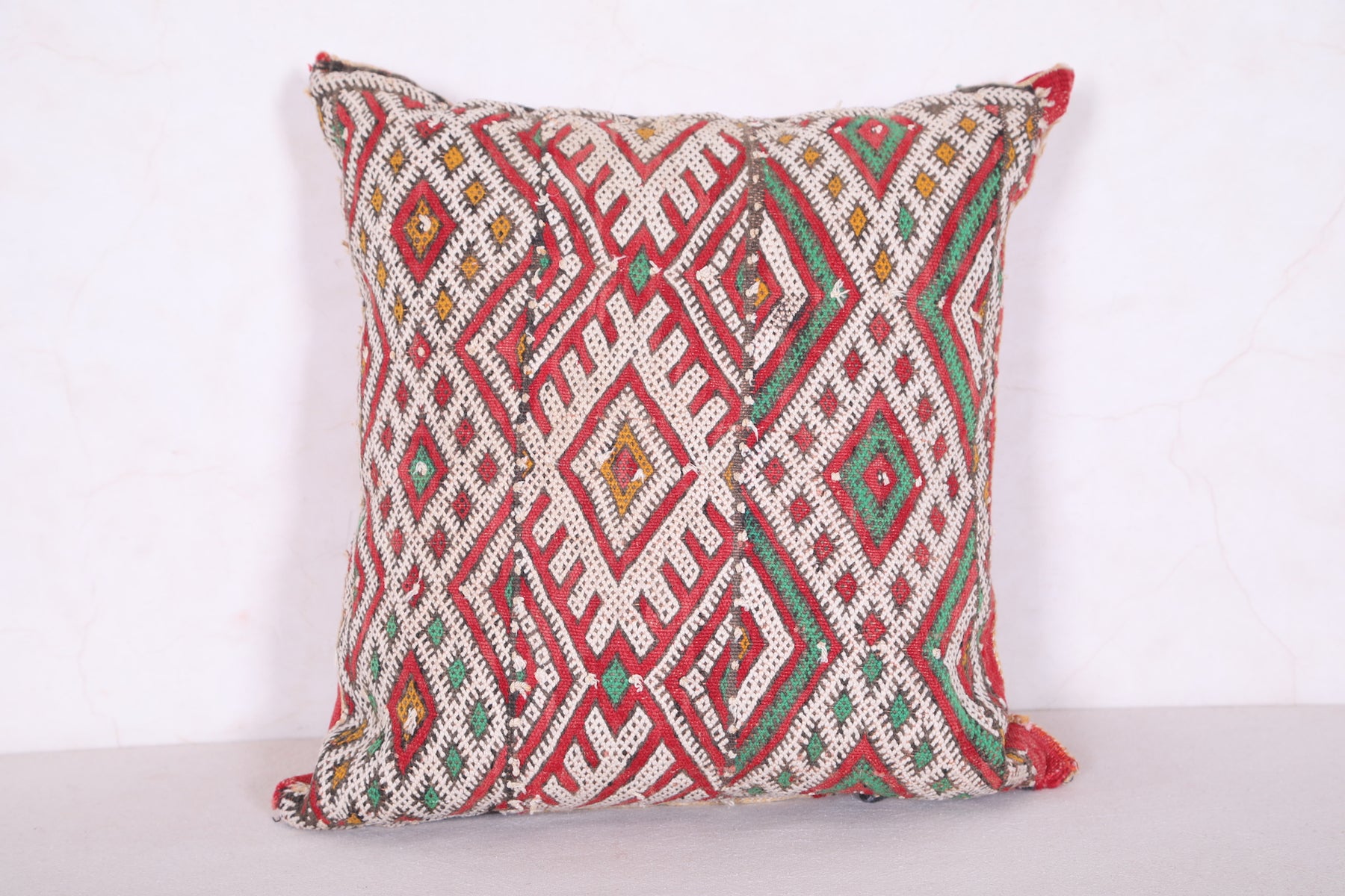 This 15.7 x 17.3 inches Moroccan Pillow Cover bursts with geometric artistry in bold red, green, white, and yellow—handwoven with intricate detail to bring texture and personality to any space. A perfect accent for eclectic, boho, or global-inspired homes.