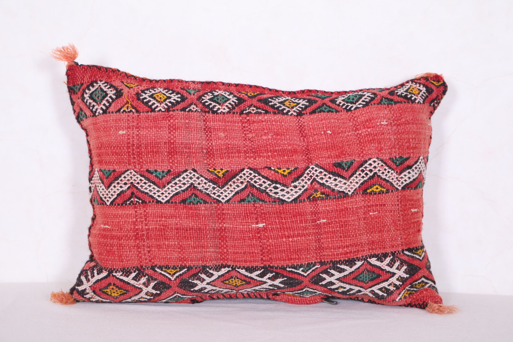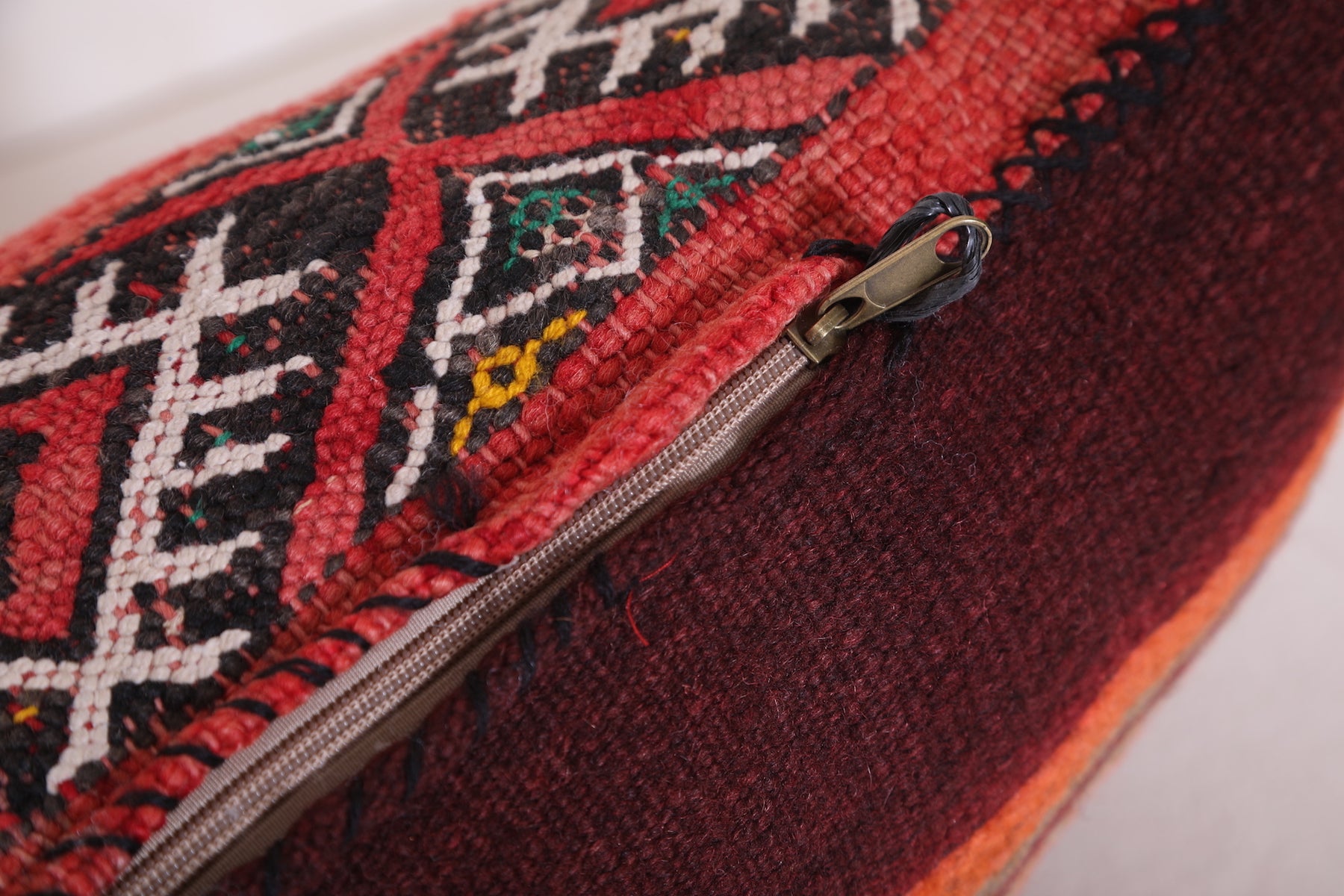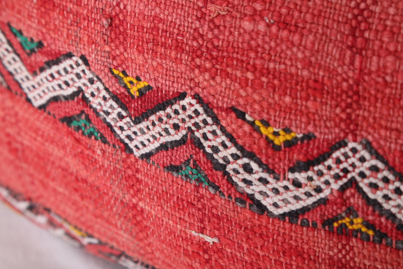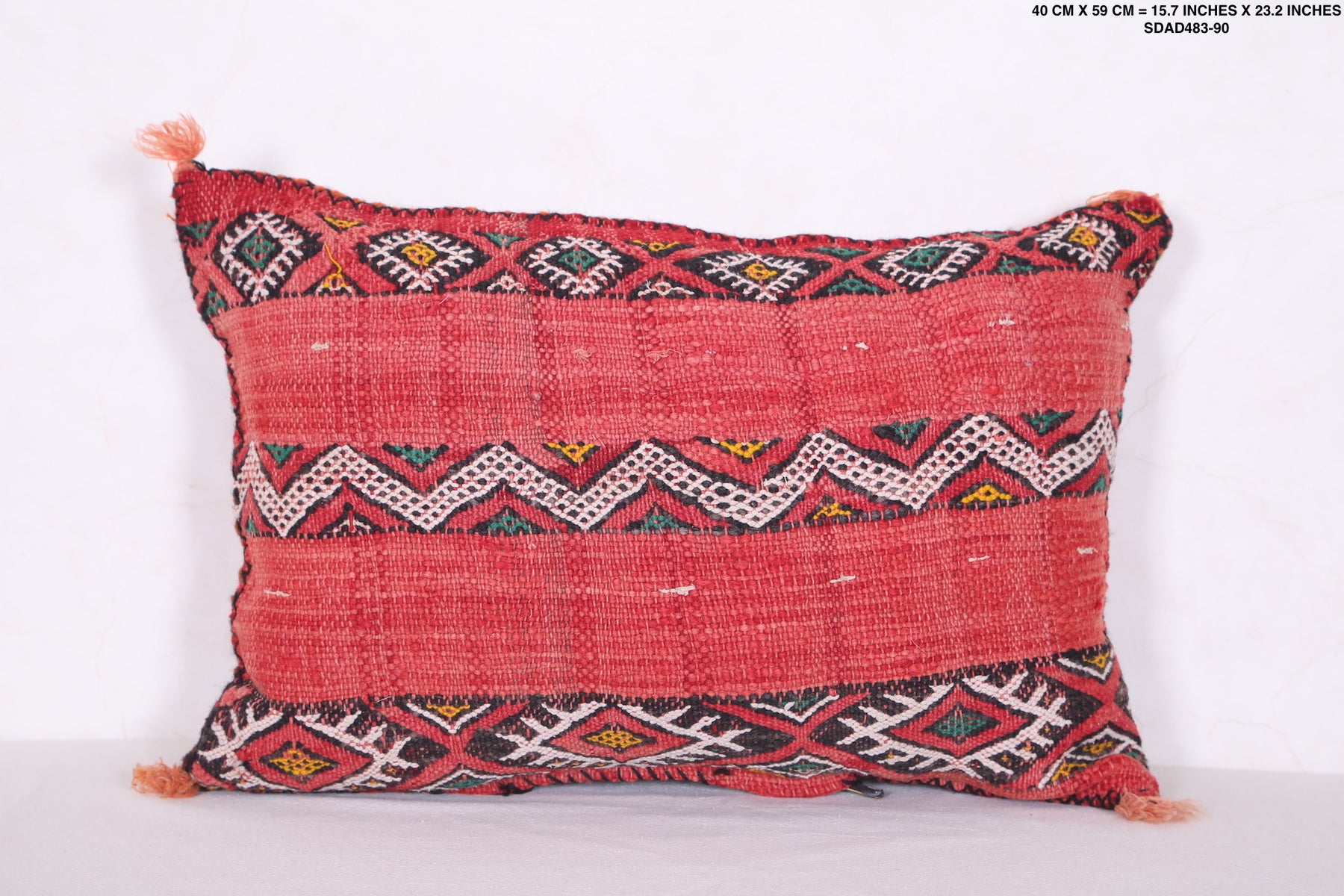 Add warmth and authentic Moroccan craftsmanship to your space with this handwoven Moroccan Pillow, sized at 15.7 x 23.2 inches (40 CM x 59 CM). Featuring intricate geometric bands in soft red with black and white accents, this pillow blends traditional design with timeless appeal. Perfect for sofas, beds, or benches, it adds texture and global charm to any setting.