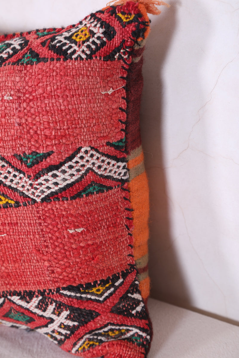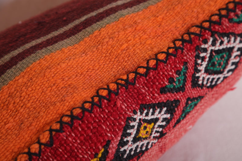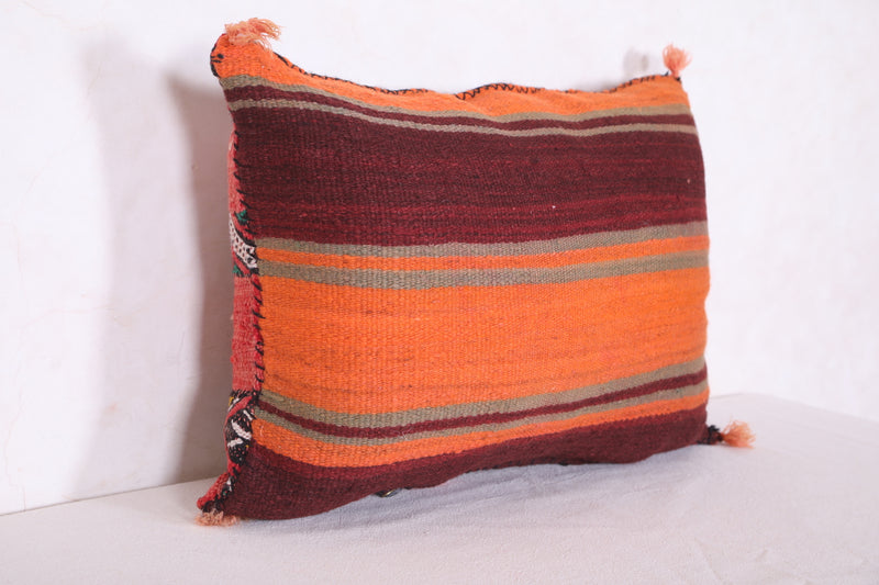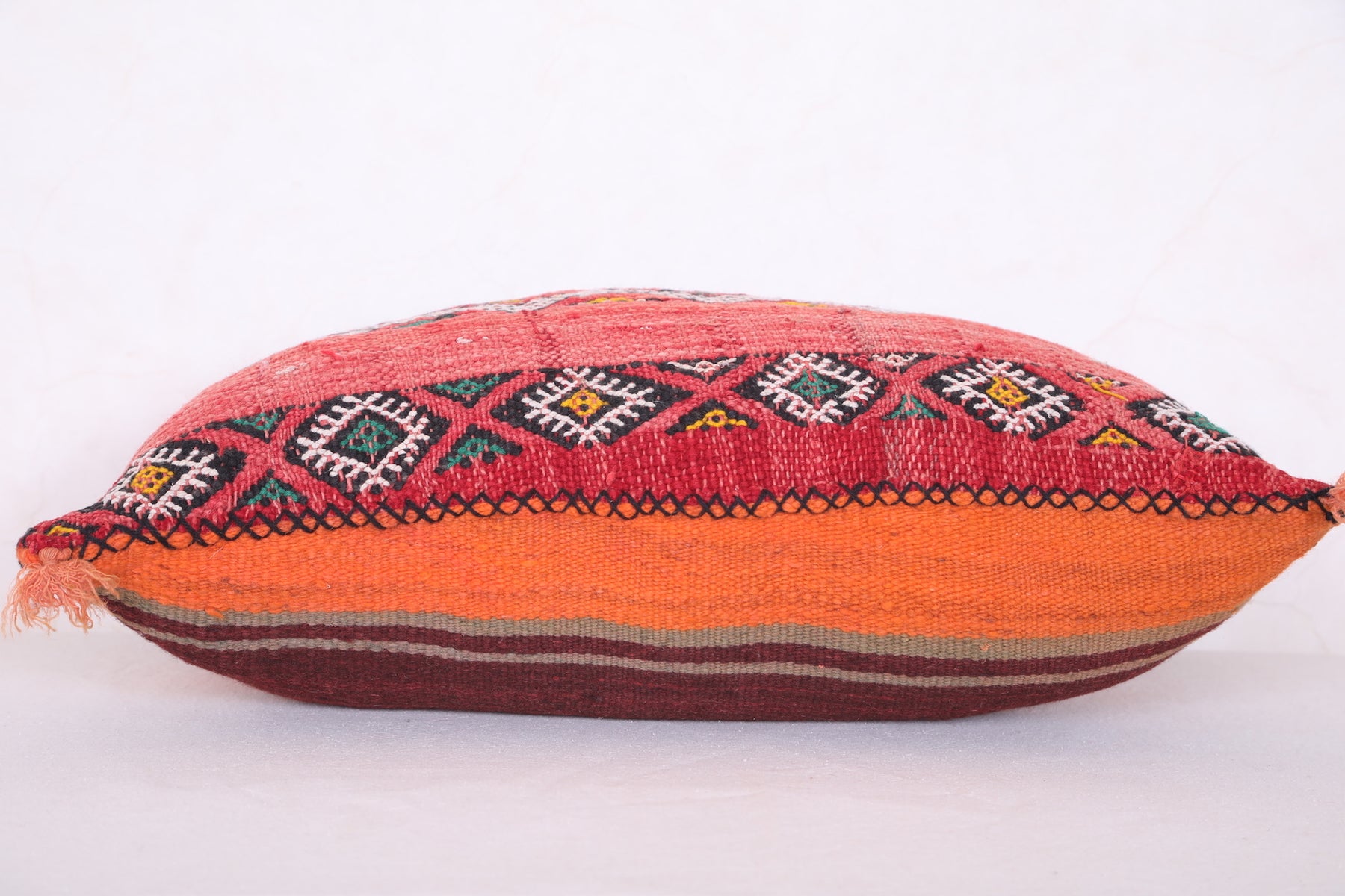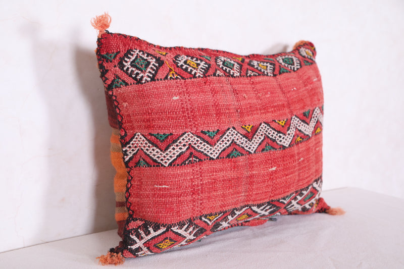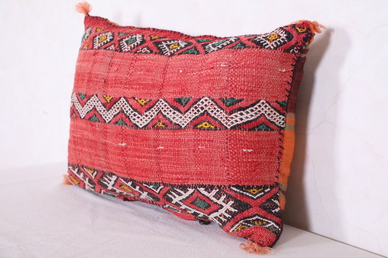 Add warmth and authentic Moroccan craftsmanship to your space with this handwoven Moroccan Pillow, sized at 15.7 x 23.2 inches (40 CM x 59 CM). Featuring intricate geometric bands in soft red with black and white accents, this pillow blends traditional design with timeless appeal. Perfect for sofas, beds, or benches, it adds texture and global charm to any setting.