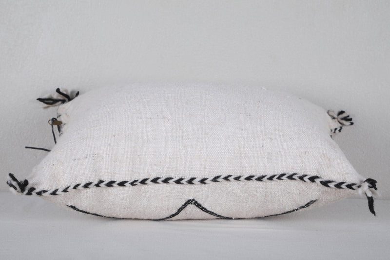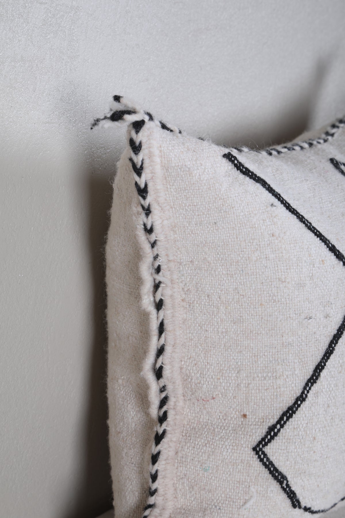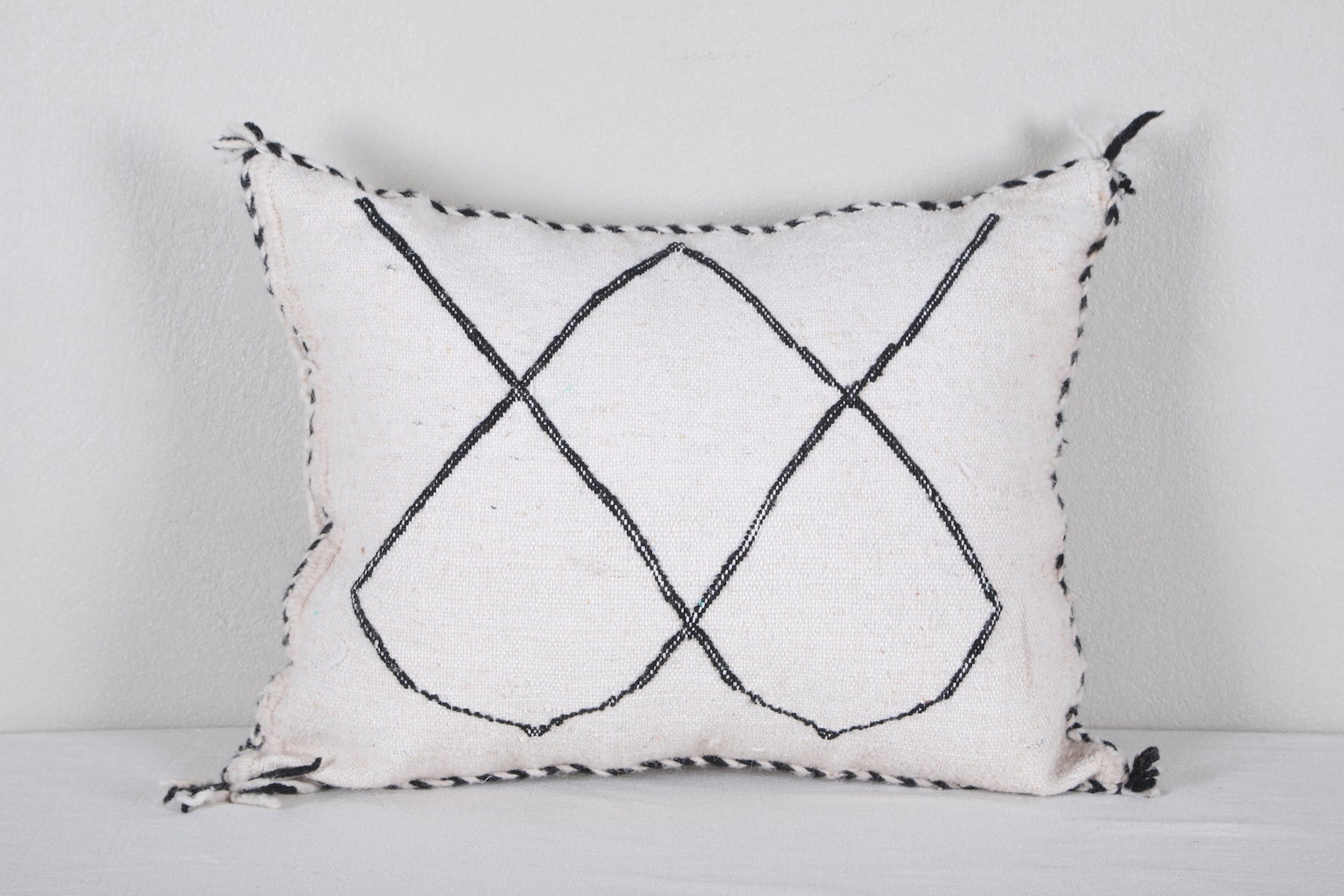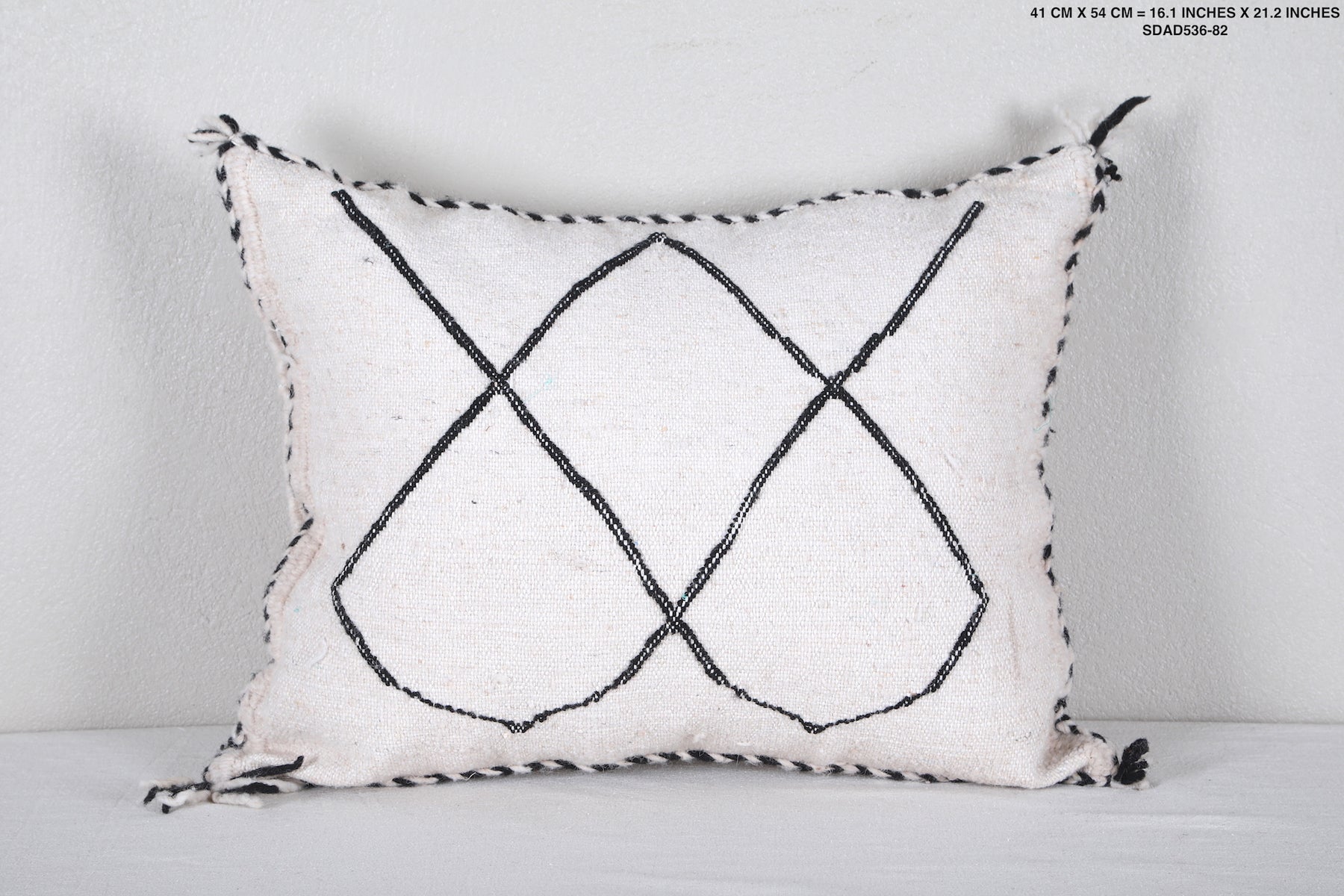 Add timeless elegance and handcrafted charm to your space with this handwoven Moroccan Pillow, sized at 16.1 x 21.2 inches (41 CM x 54 CM). Designed with minimalist black diamond embroidery on a soft ivory background, this pillow brings a touch of understated luxury to any décor, blending effortlessly with both modern and bohemian styles.