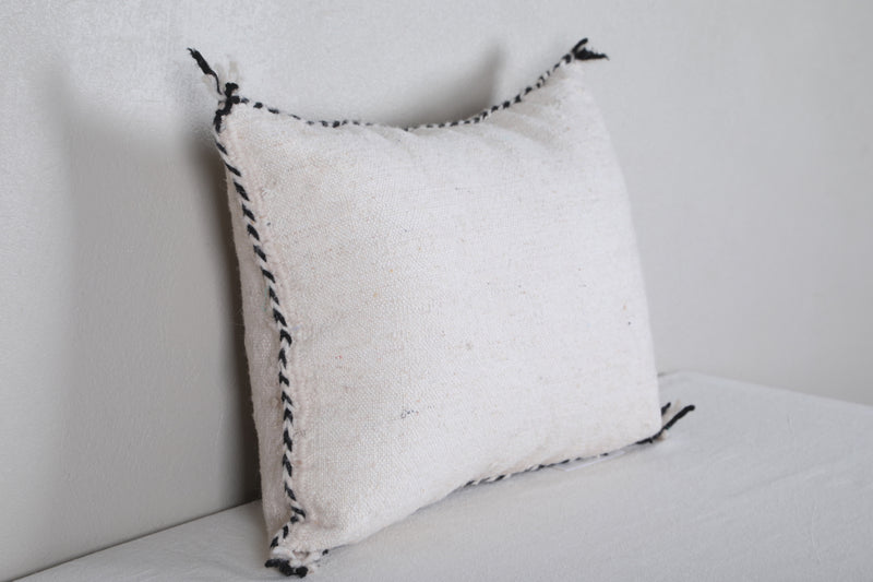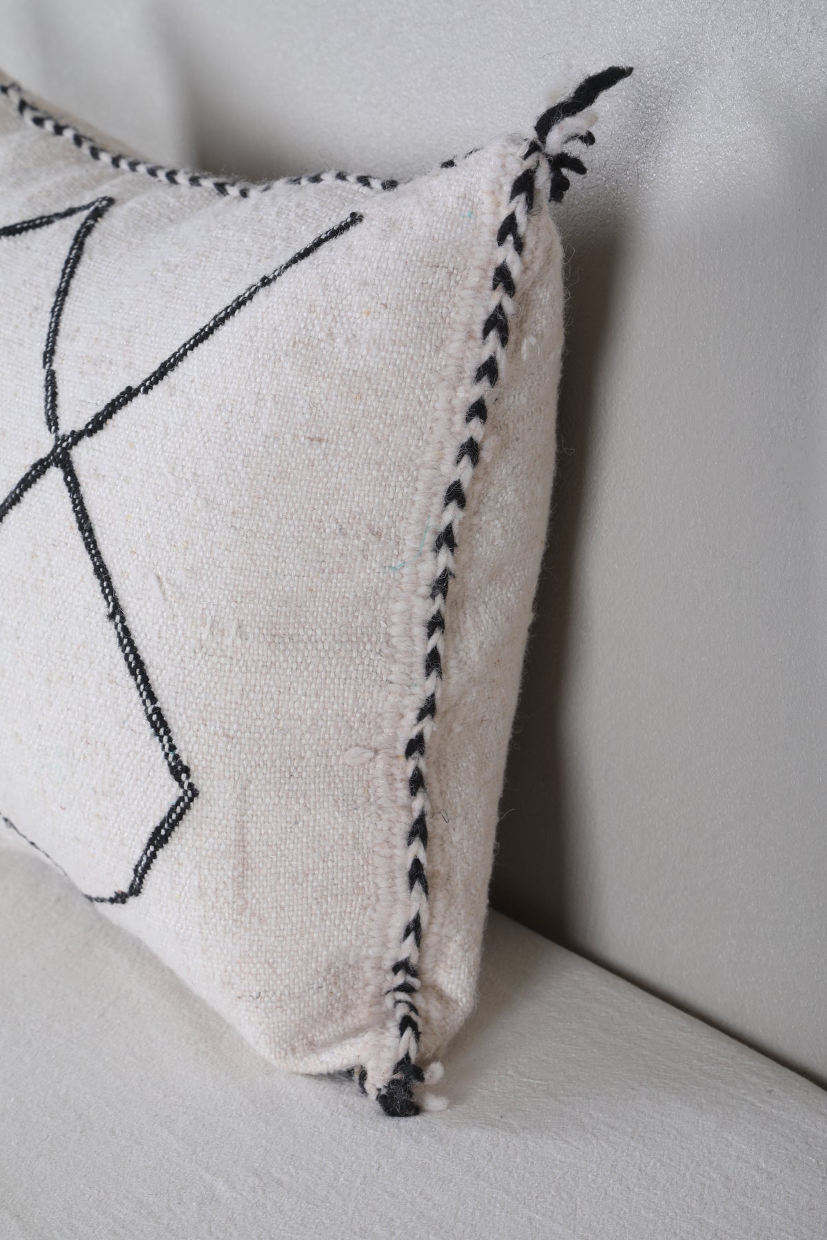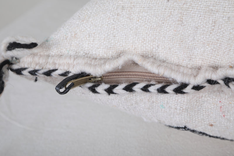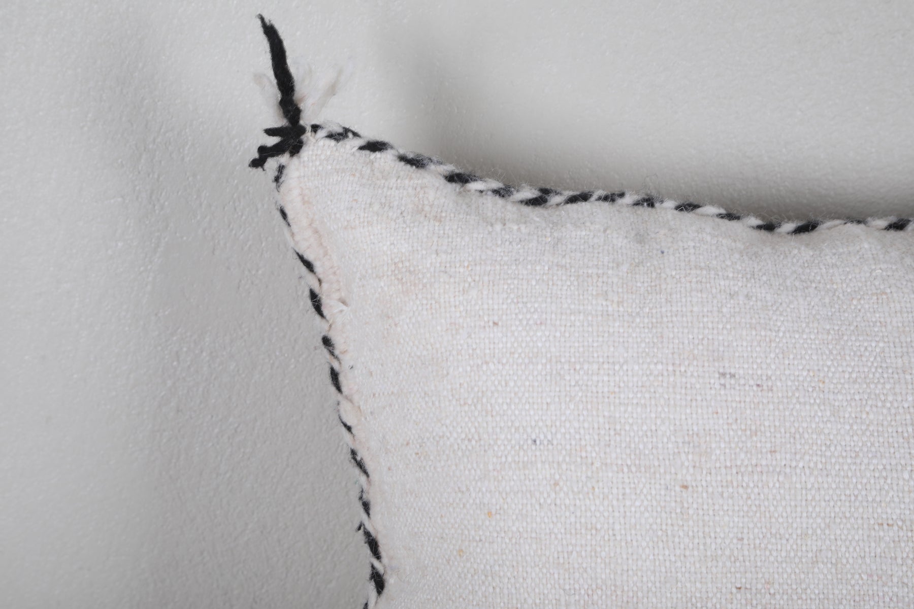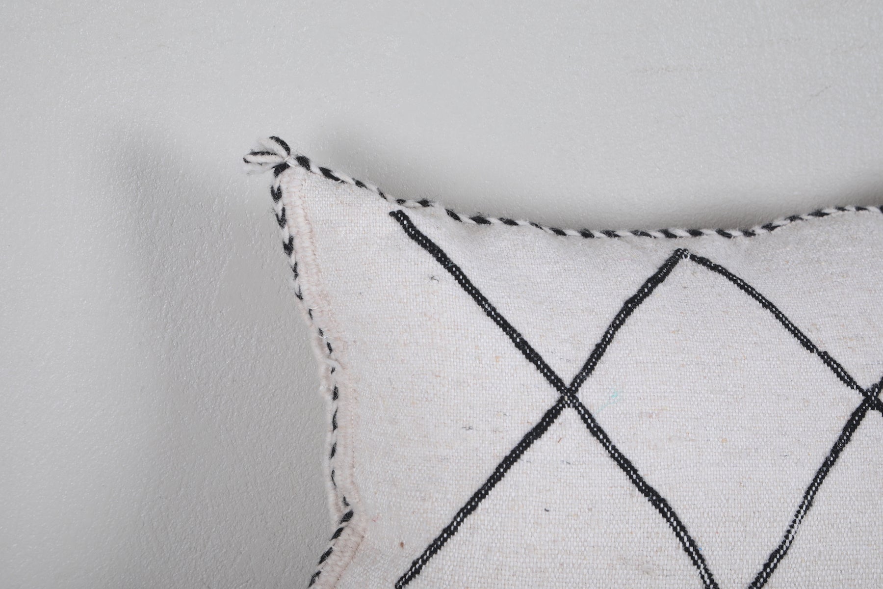 Add timeless elegance and handcrafted charm to your space with this handwoven Moroccan Pillow, sized at 16.1 x 21.2 inches (41 CM x 54 CM). Designed with minimalist black diamond embroidery on a soft ivory background, this pillow brings a touch of understated luxury to any décor, blending effortlessly with both modern and bohemian styles.