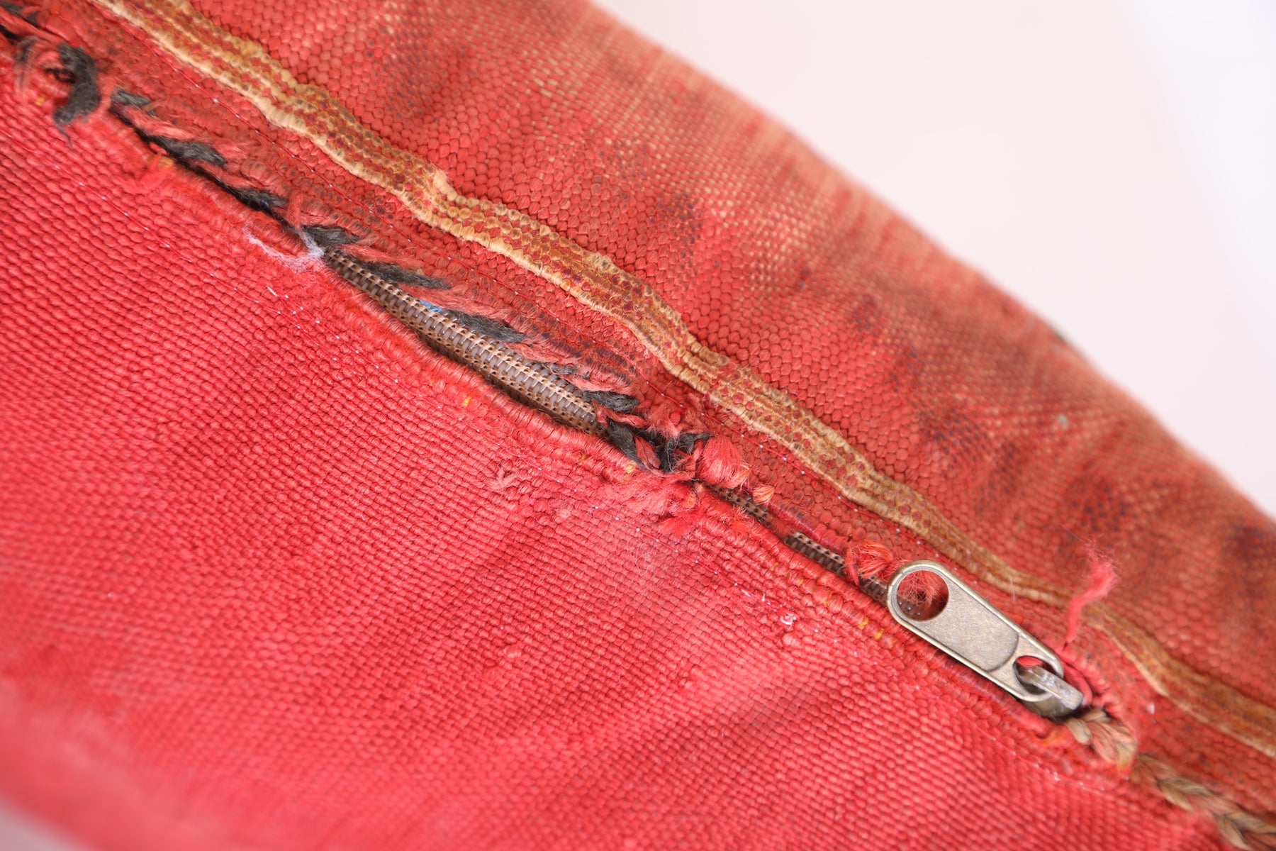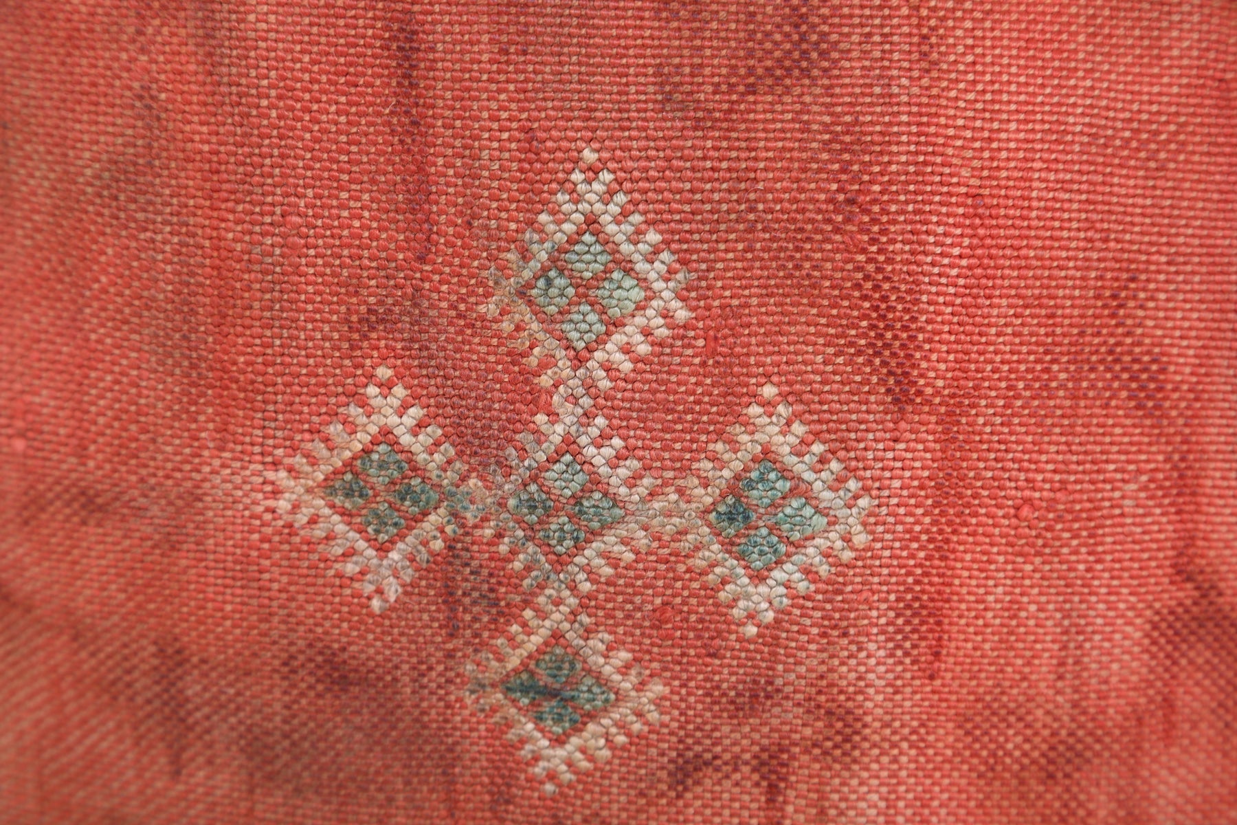 Enhance your home with the rustic charm of this handcrafted striped Moroccan pillow, sized at 16.5 x 16.9 inches (42 CM x 43 CM). With its soft terracotta tones and subtle geometric embroidery, this pillow offers a beautiful balance of tradition and style.