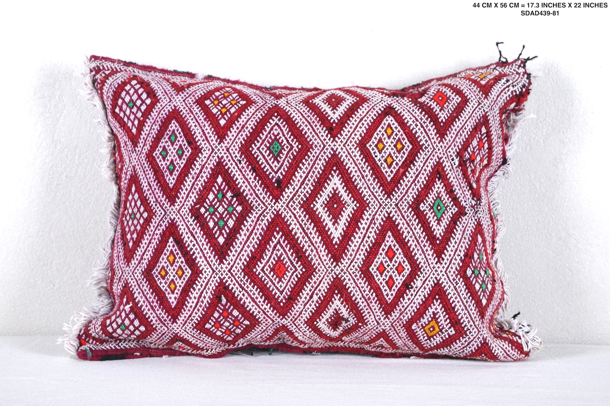 Add a bold touch of Moroccan craftsmanship to your home with this handwoven Moroccan Pillow, sized at 17.3 x 22 inches (44 CM x 56 CM). Featuring intricate red and white geometric patterns, this unique pillow blends traditional Berber artistry with timeless elegance. Perfect for layering on your sofa, bed, or favorite lounge chair, it adds authentic global charm to any space.