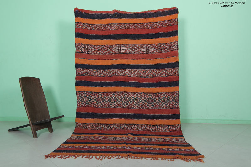 Vintage Moroccan Kilim Rug - 5.2 FT × 8.8 FT | Handwoven Heritage