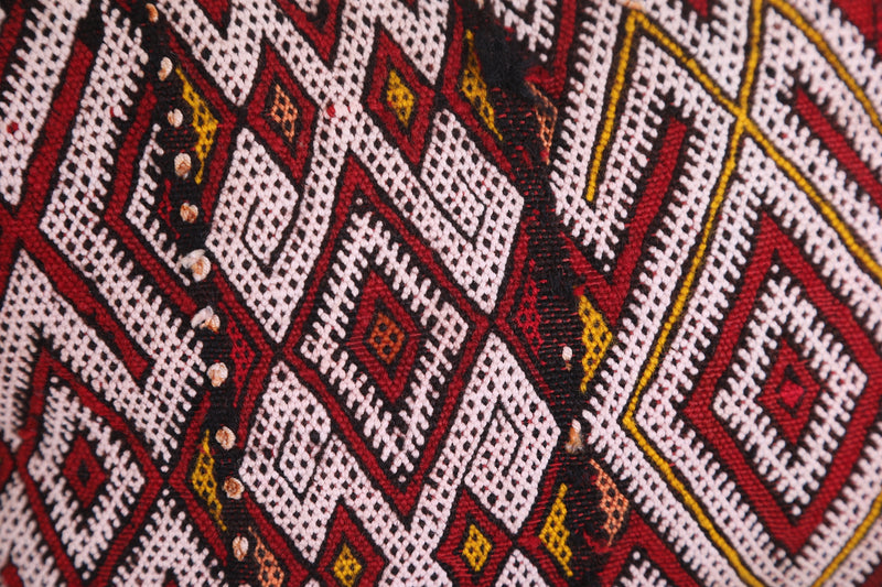 Crafted from high-quality natural wool and cotton, this pillow showcases the rich weaving traditions of Morocco. Each piece features intricate geometric and tribal patterns, highlighting bold reds, soft creams, and earthy browns—colors inspired by the landscapes and culture of North Africa. Since every pillow is handmade from vintage textiles, no two are exactly alike, giving your home a truly one-of-a-kind touch.