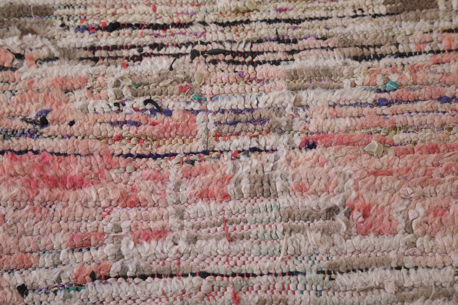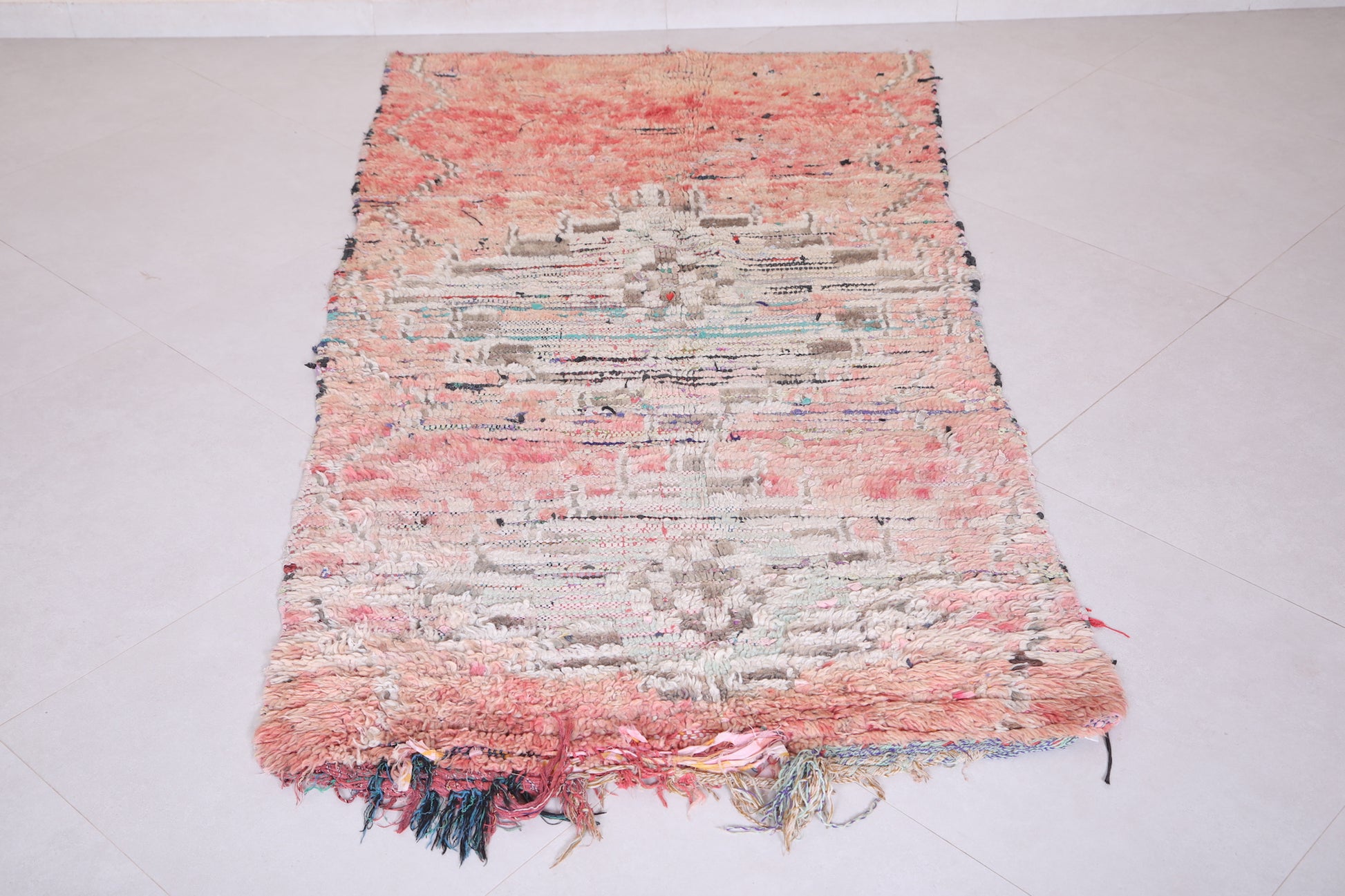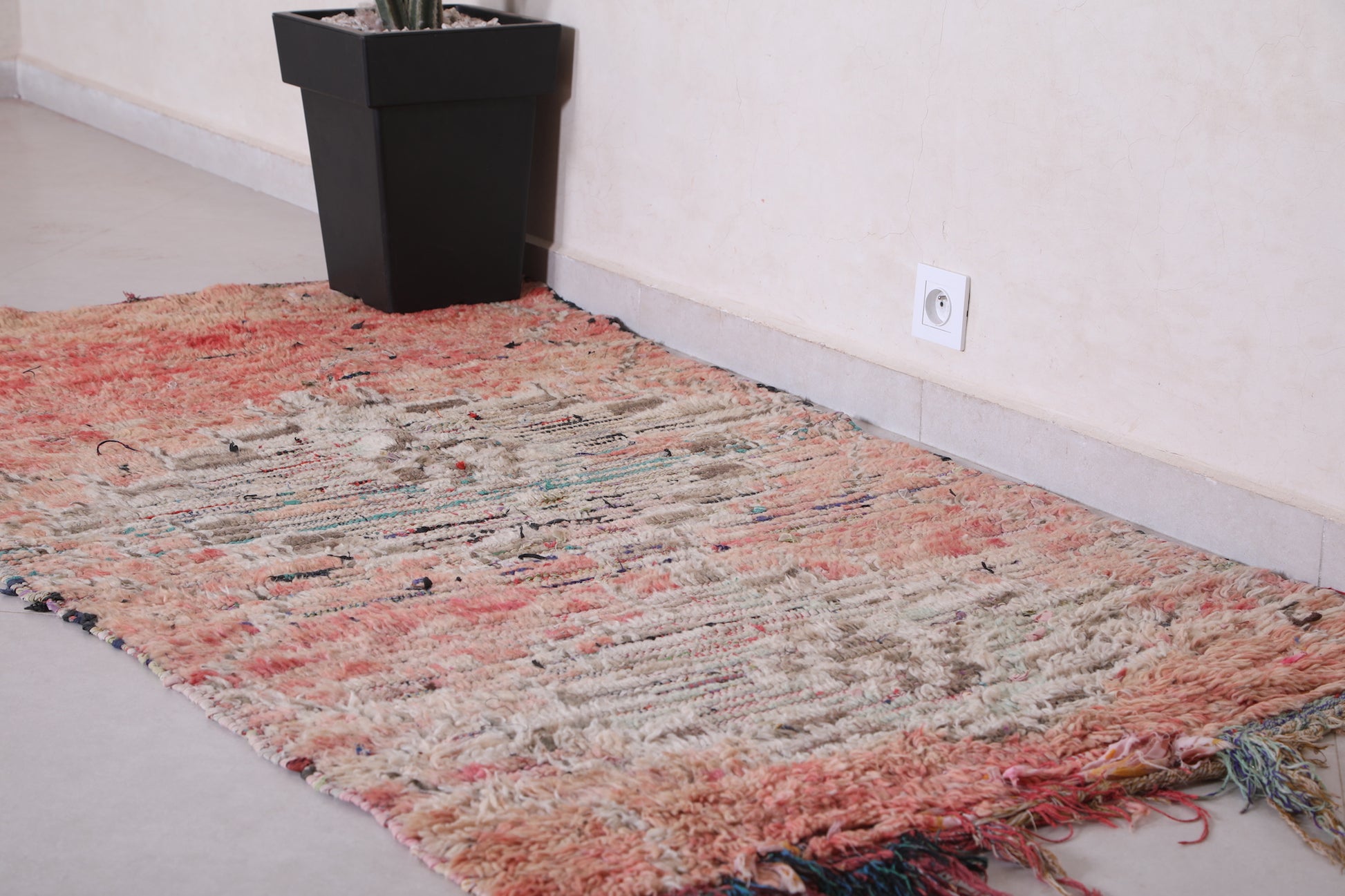 Bring character and history to your home with this Vintage Moroccan Rug, sized at 3.8 x 6.3 feet. Featuring a unique distressed design in muted tones of pink, beige, and black, this handwoven masterpiece embodies Moroccan heritage with its artistic patterns and aged charm. Perfect for entryways, reading nooks, or as a decorative accent, this rug tells a story while adding warmth and texture to any room.