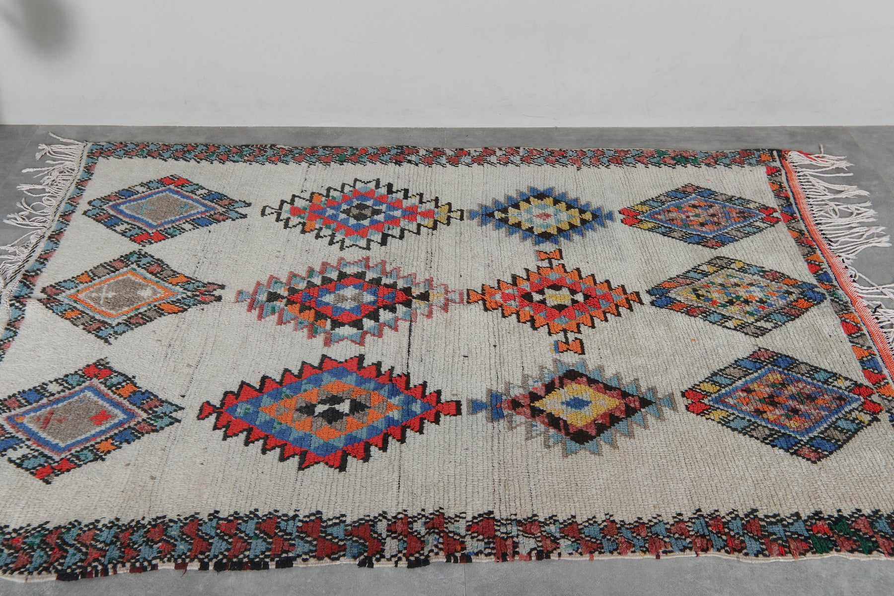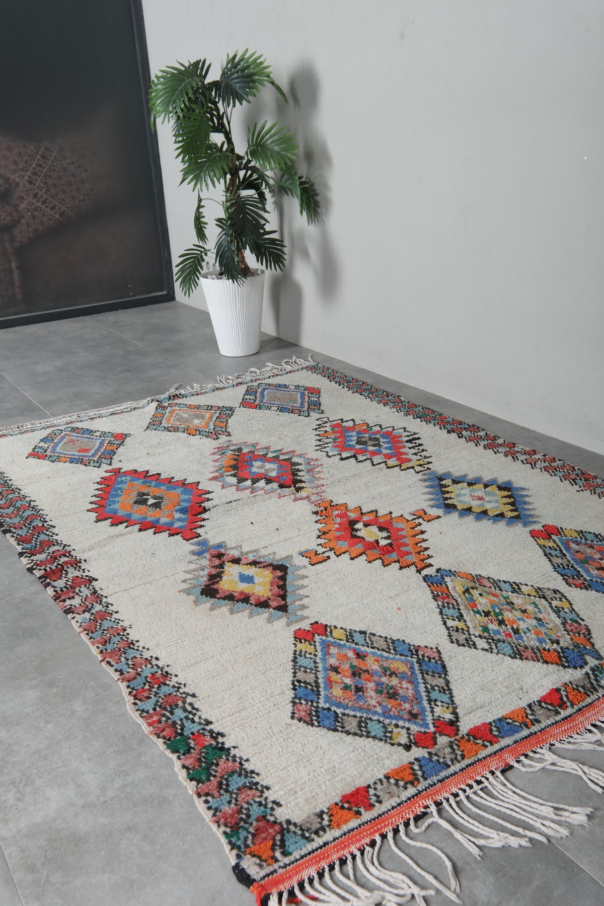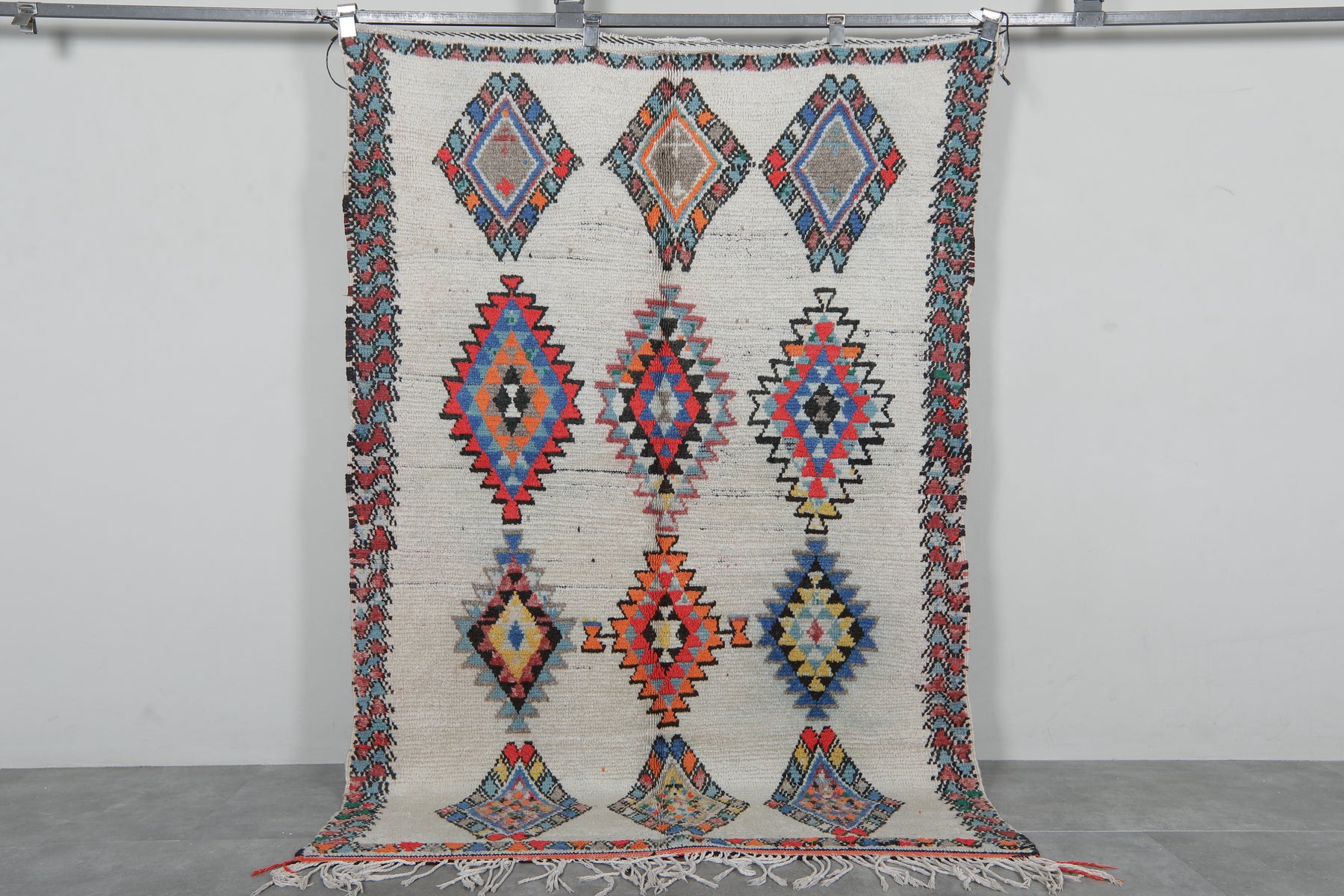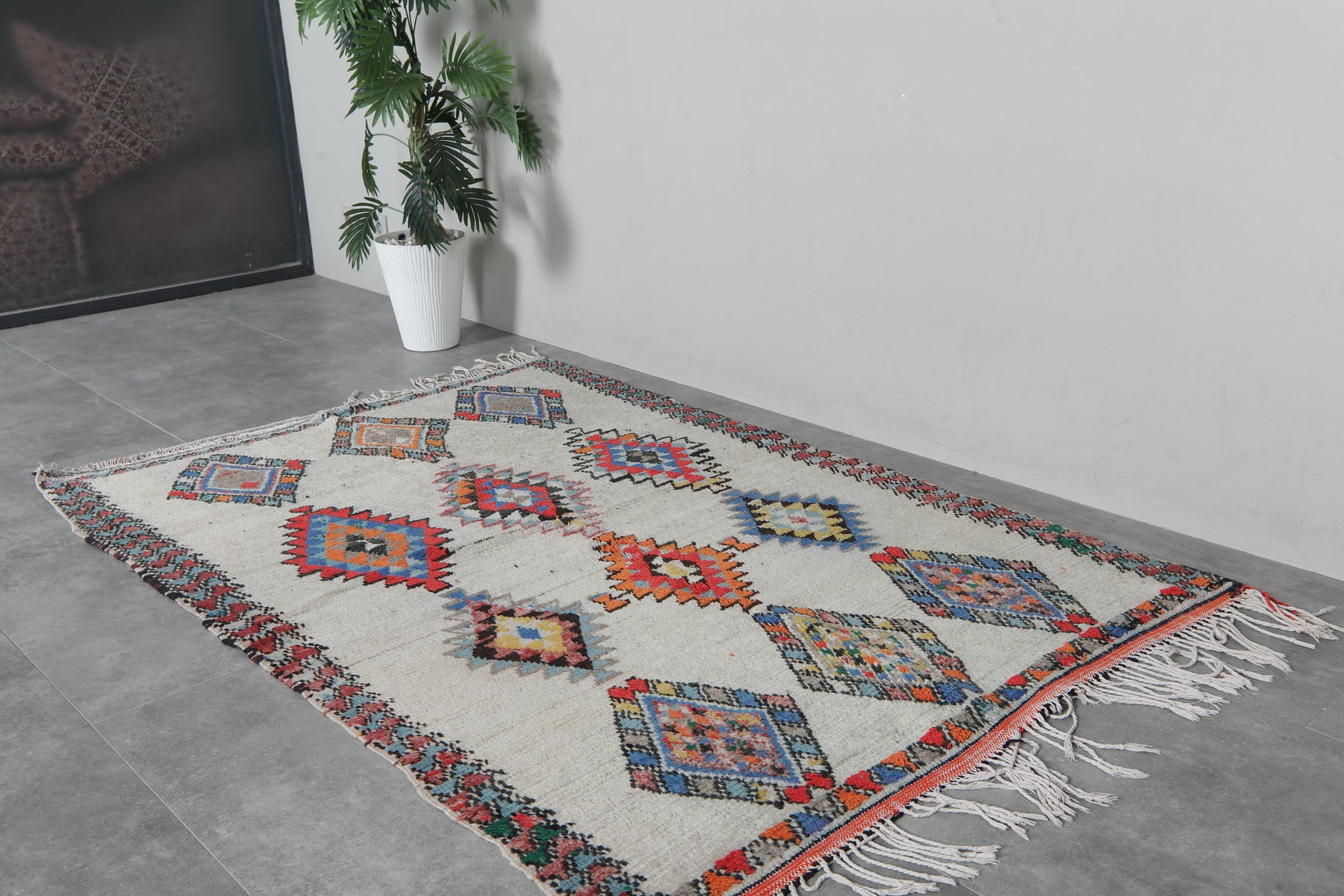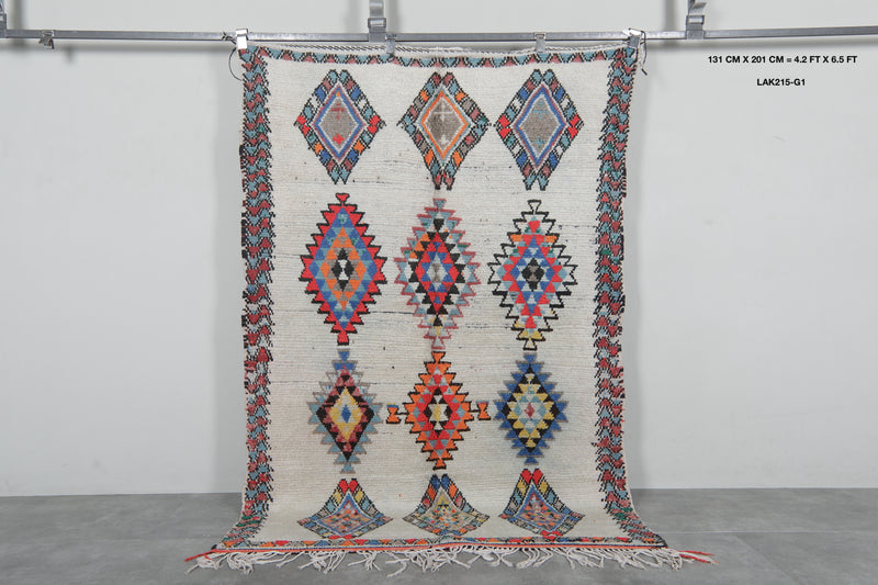 Experience the warmth and tradition of Morocco with our handcrafted Vintage Moroccan Rug. Made of 100% wool, this colorful rug boasts a stunning boho design that will enhance any decor. Measuring 4.2 x 6.5 feet, it's the perfect addition to your home for a touch of comfort and style.