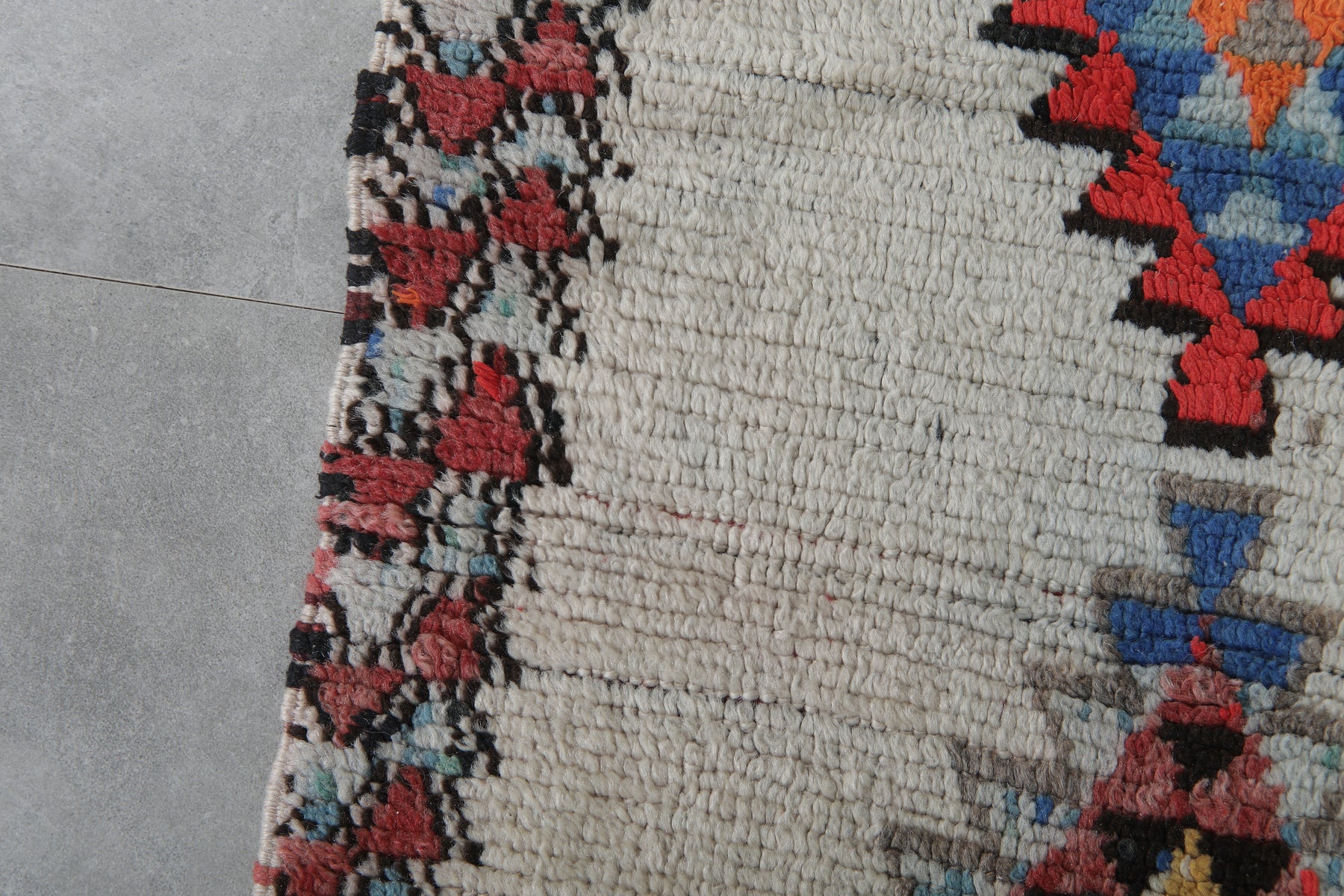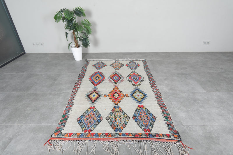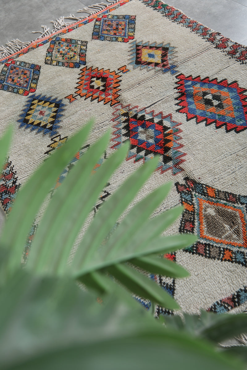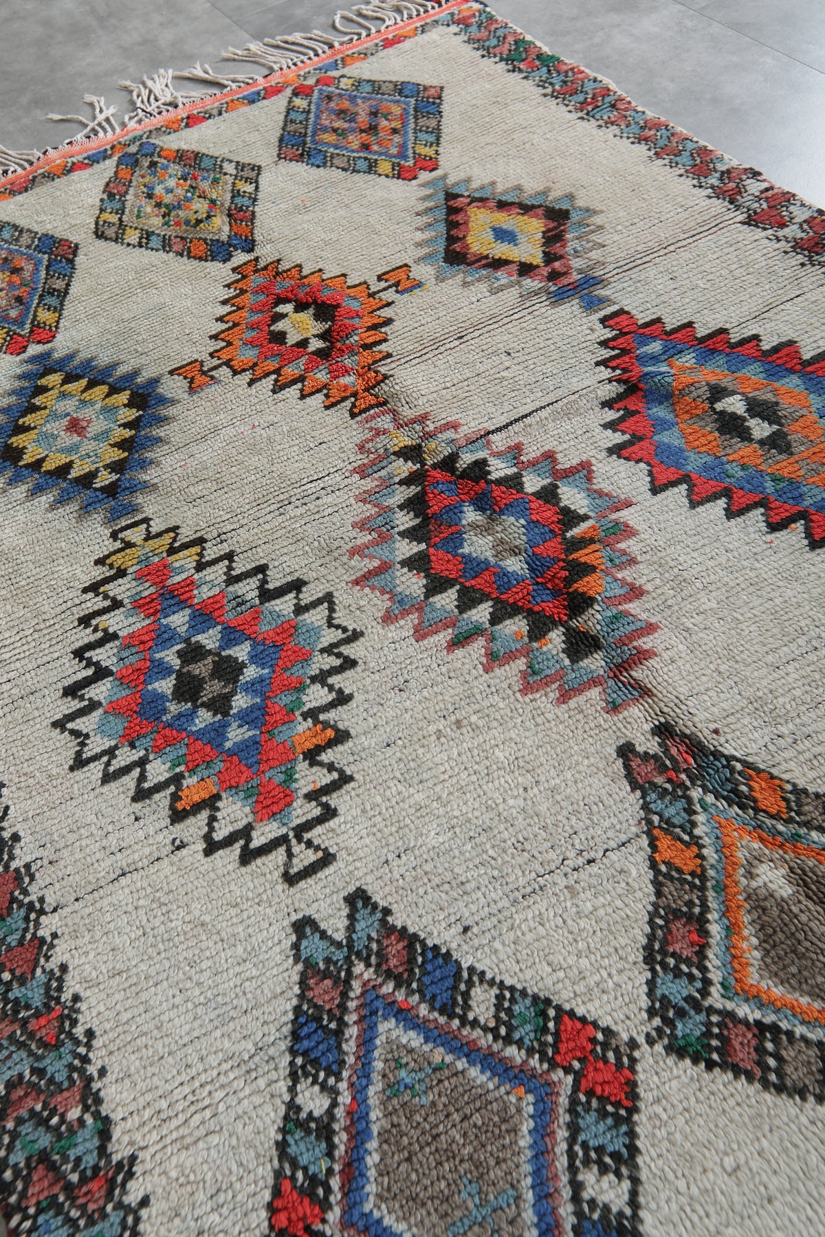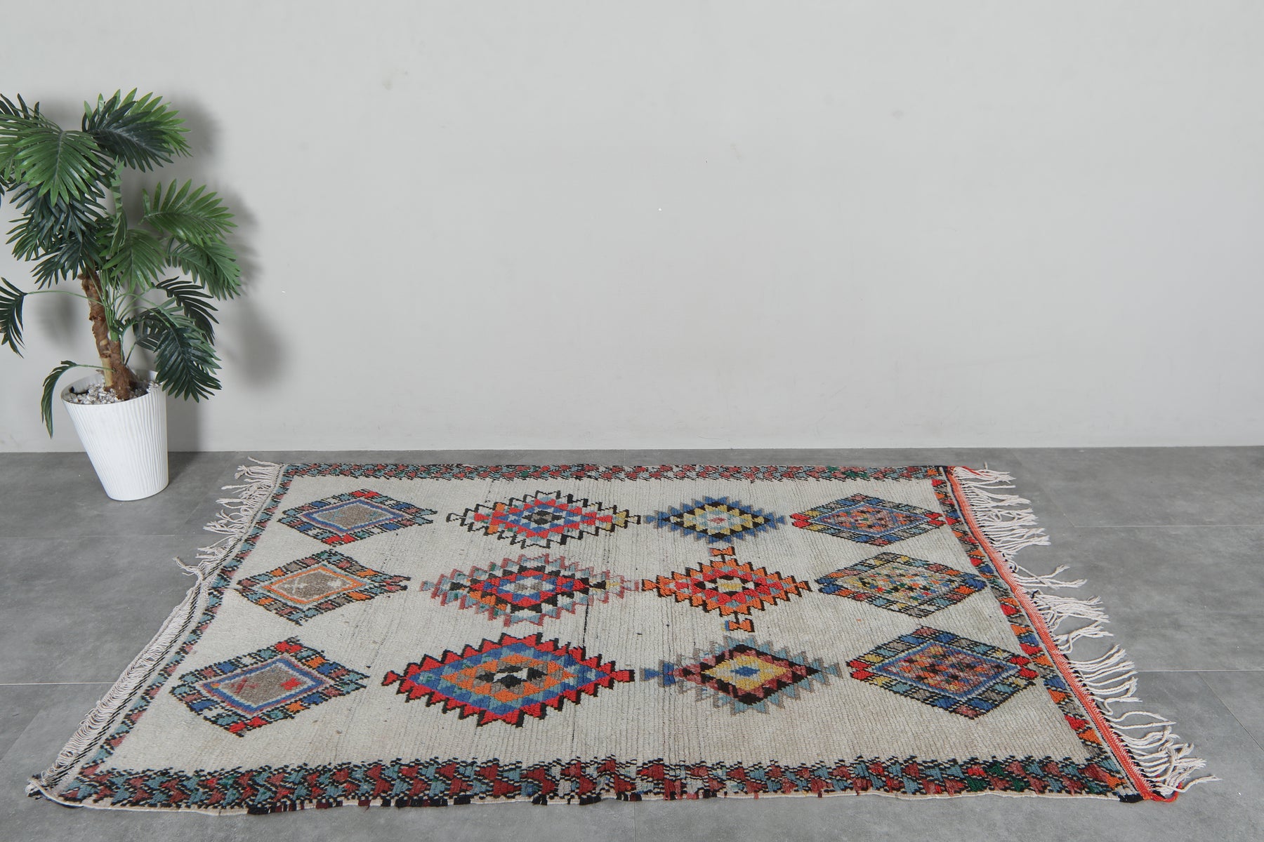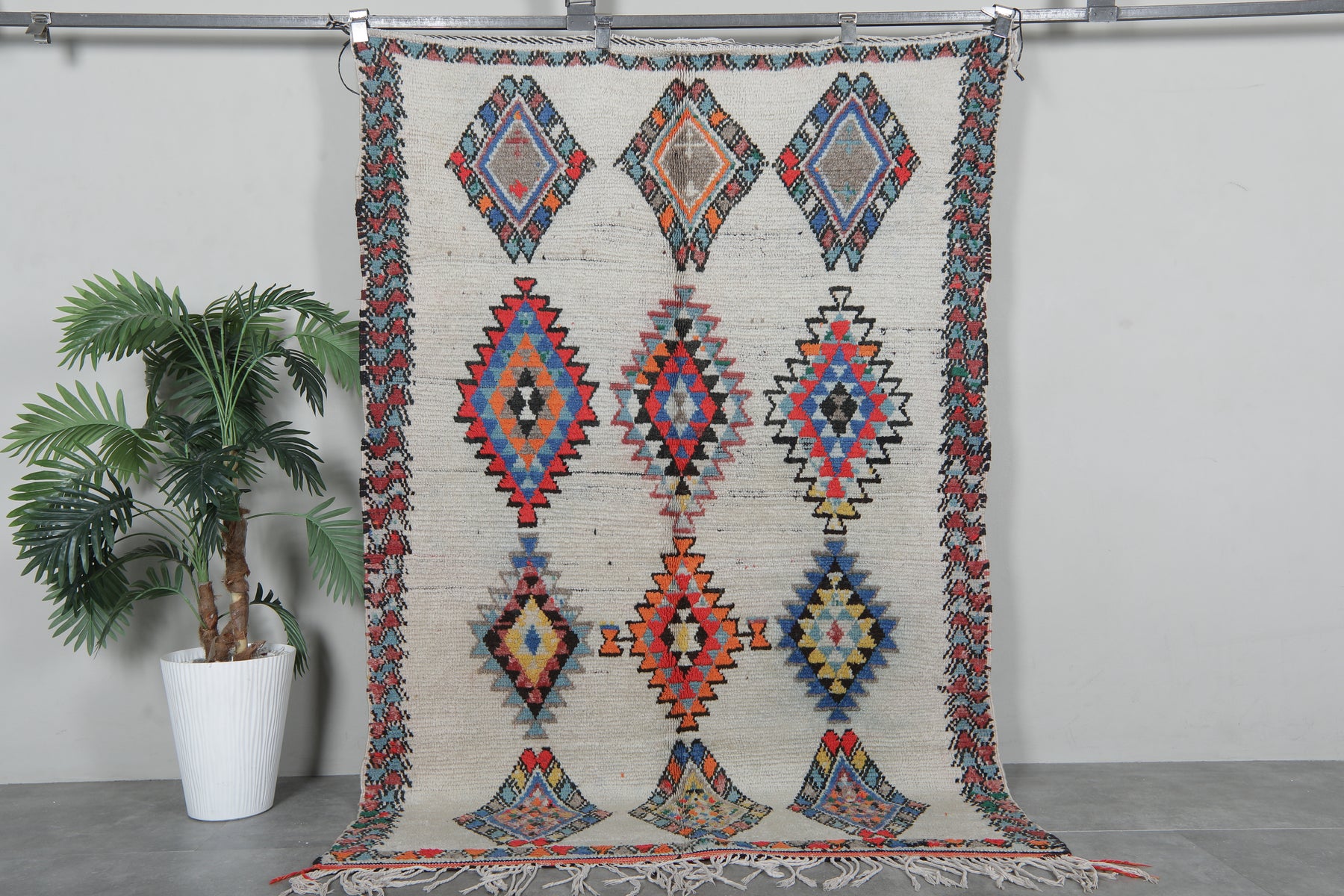 Experience the warmth and tradition of Morocco with our handcrafted Vintage Moroccan Rug. Made of 100% wool, this colorful rug boasts a stunning boho design that will enhance any decor. Measuring 4.2 x 6.5 feet, it's the perfect addition to your home for a touch of comfort and style.