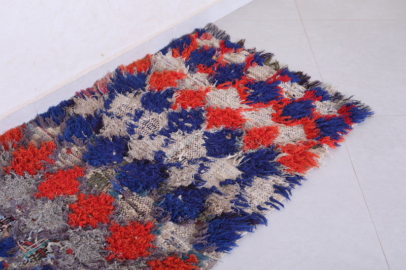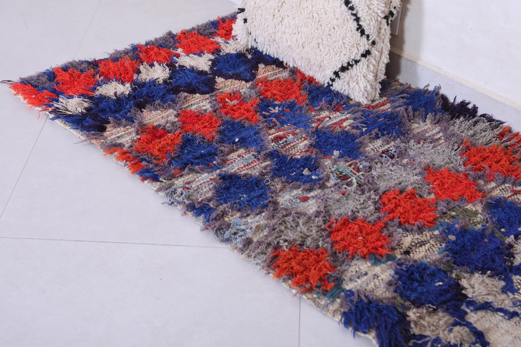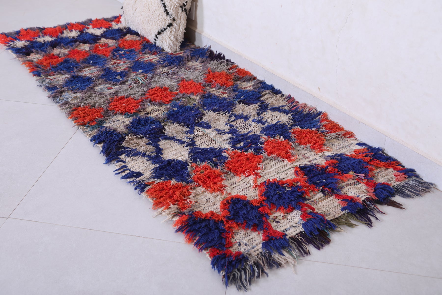 Add dynamic color and texture to your home with this Vintage Moroccan Rug Runner (2.5 x 6.1 FT), showcasing bold checkered diamonds in rich red, navy, and cream tones.
