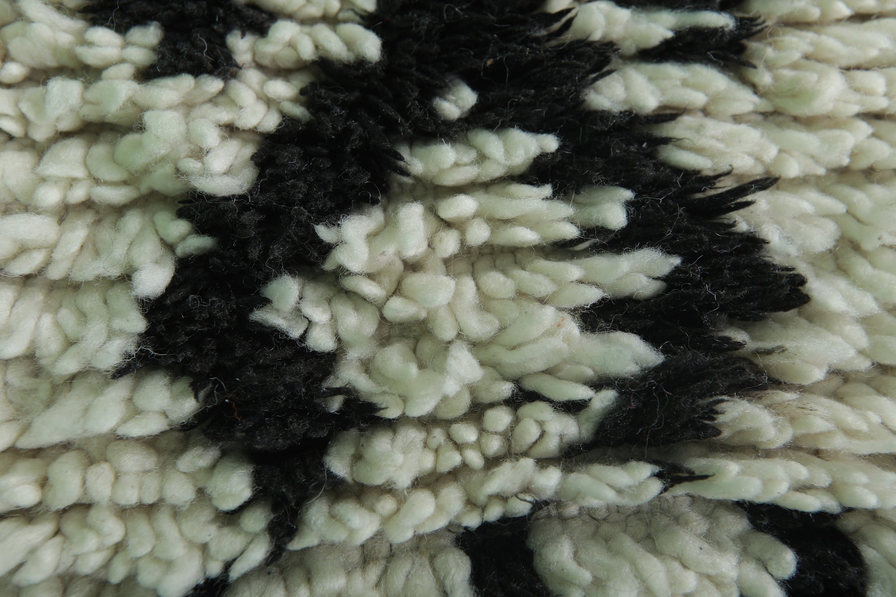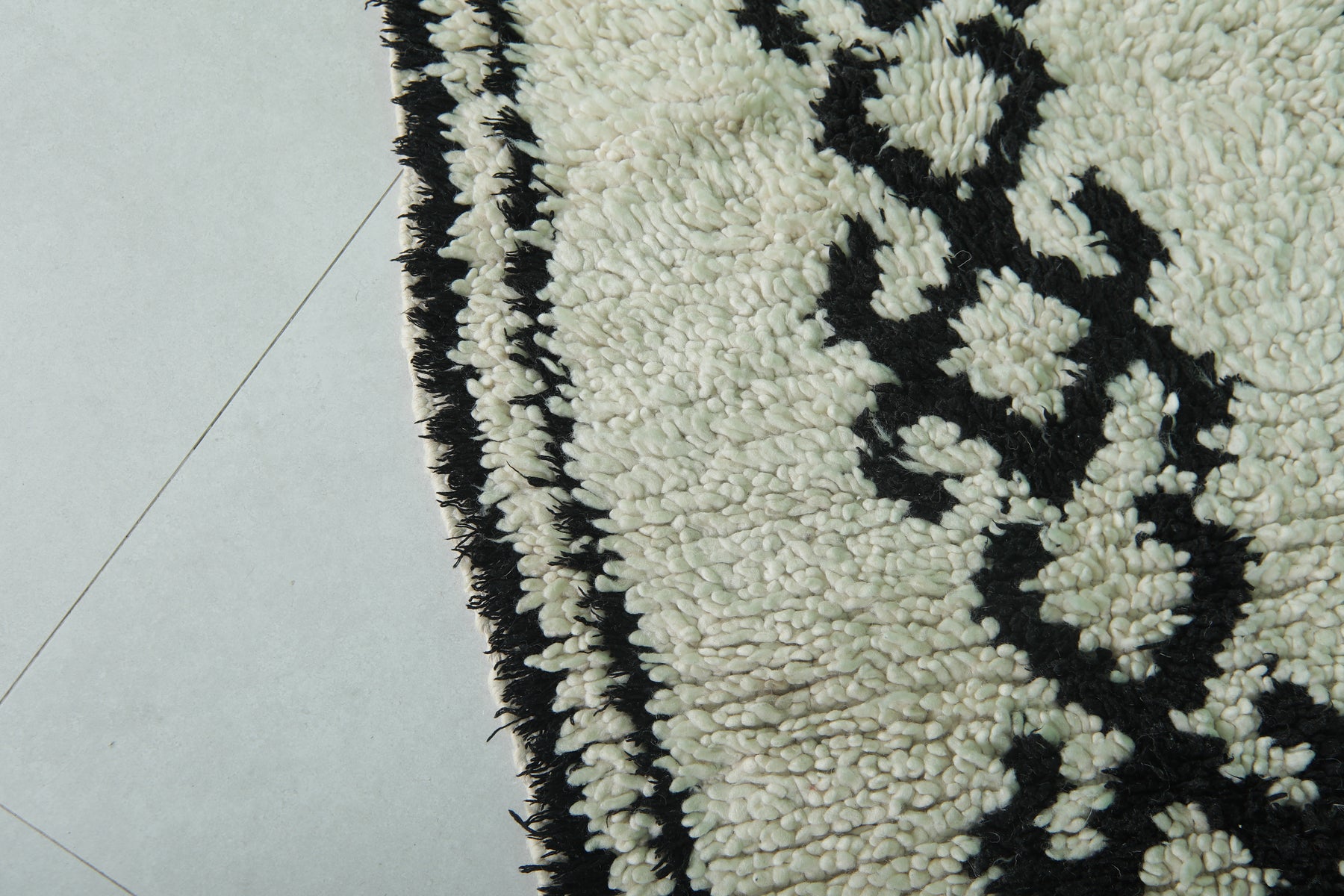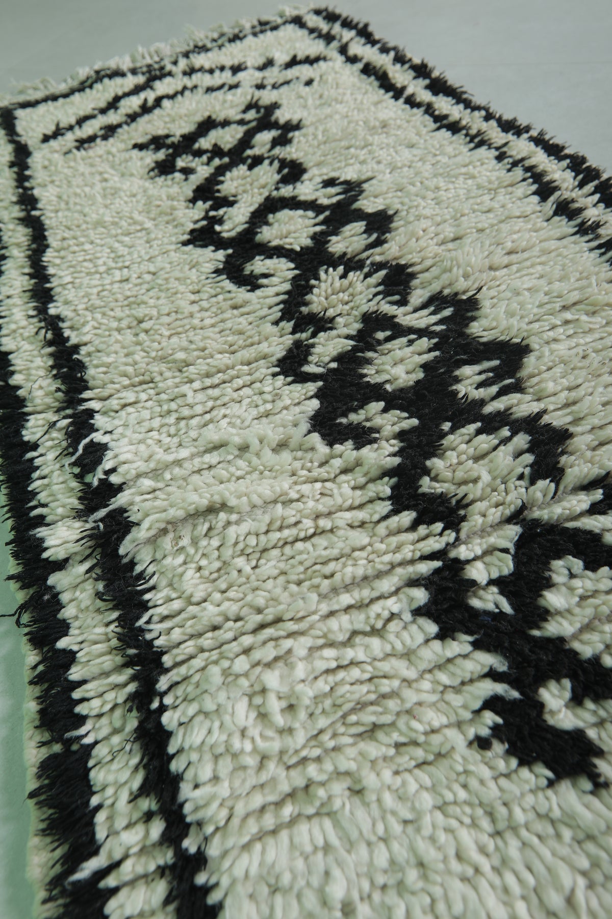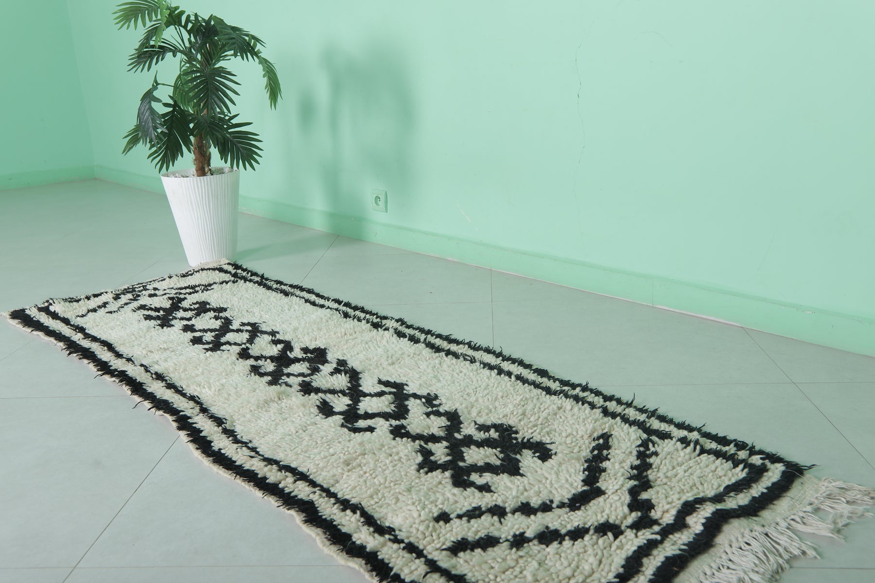 Bring timeless tradition to your hallway with this Vintage Moroccan Runner Rug (2.2 x 6.6 FT), showcasing bold black Berber motifs centered on a creamy ivory background.