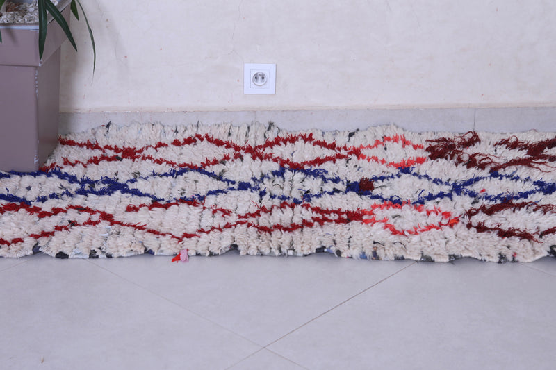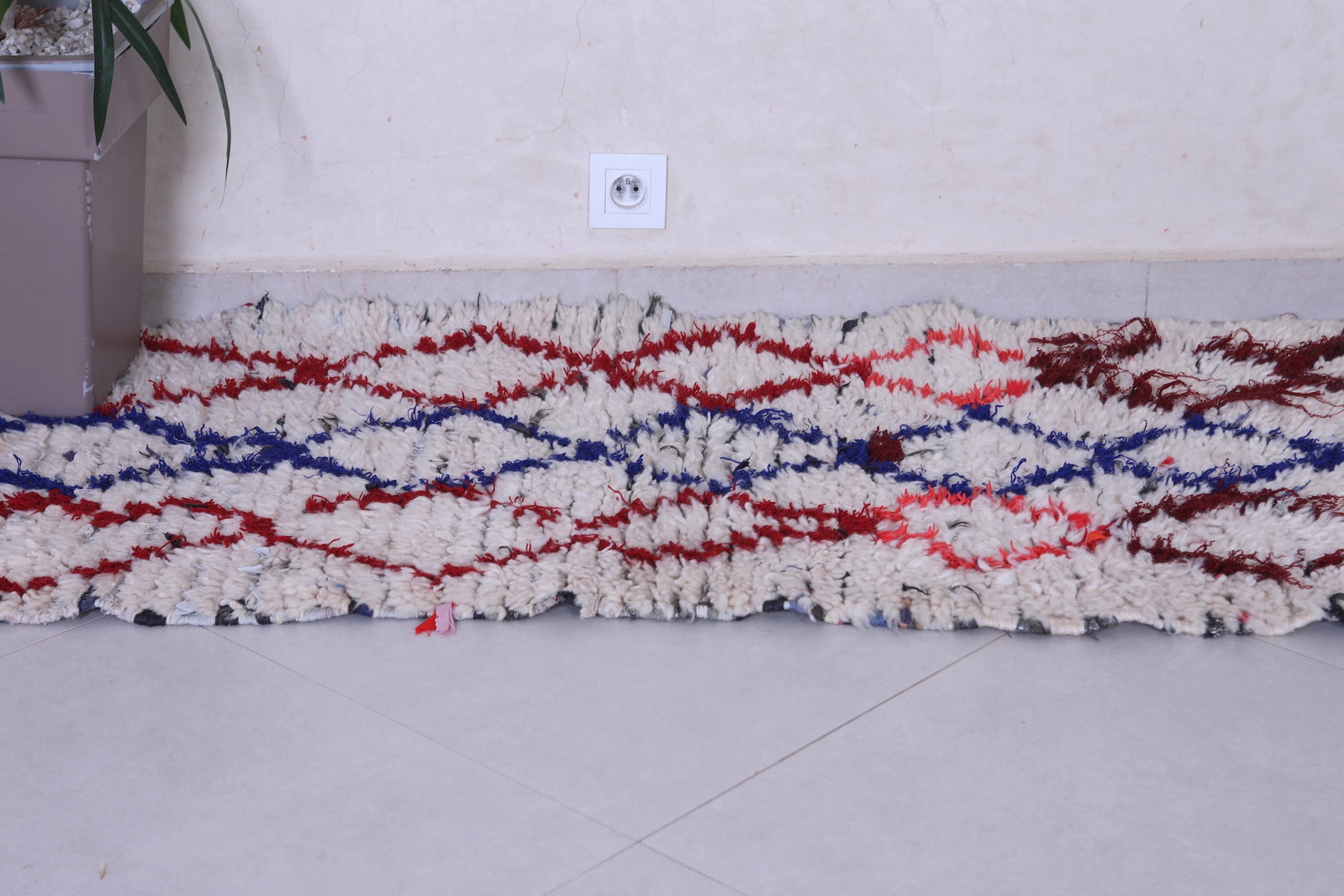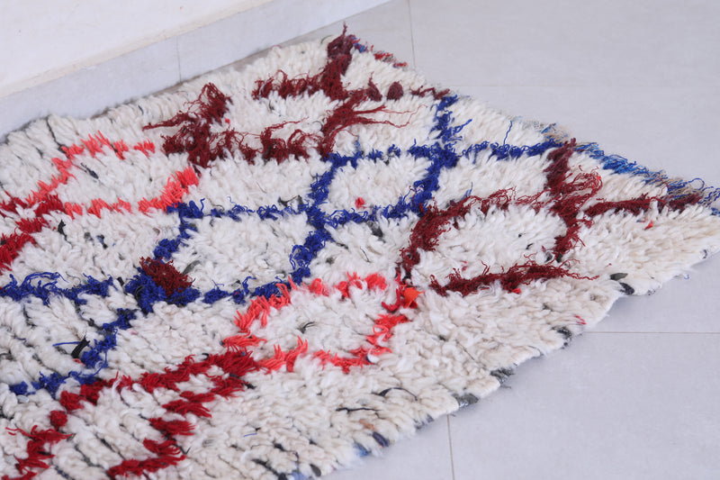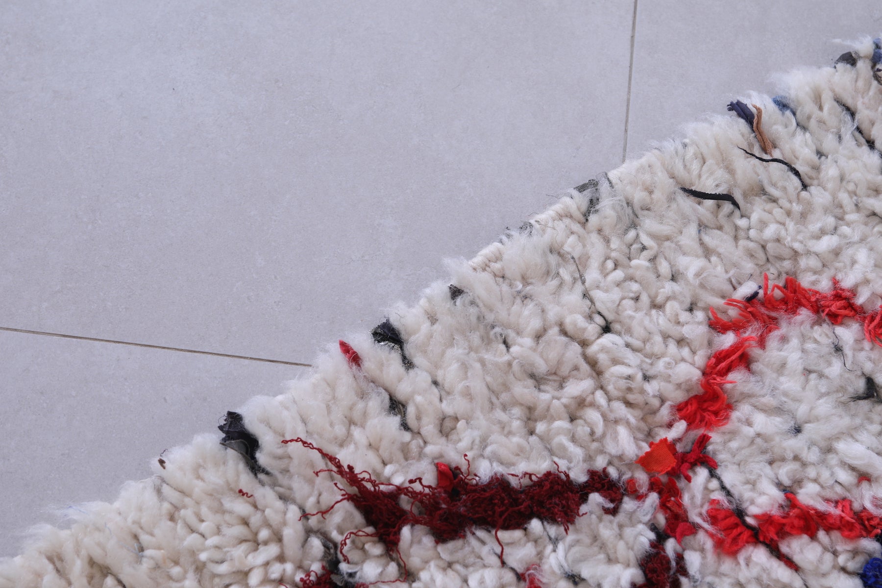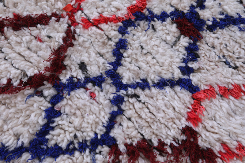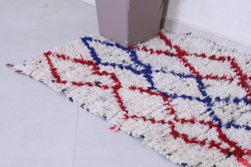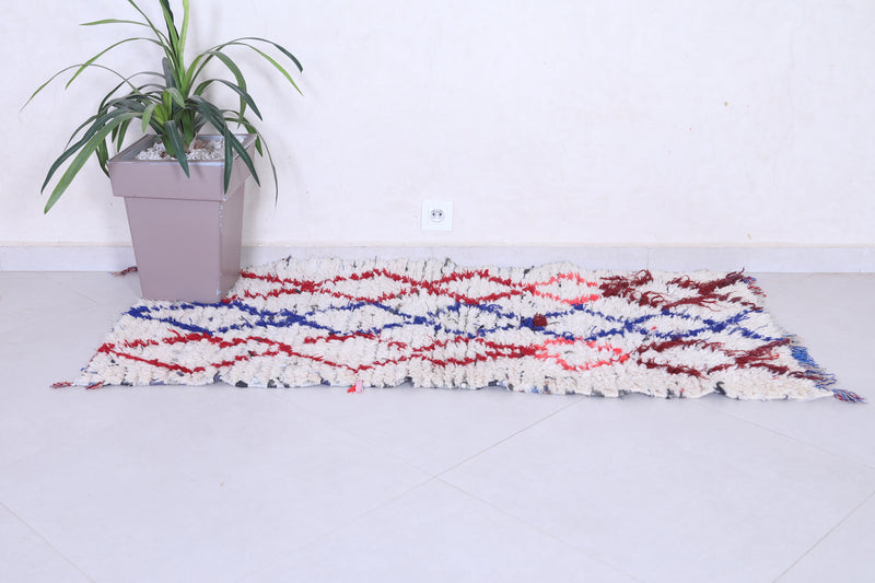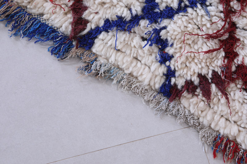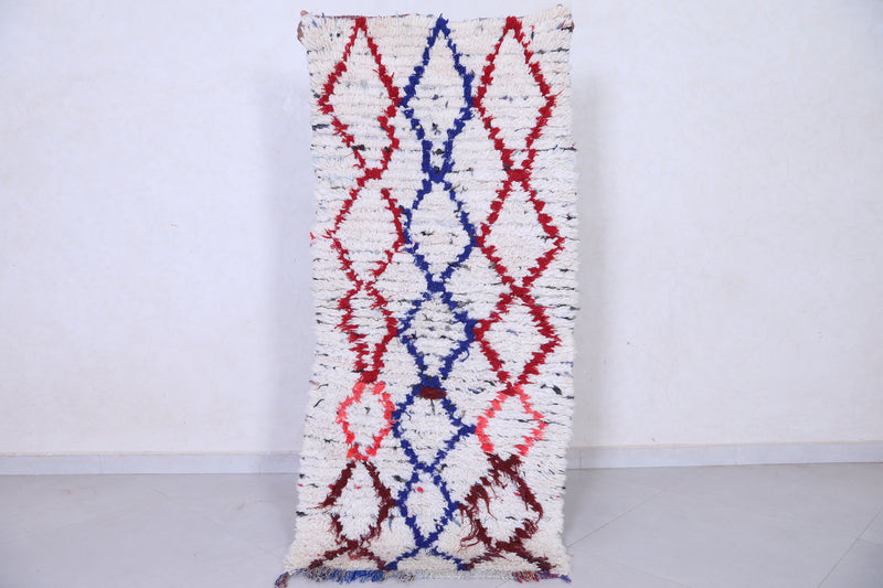Add bold charm to your home with this Vintage Moroccan Rug featuring a striking red and blue diamond pattern. At 2.4 ft x 5.1 ft, it’s a perfect accent for hallways, bedrooms, or cozy corners.