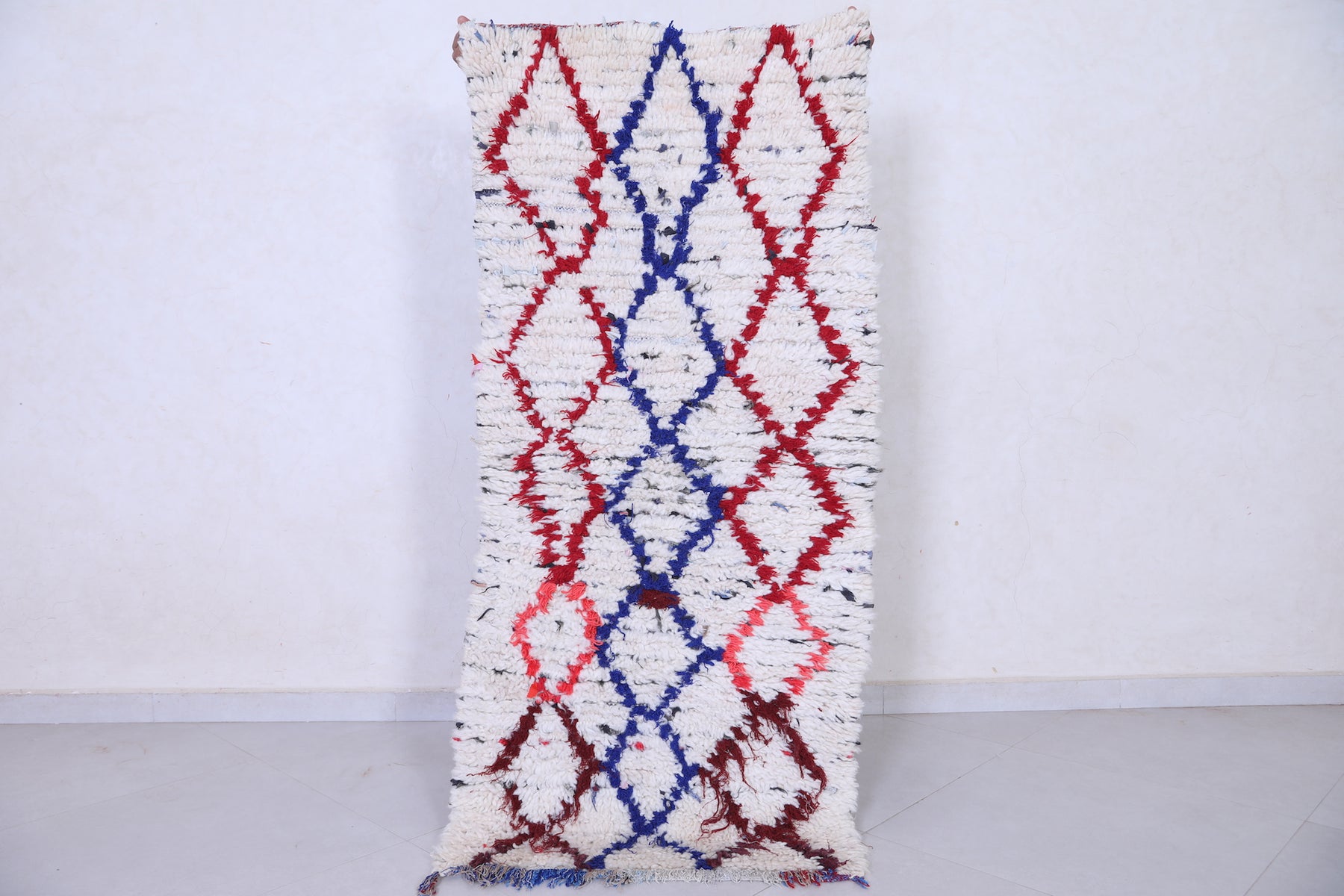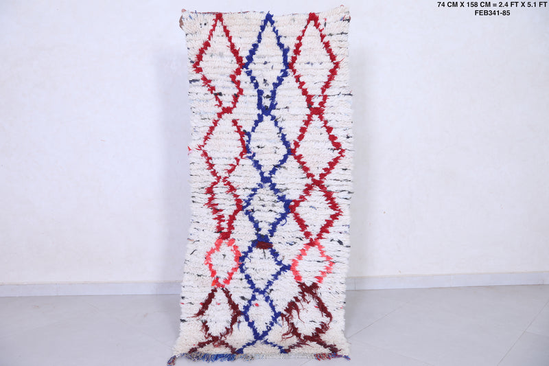 Vintage Moroccan Rug – Red & Blue Diamond Pattern 2.4 x 5.1 FT