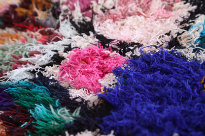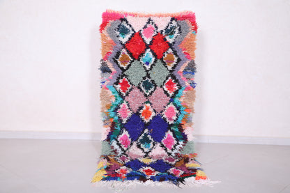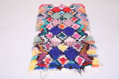 Infuse your home with color and culture using this Vintage Moroccan Runner Rug, measuring 2.3 x 5.4 feet. Expertly handcrafted from wool, this eye-catching piece features a stunning array of diamond-shaped patterns in bold, saturated hues—from deep navy and emerald to coral, blush, and gold. The lush shag texture adds a warm, cozy element, making it a perfect runner for hallways, entryways, or any space in need of a vibrant focal point. This rug is a true one-of-a-kind vintage treasure straight from the heart of Morocco.