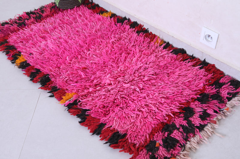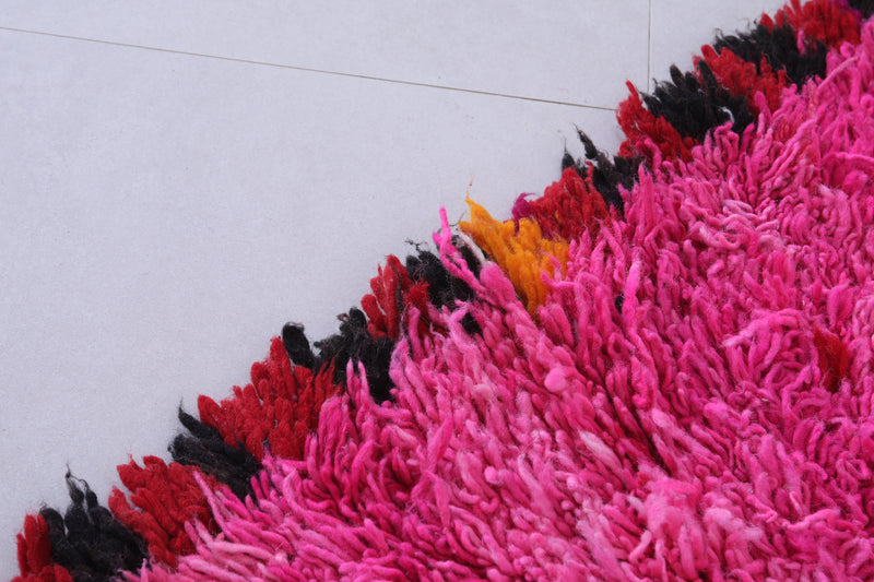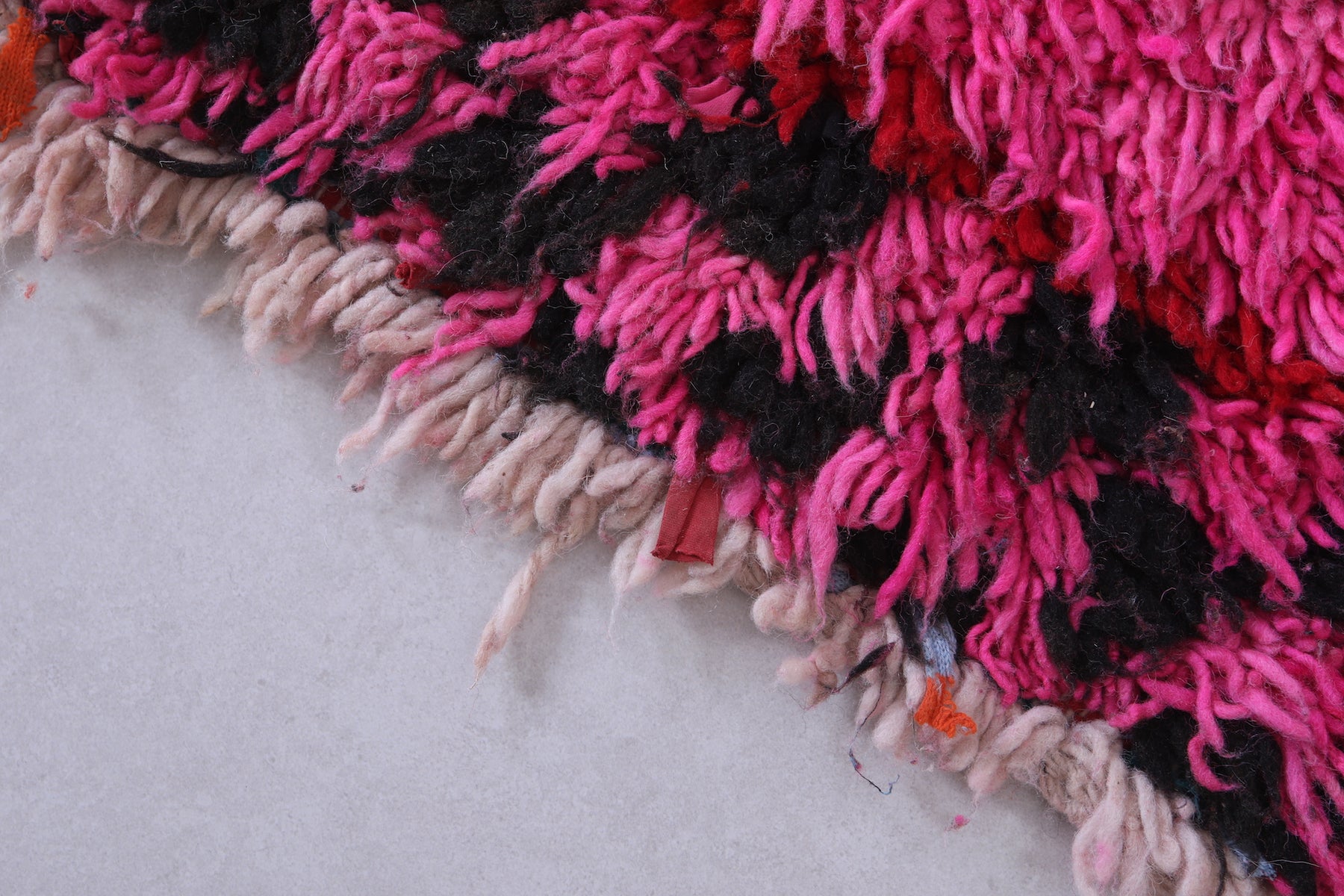 Infuse bold character and cozy texture into your space with this Vintage Moroccan Shaggy Rug (2.1 x 4.4 FT), showcasing vibrant pink hues framed by rich black and orange accents.