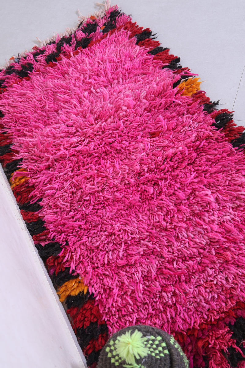 Vintage Moroccan Shaggy Rug Pink 2.1 X 4.4 Feet - Runner moroccan rugs