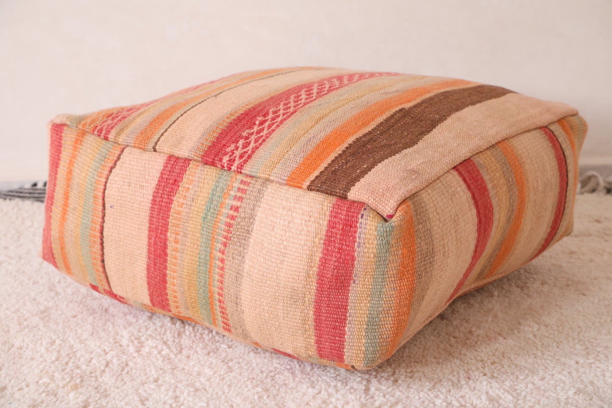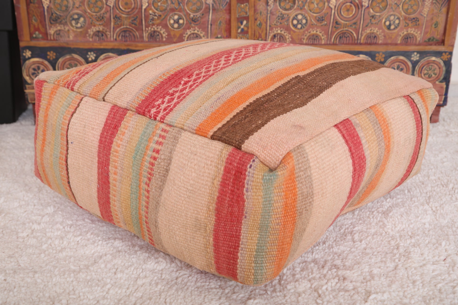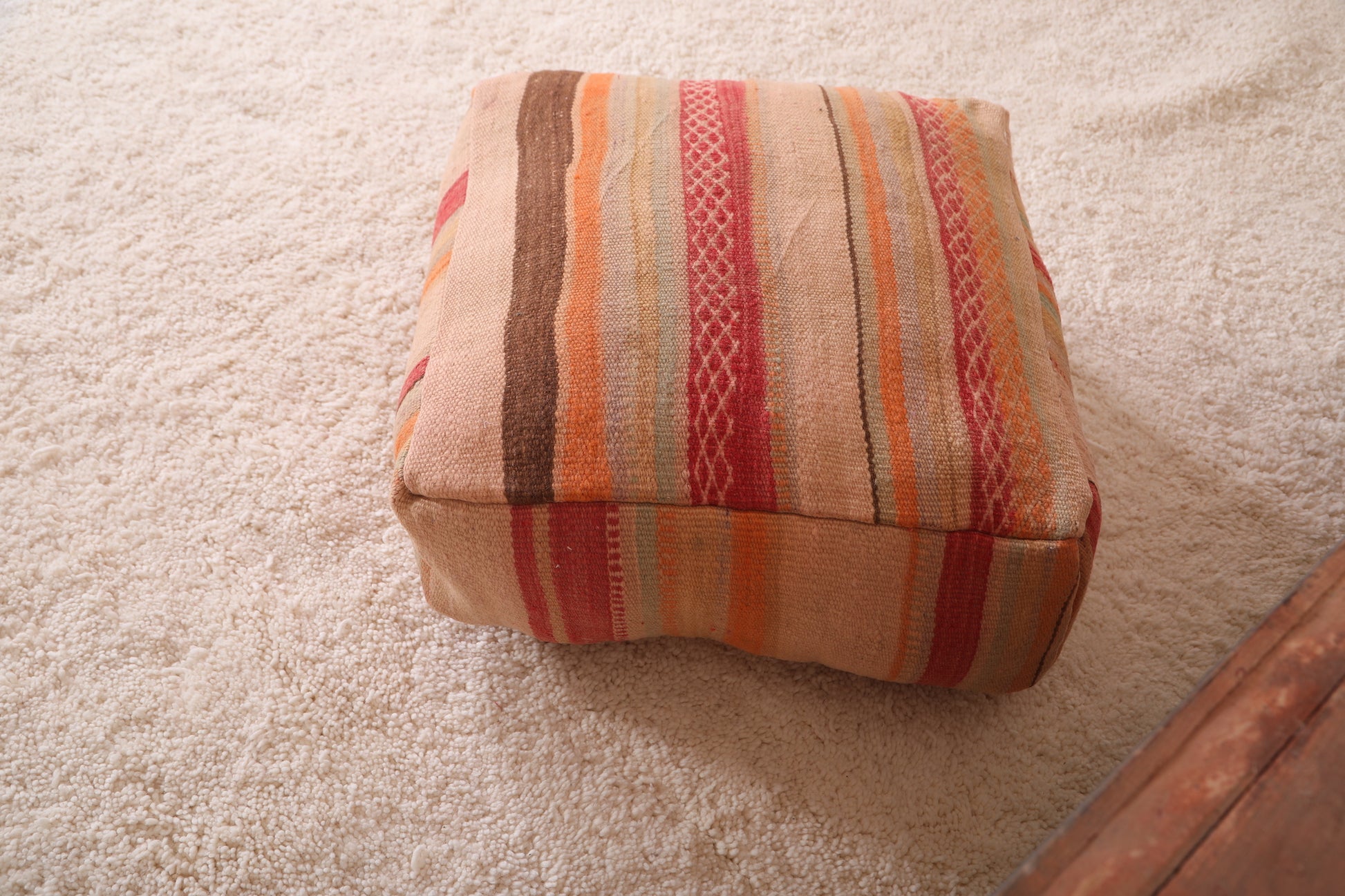 This vintage striped Ottoman pouf is made by a Very Old Moroccan rug.