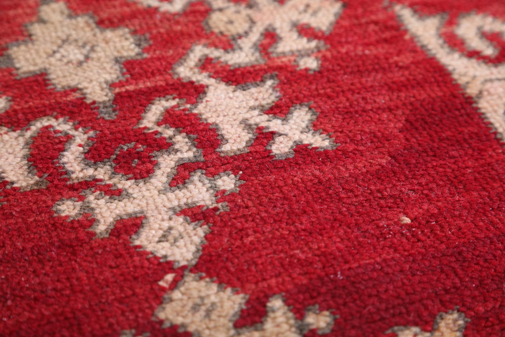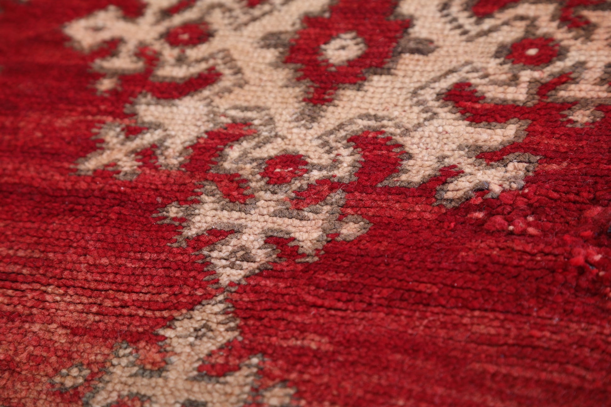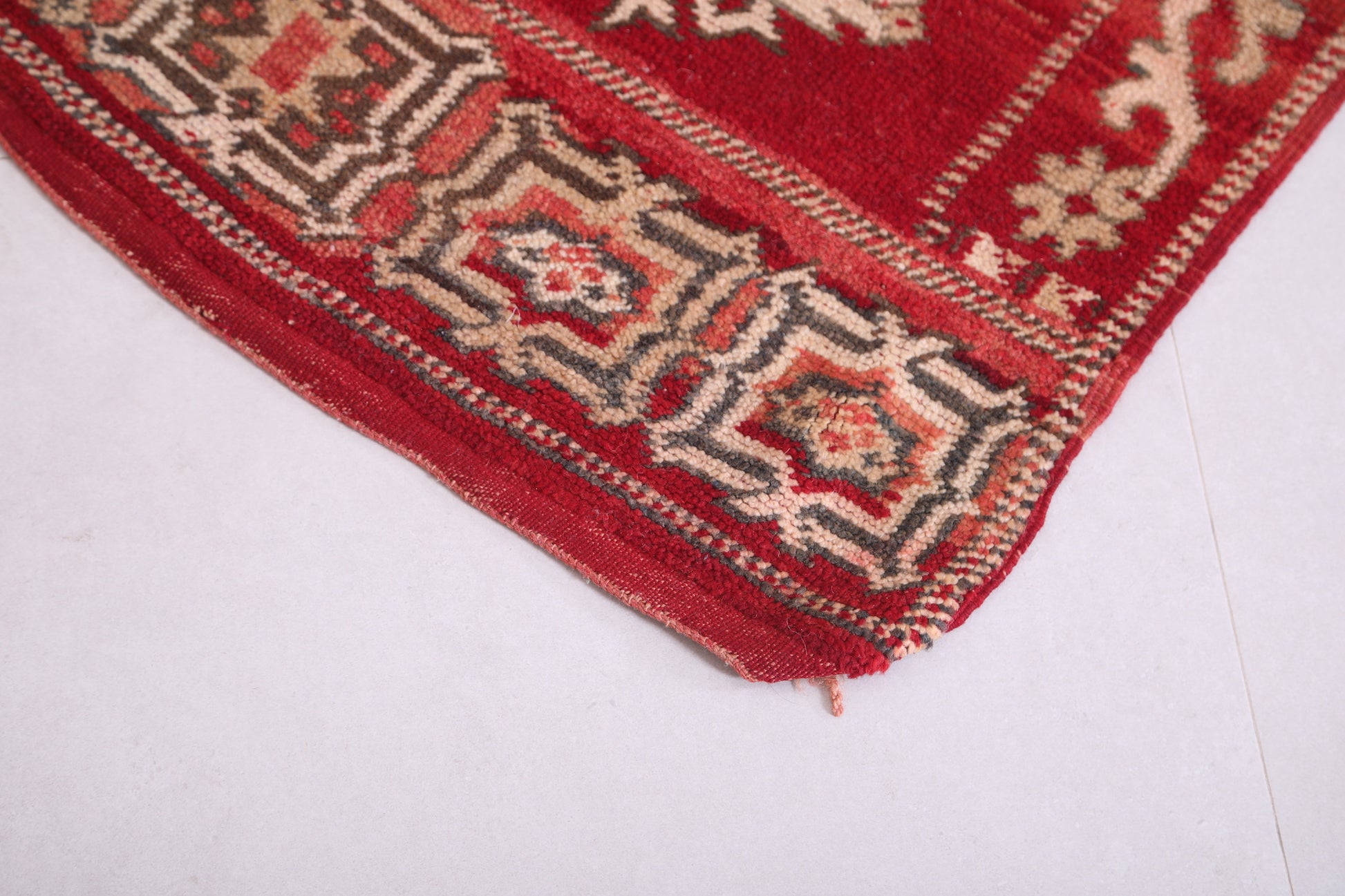 • Traditional Moroccan tribal motifs in warm burgundy and beige hues.