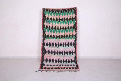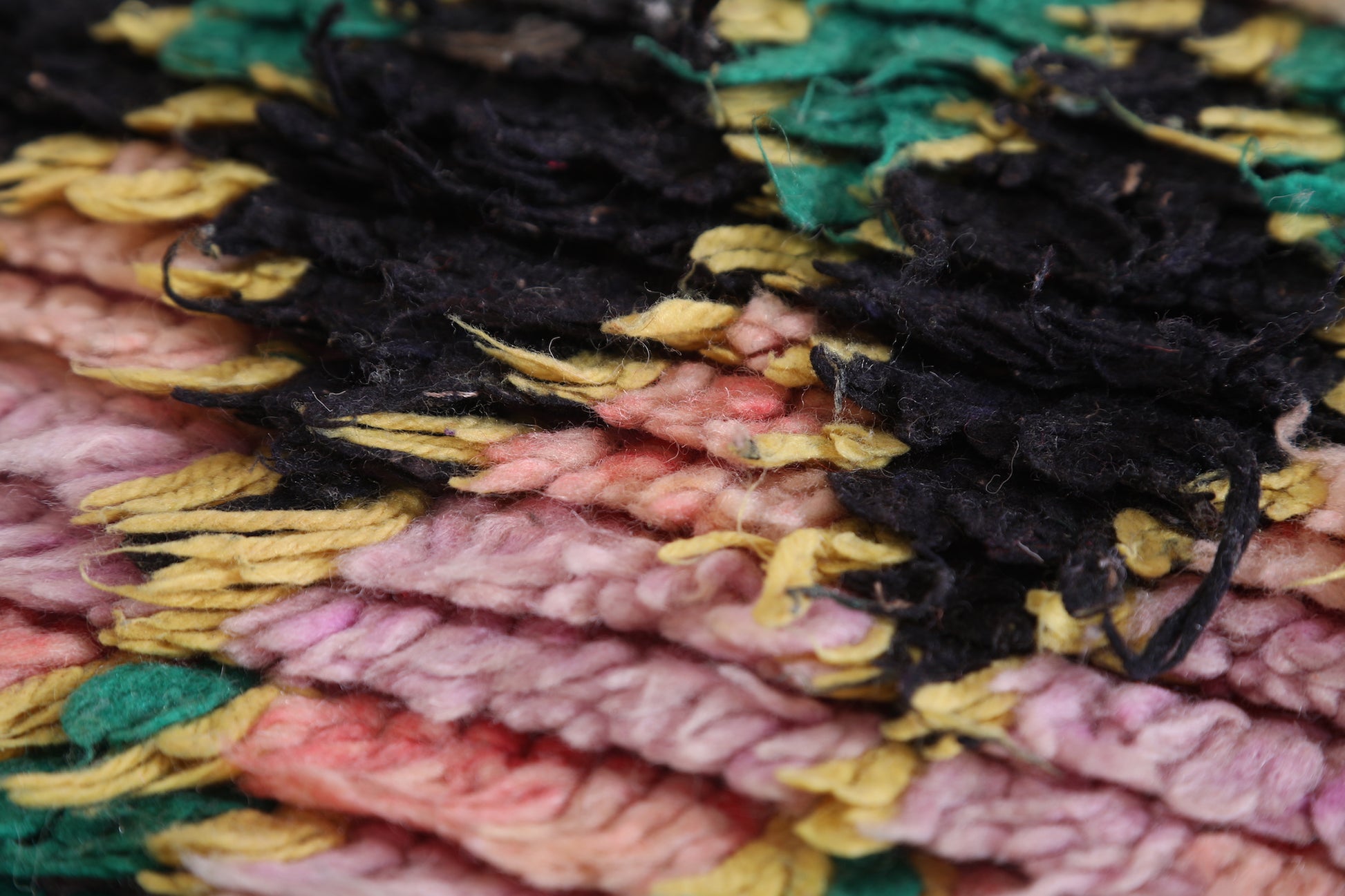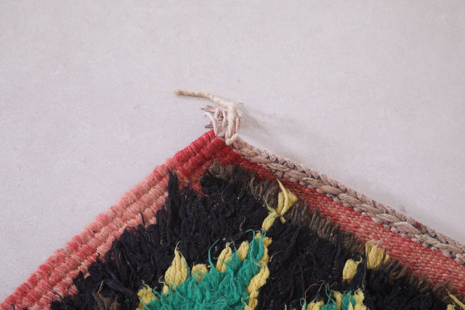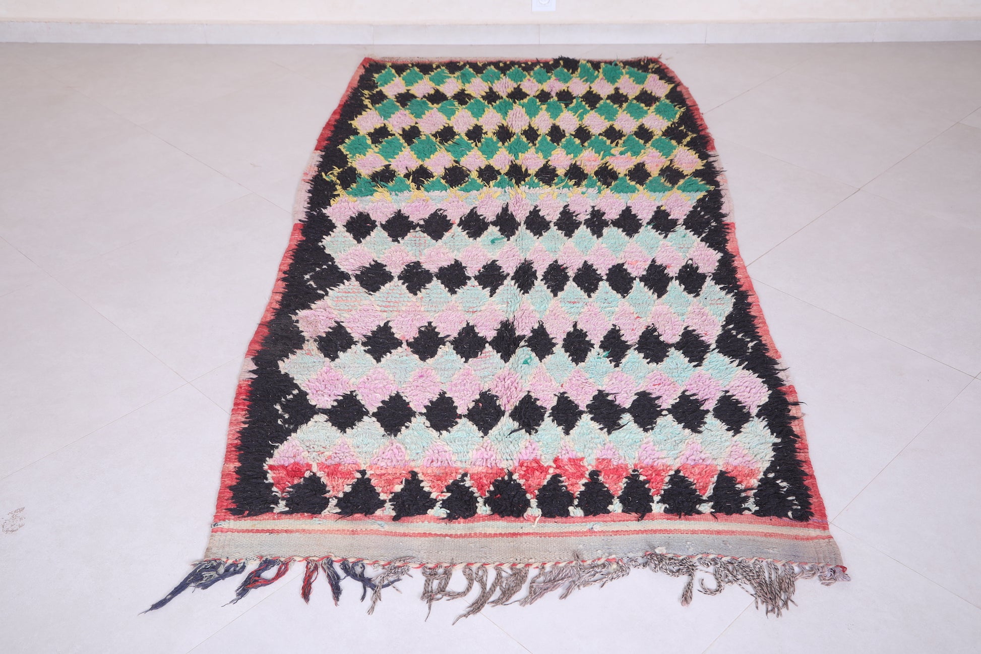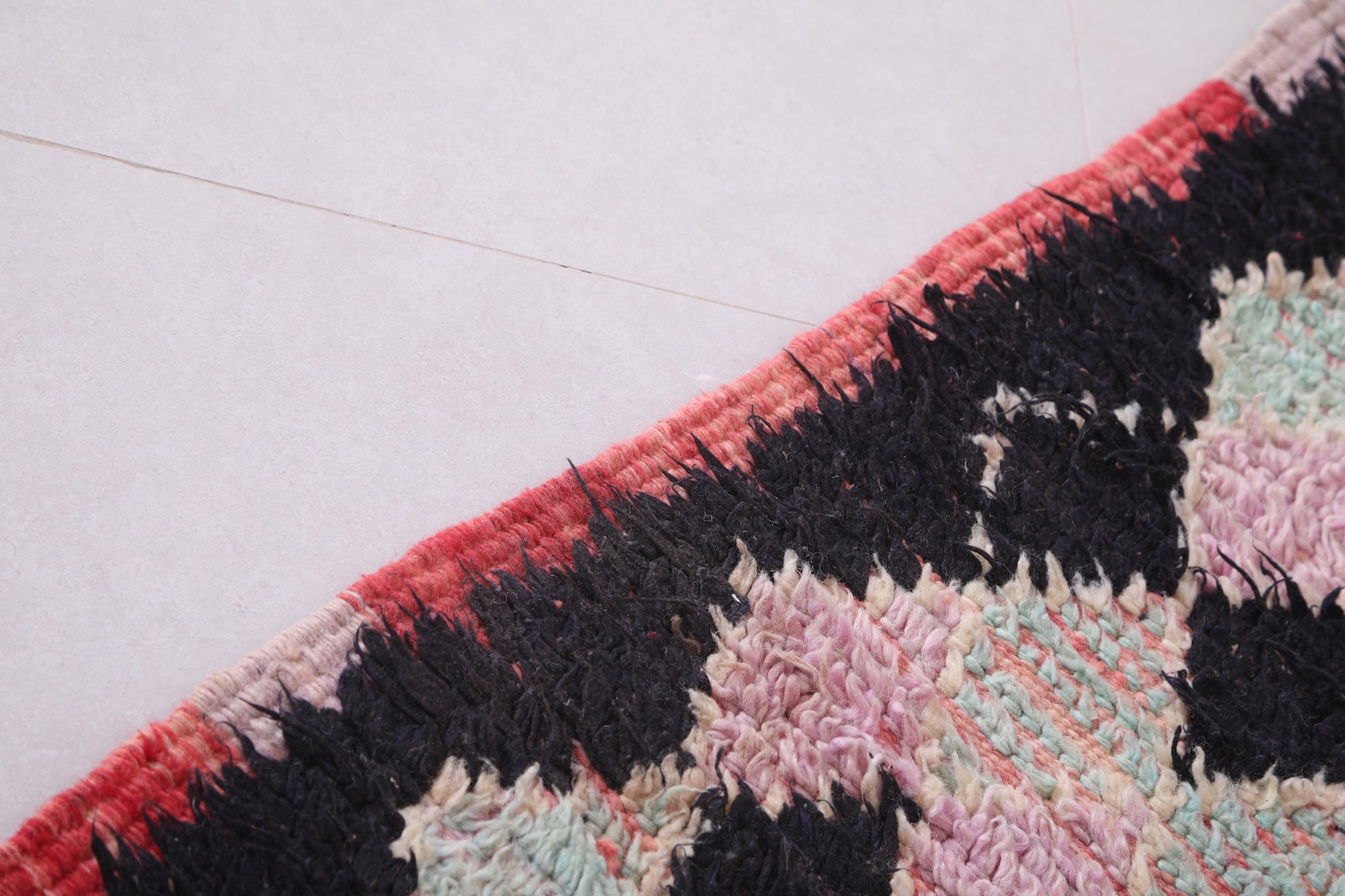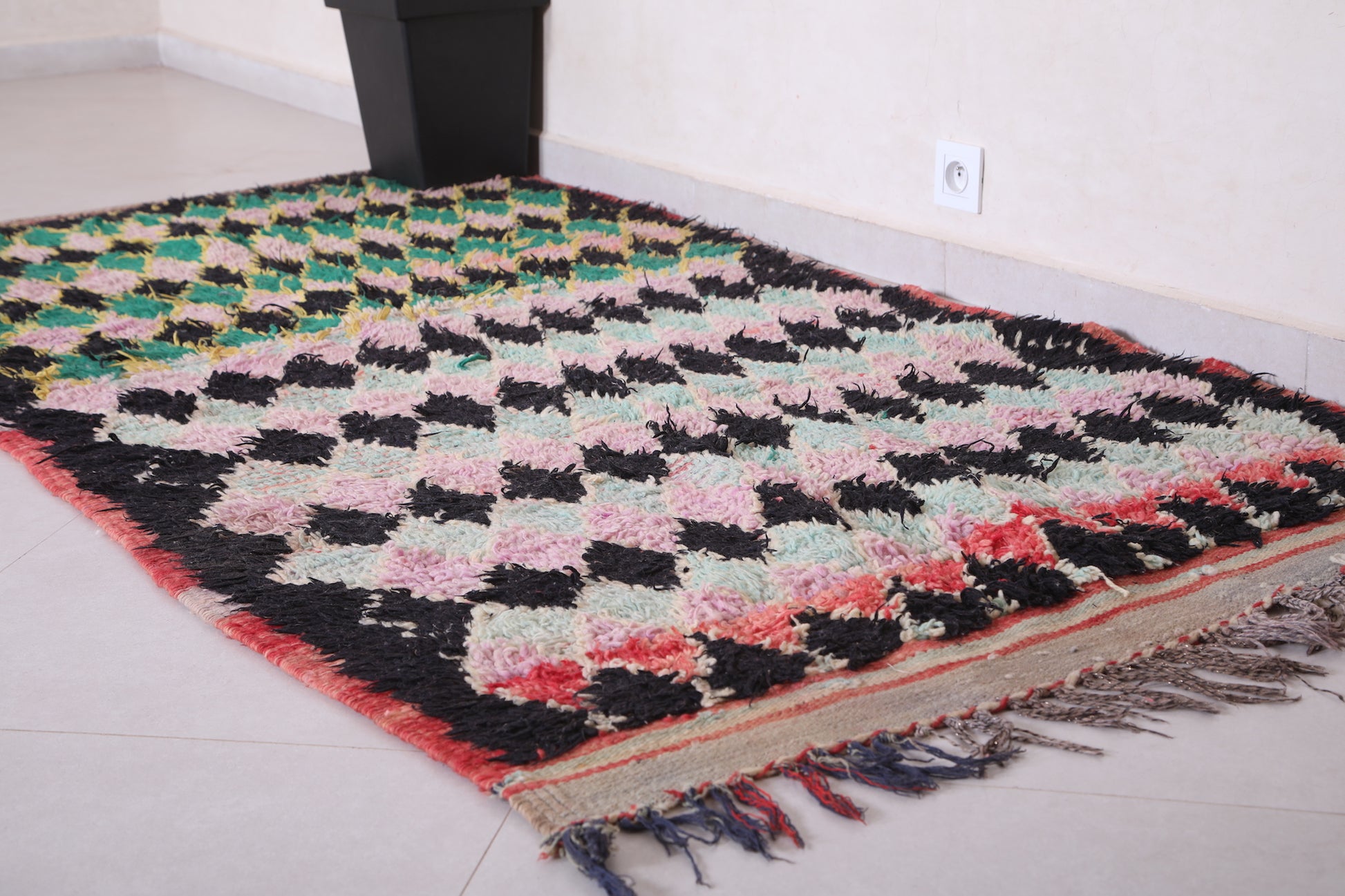 Infuse your space with vibrant charm using this Vintage Runner Rug, sized at 3.8 x 7.6 feet. Featuring a bold harlequin pattern in shades of green, pink, black, and yellow, this handwoven Moroccan piece is perfect for hallways, entryways, or narrow spaces in need of a colorful and artistic touch. Its intricate design and durable craftsmanship ensure it remains a standout piece for years to come.