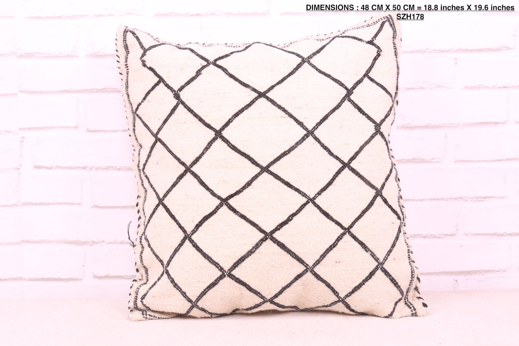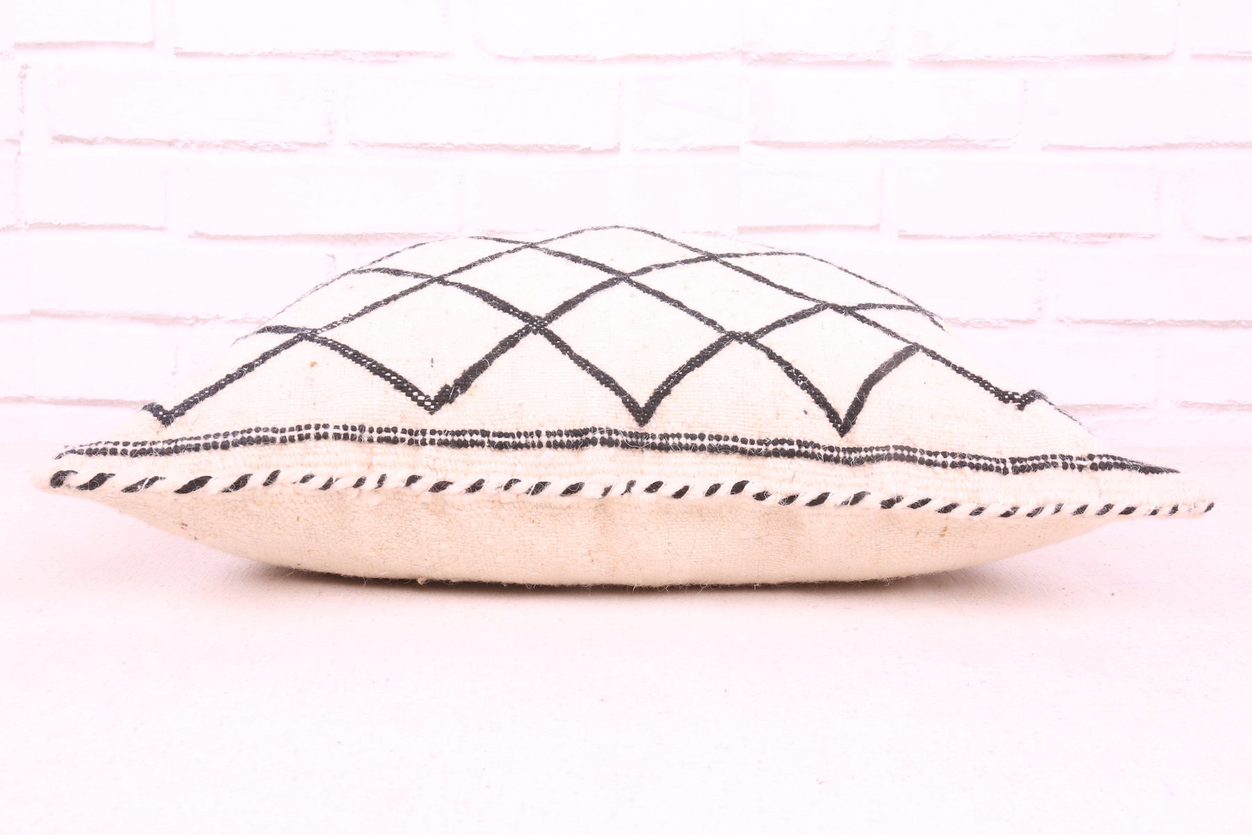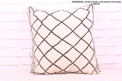 This White Beni Ourain Pillow is a perfect addition for any home. It is handcrafted with Moroccan wool, giving it a luxuriously soft and fluffy texture. At 18.8 inches X 19.6 inches, the dimensions are perfect for any room. Experience ultimate comfort for your home with this classic pillow.