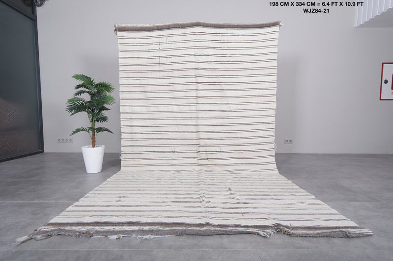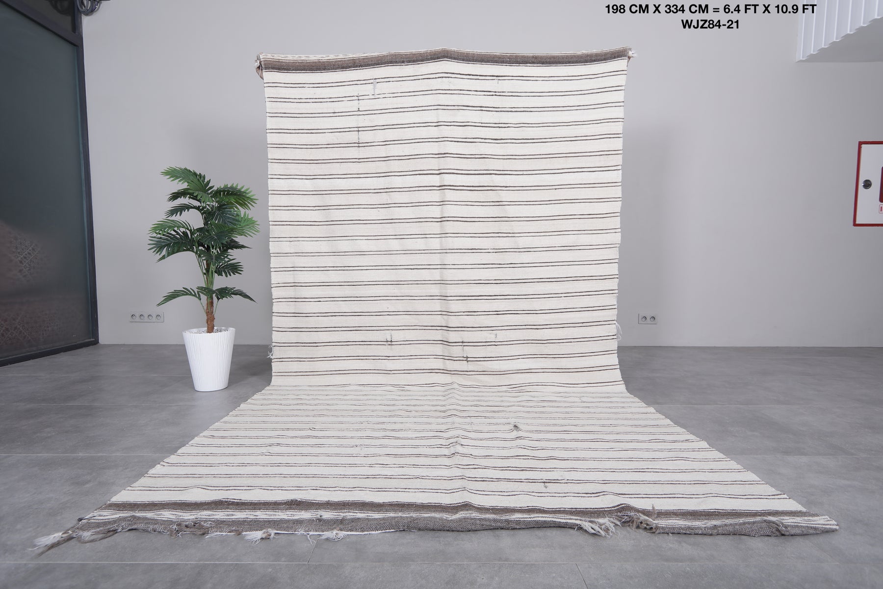 White Berber Runner Kilim Rug 6.4 FT X 10.9 FT